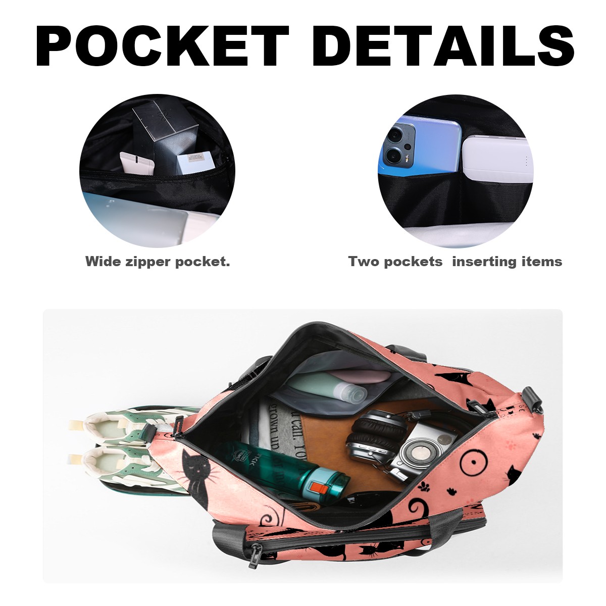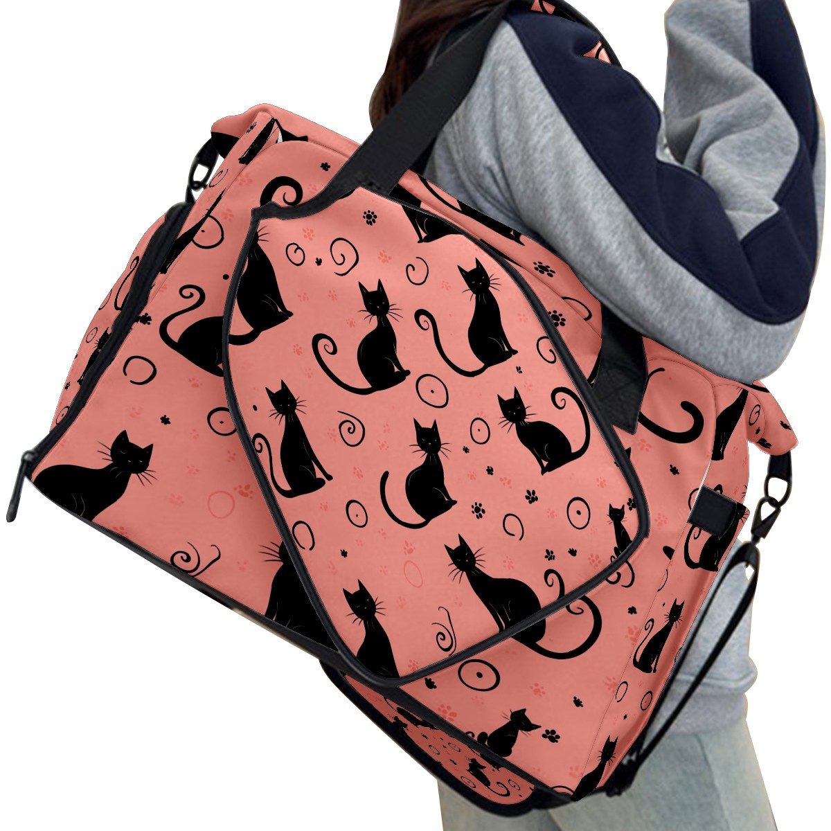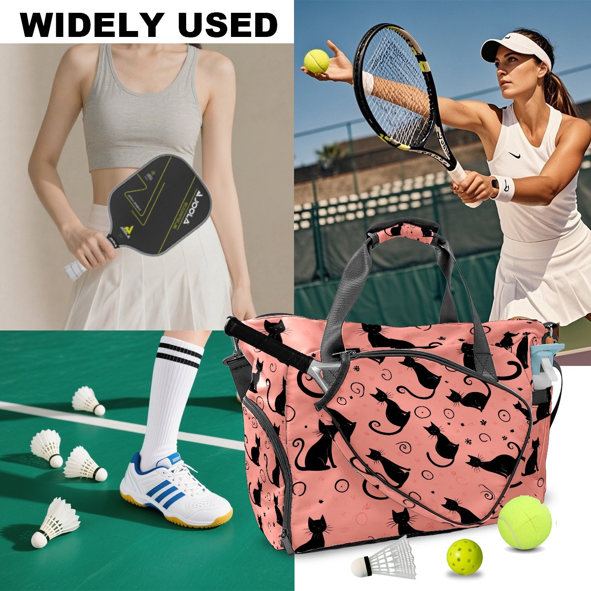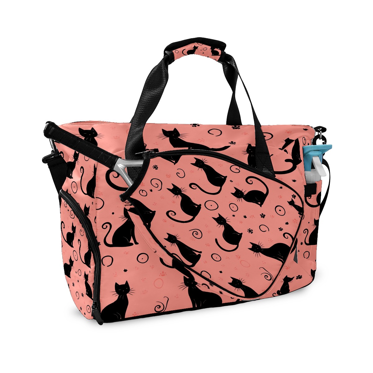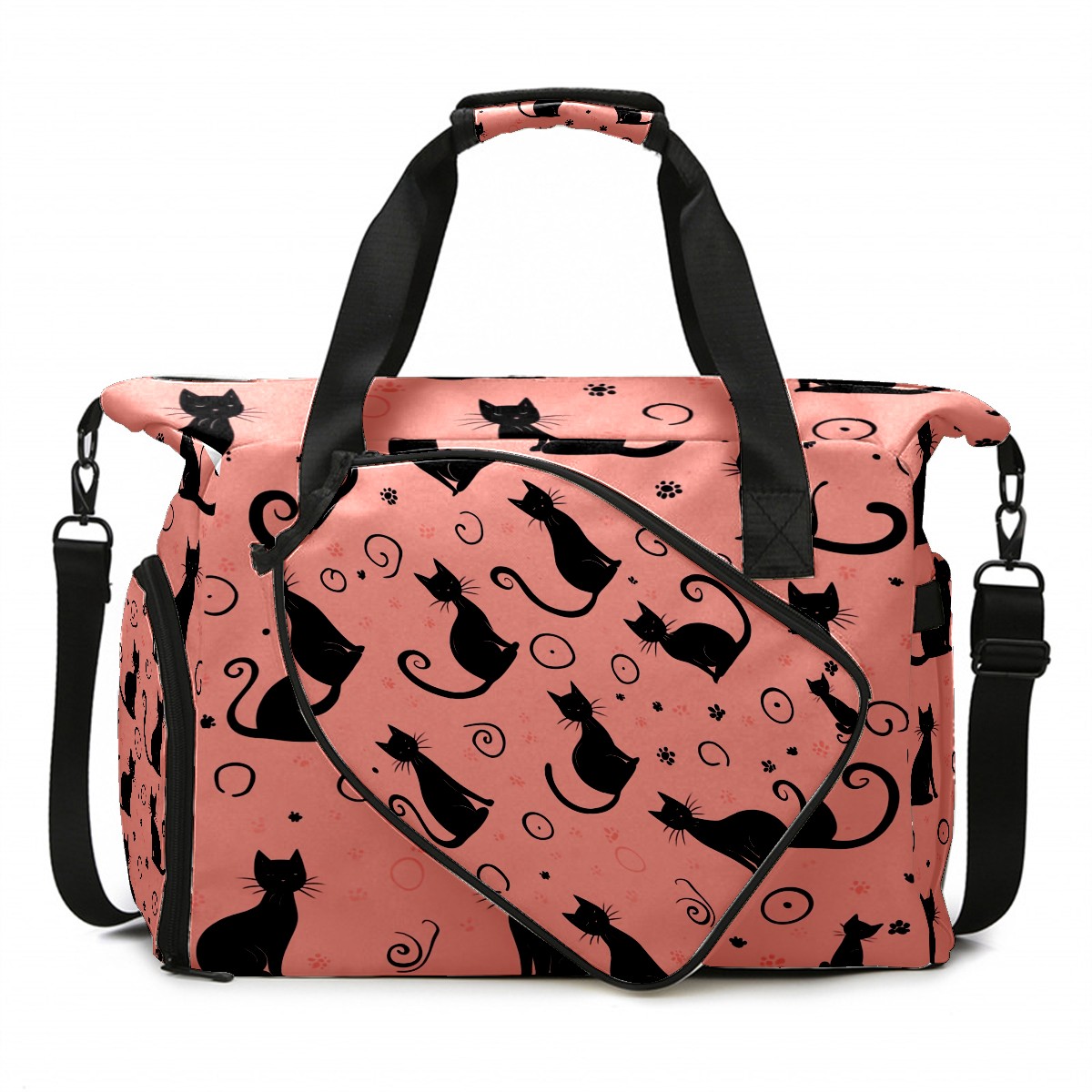 Pickleball Bag for Men Women with Exterior Paddle Pocket and Separate Shoe Compartment, Handbag, Shoulder Bag - Ideal Pickleball Gift Back Of Black Cat 1
