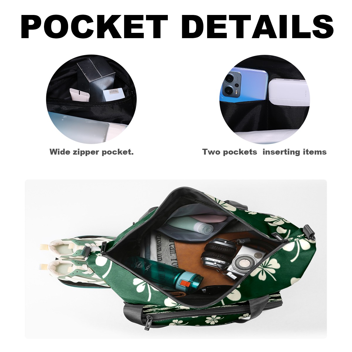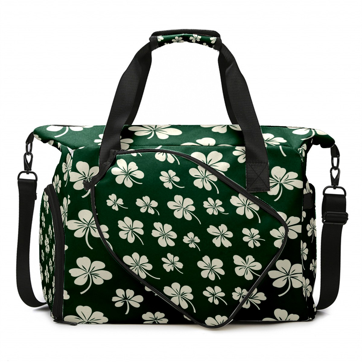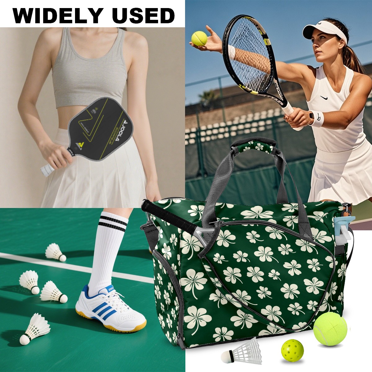 Pickleball Bag for Men Women with Exterior Paddle Pocket and Separate Shoe Compartment, Handbag, Shoulder Bag - Ideal Pickleball Gift Four-leaf Clover