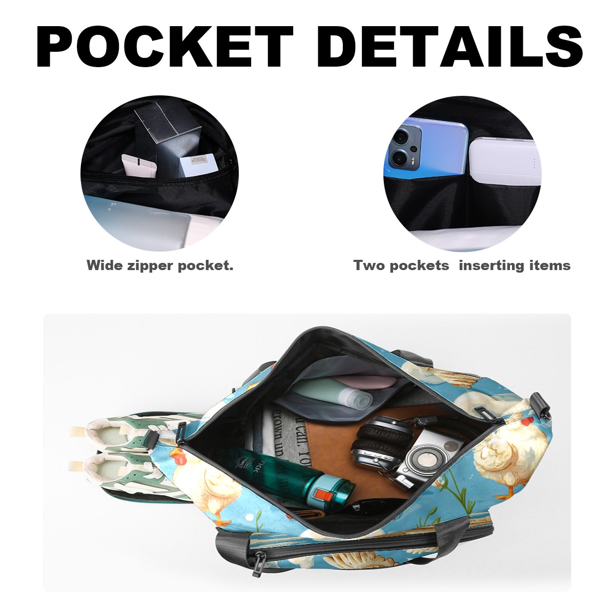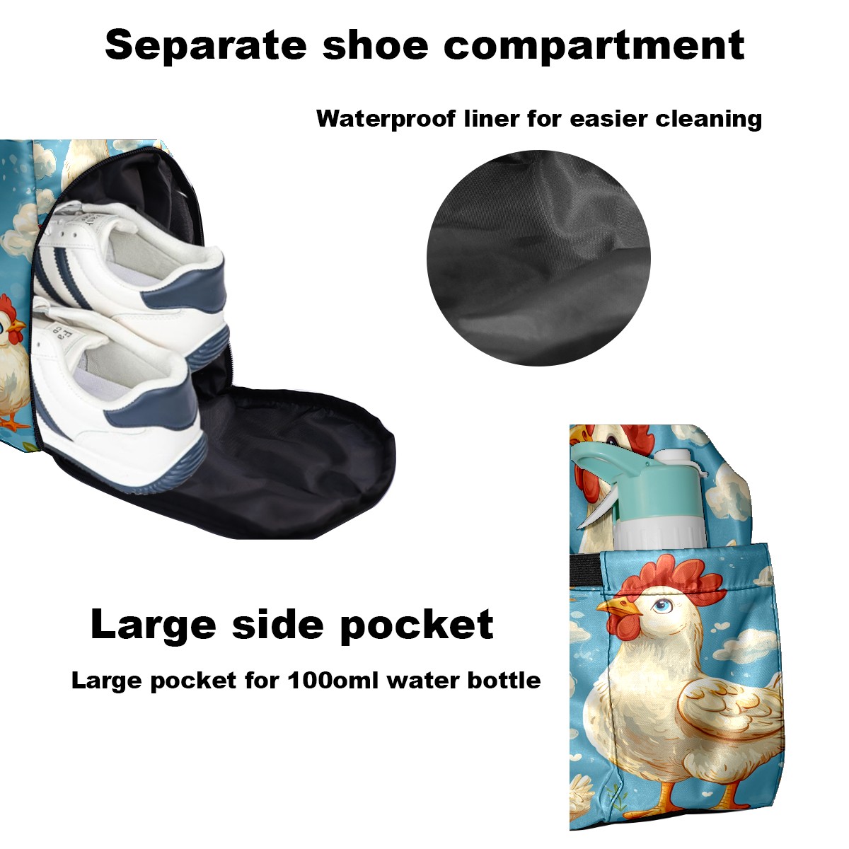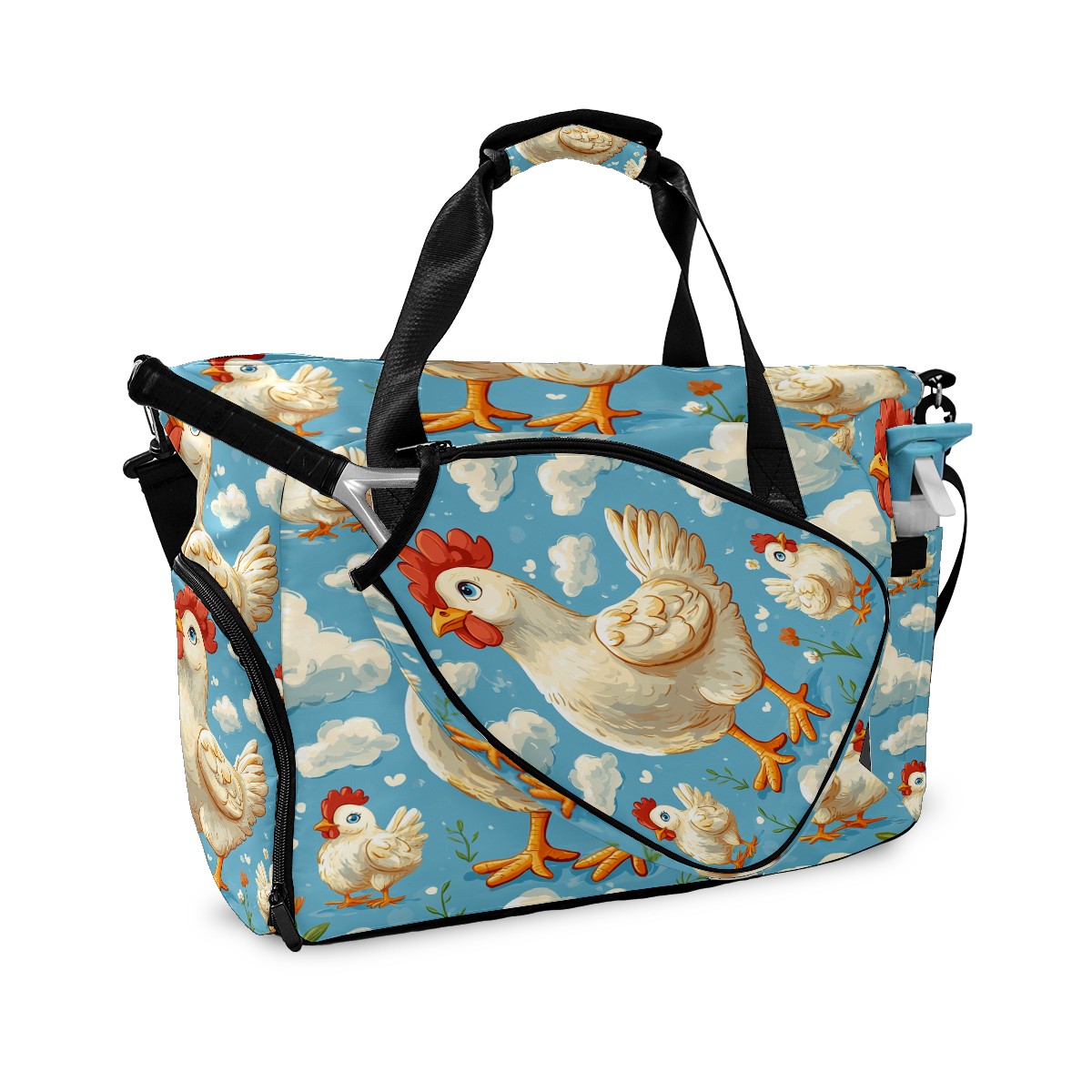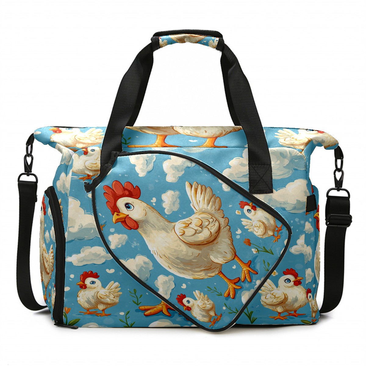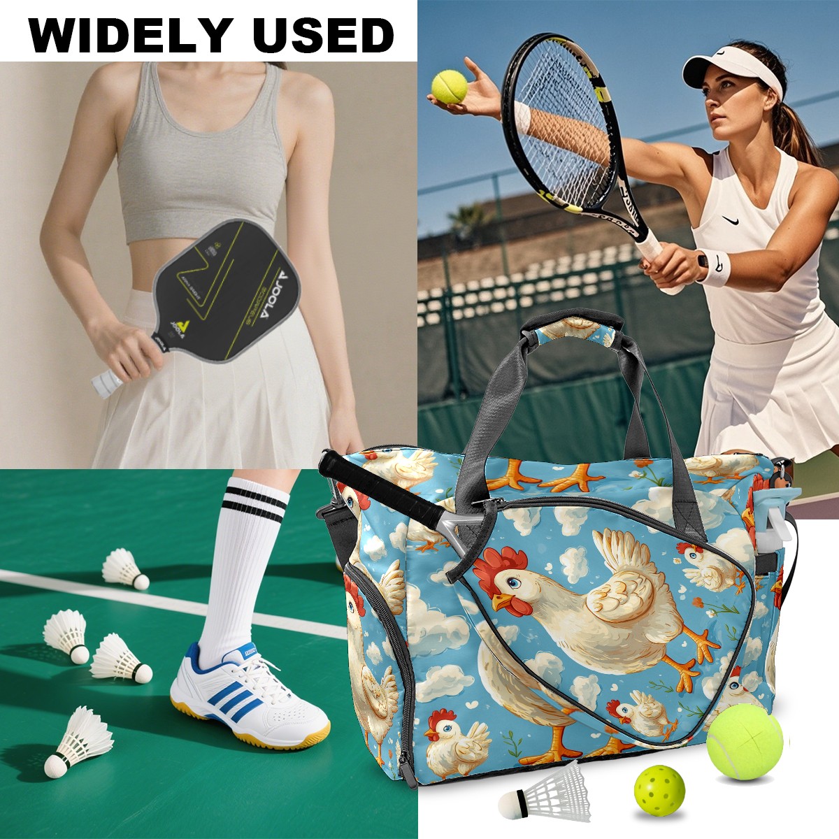 Pickleball Bag for Men Women with Exterior Paddle Pocket and Separate Shoe Compartment, Handbag, Shoulder Bag - Ideal Pickleball Gift Big Chickens Small Chickens