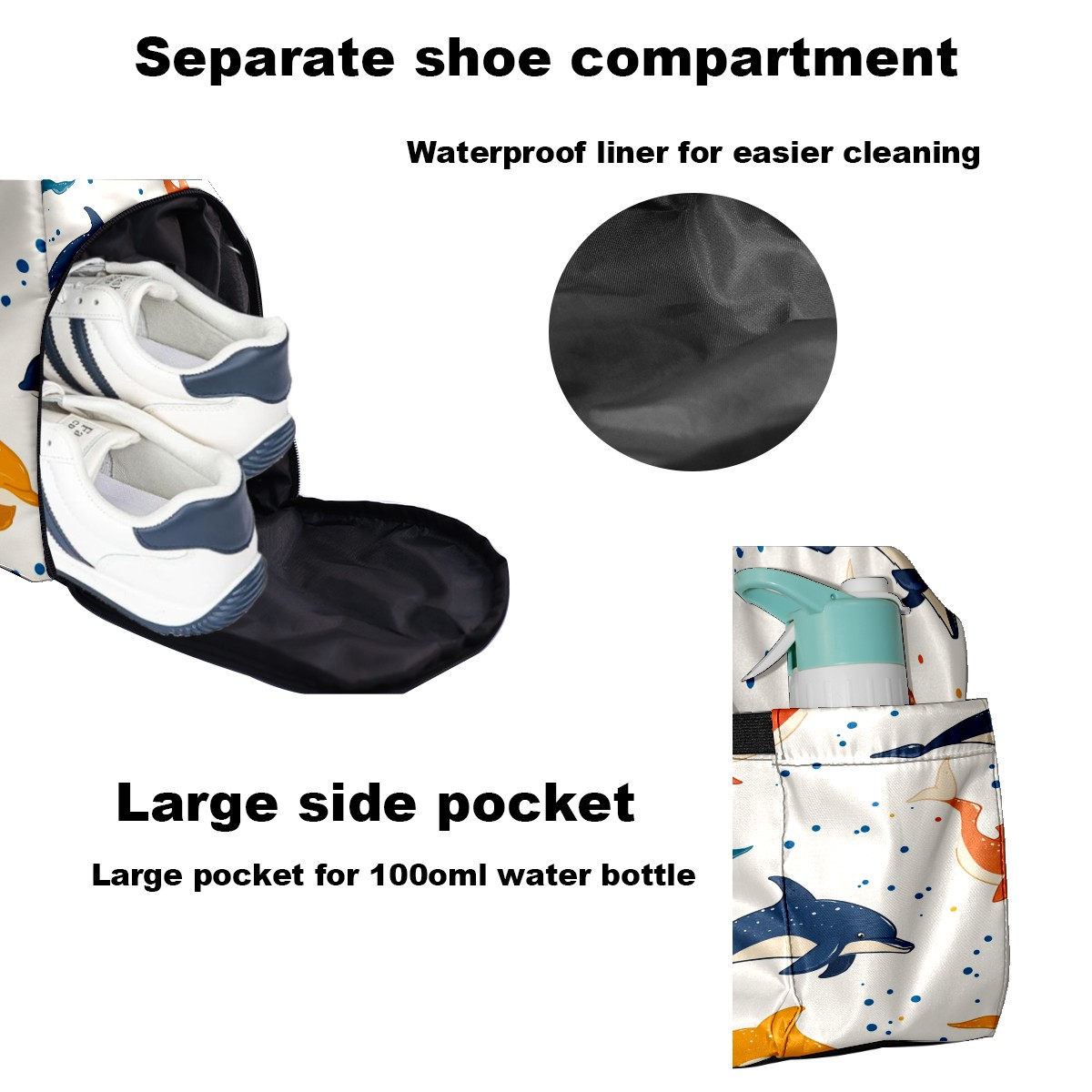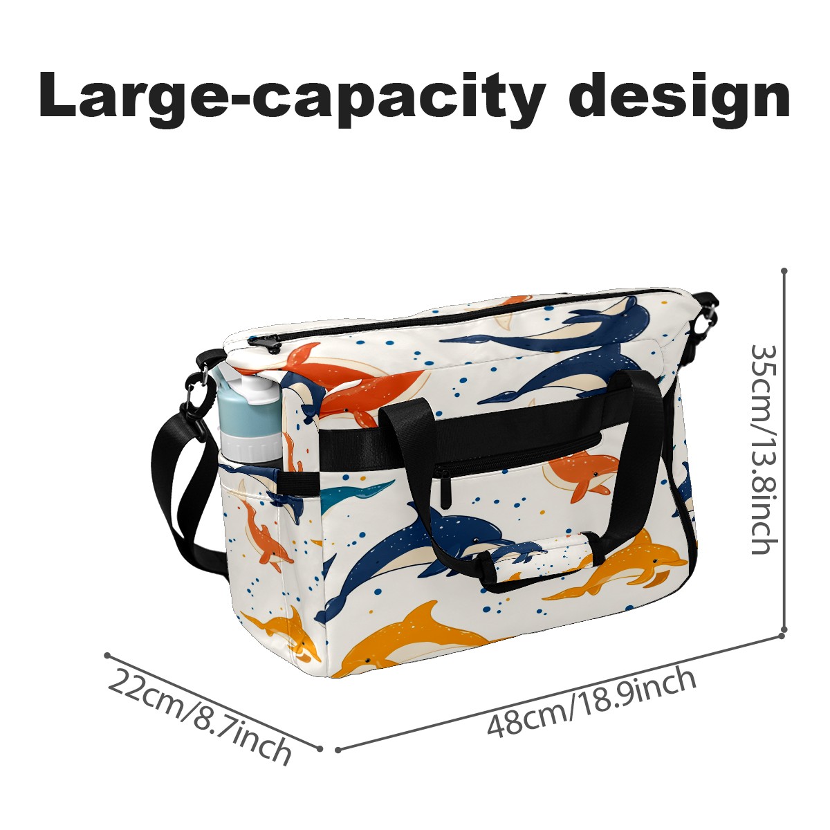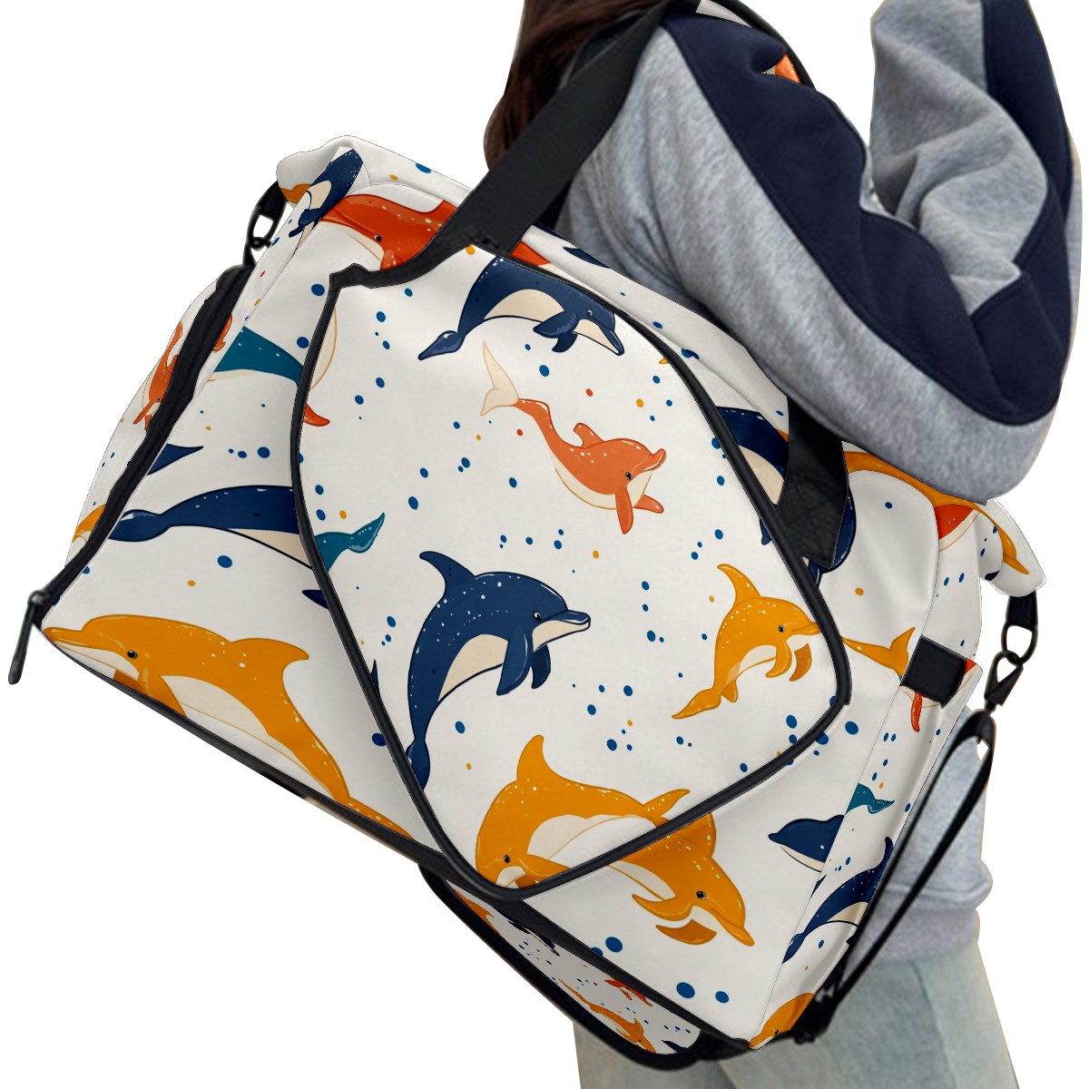 Pickleball Bag for Men Women with Exterior Paddle Pocket and Separate Shoe Compartment, Handbag, Shoulder Bag - Ideal Pickleball Gift Dolphin Polka Dots