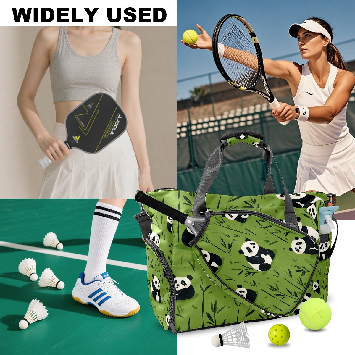 Pickleball Bag for Men Women with Exterior Paddle Pocket and Separate Shoe Compartment, Handbag, Shoulder Bag - Ideal Pickleball Gift Panda Family
