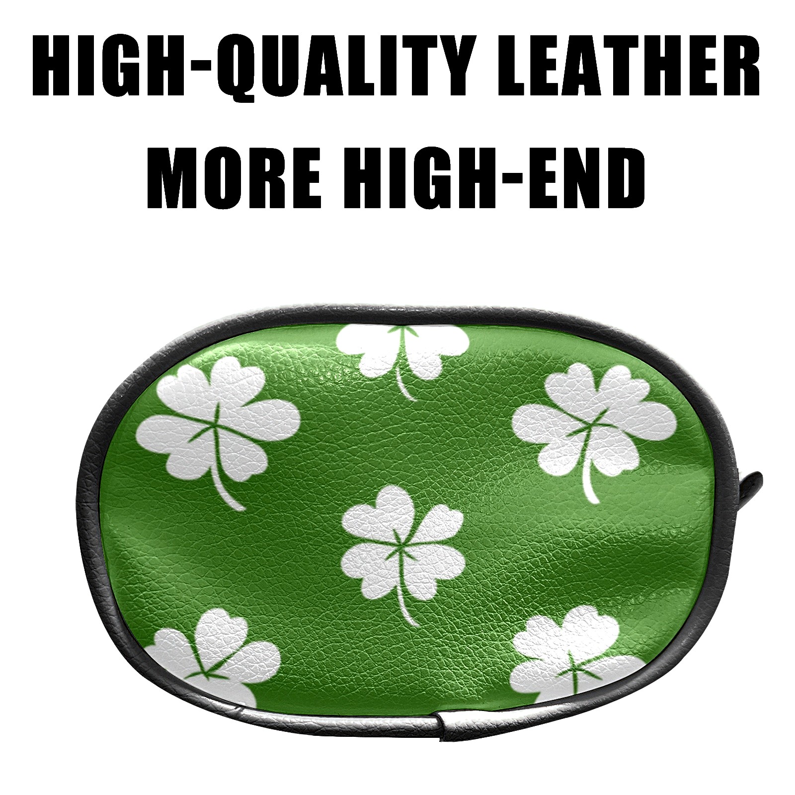 Zipper Coin Purse Lightweight Portable Keychain Wallet, Mini Zip Wristlet Wallets with White Clover Design,PU Leather Purse for Travel Credit Card Holder