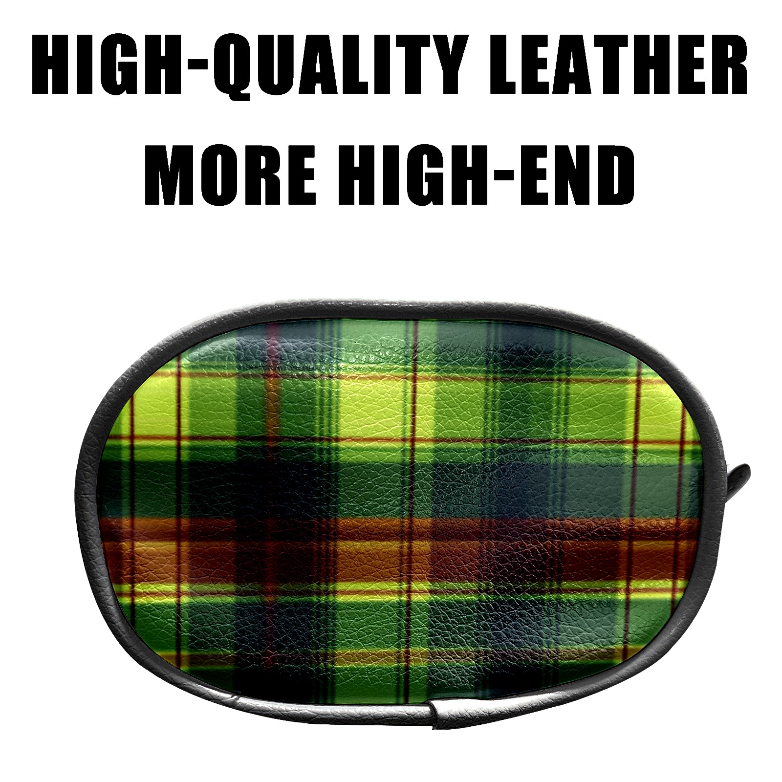Zipper Coin Purse Lightweight Portable Keychain Wallet, Mini Zip Wristlet Wallets with Dark Green Plaid Design Design,PU Leather Purse for Travel Credit Card Holder