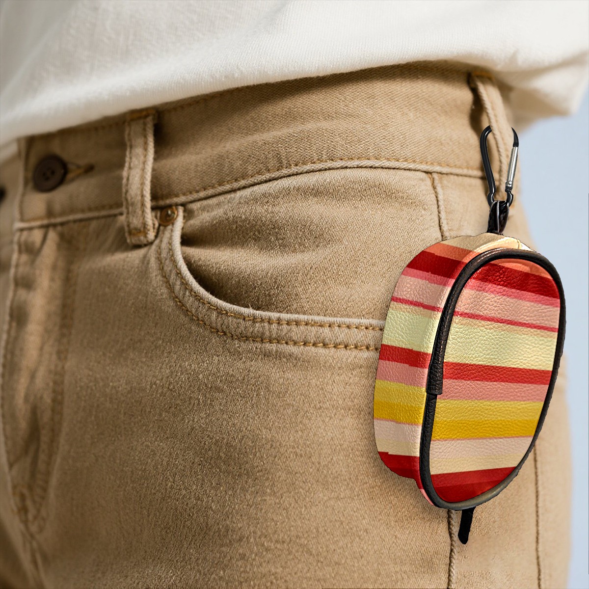 Zipper Coin Purse Lightweight Portable Keychain Wallet, Mini Zip Wristlet Wallets with Warm-Toned Vertical Stripe Pattern Design,PU Leather Purse for Travel Credit Card Holder