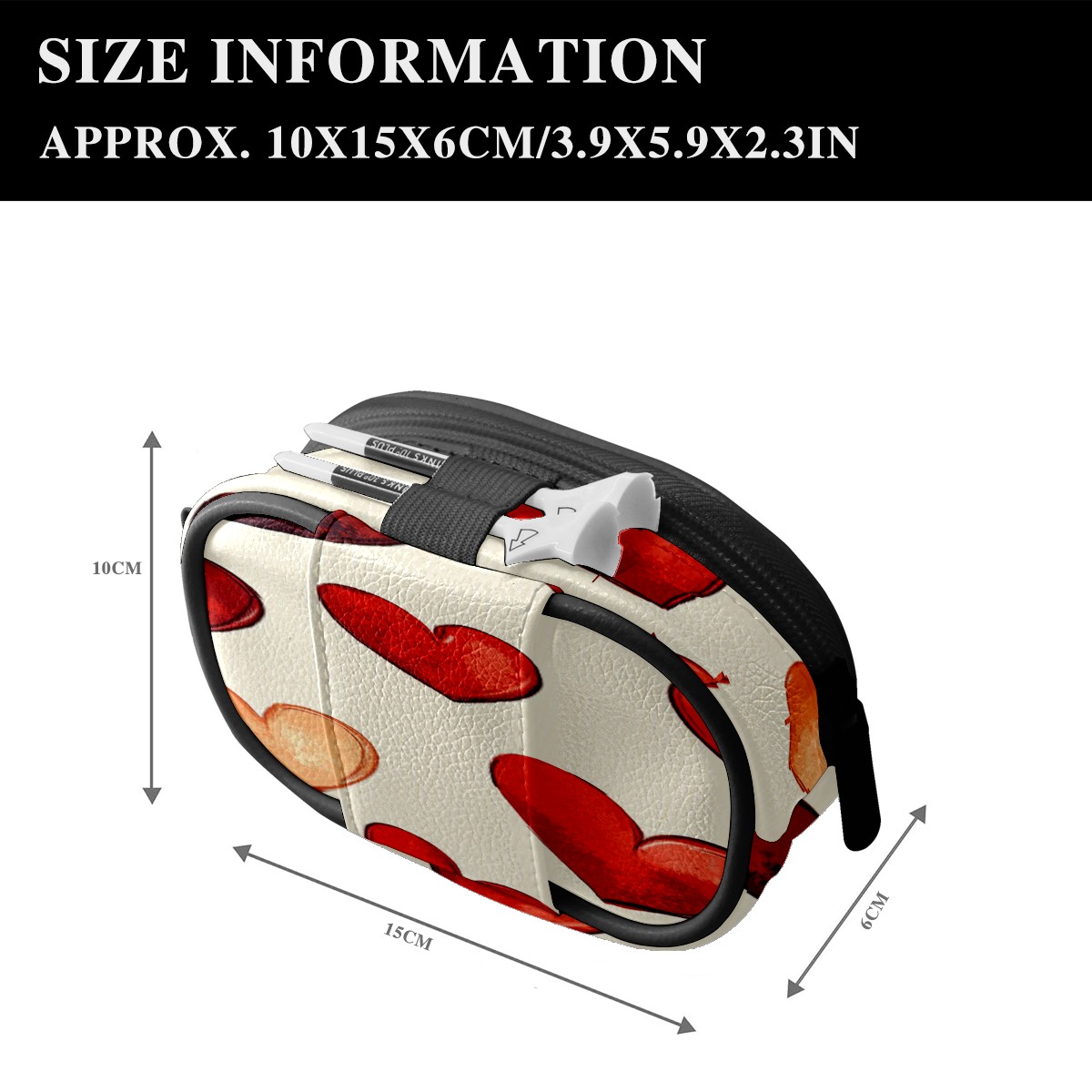 Zipper Coin Purse Lightweight Portable Keychain Wallet, Mini Zip Wristlet Wallets with Red Heart Pattern Design,PU Leather Purse for Travel Credit Card Holder
