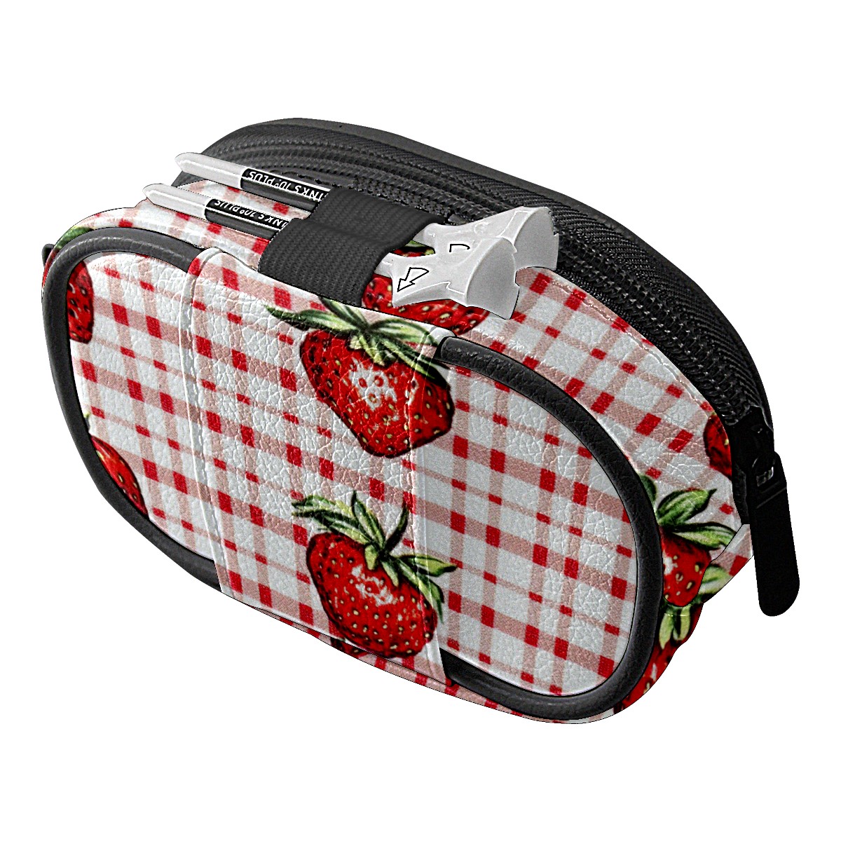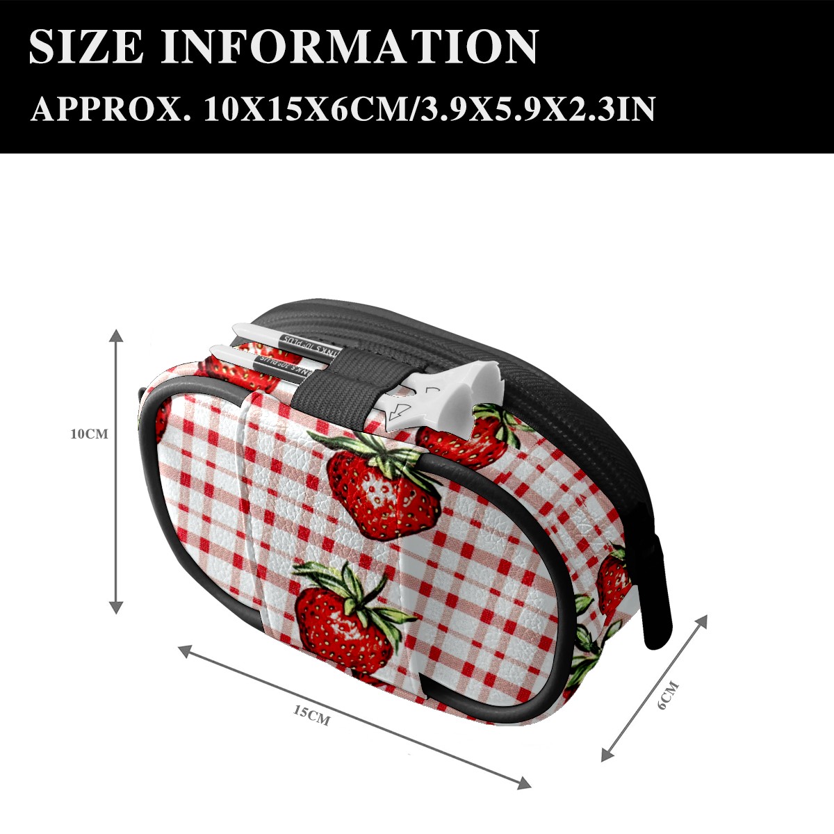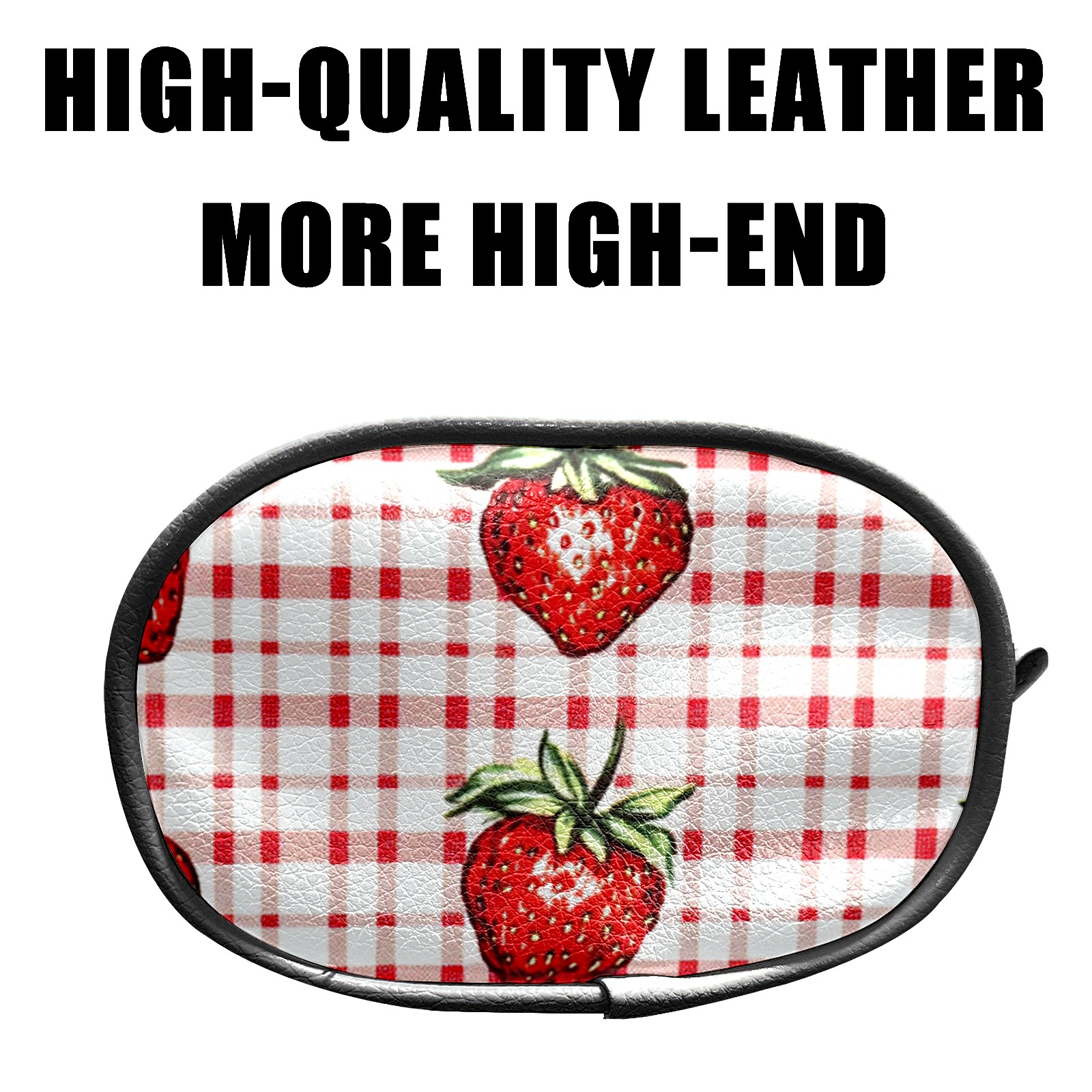 Zipper Coin Purse Lightweight Portable Keychain Wallet, Mini Zip Wristlet Wallets with Strawberry Checkered Pattern Design,PU Leather Purse for Travel Credit Card Holder