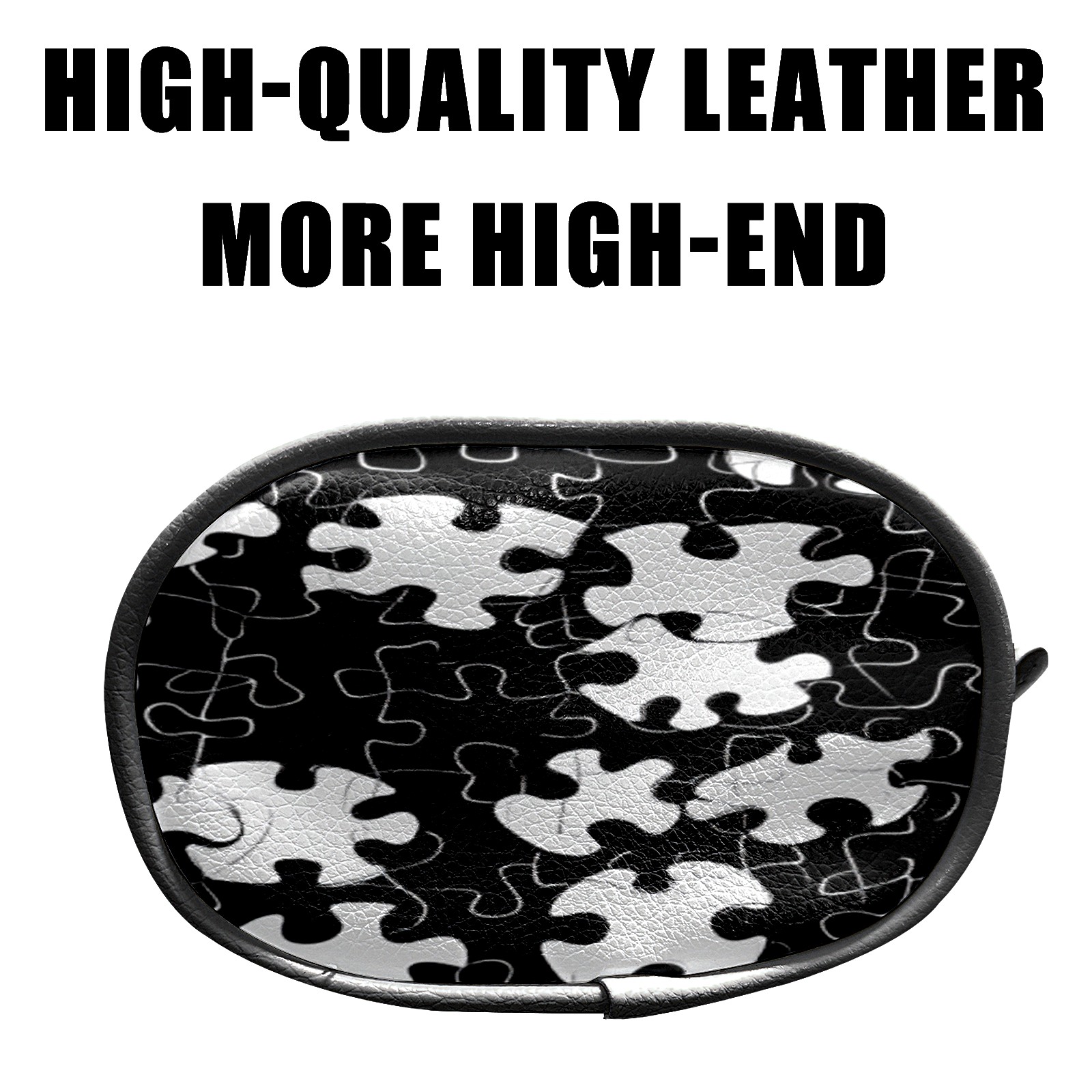 Zipper Coin Purse Lightweight Portable Keychain Wallet, Mini Zip Wristlet Wallets with Black Puzzle Pattern Design,PU Leather Purse for Travel Credit Card Holder