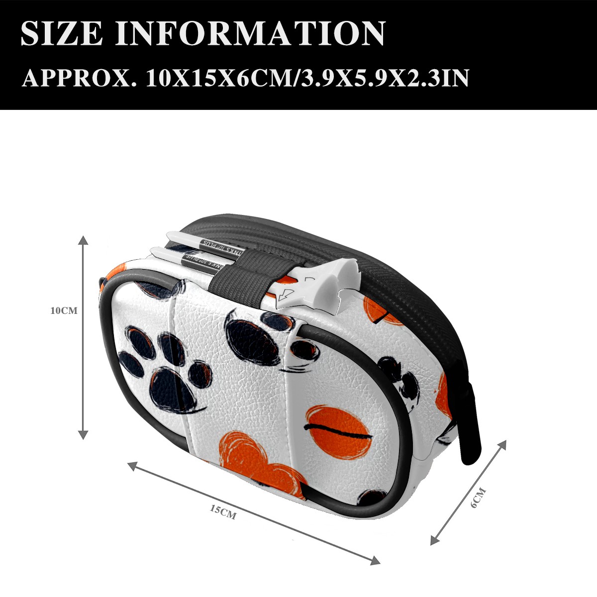 Zipper Coin Purse Lightweight Portable Keychain Wallet, Mini Zip Wristlet Wallets with Orange Paw Print Design,PU Leather Purse for Travel Credit Card Holder