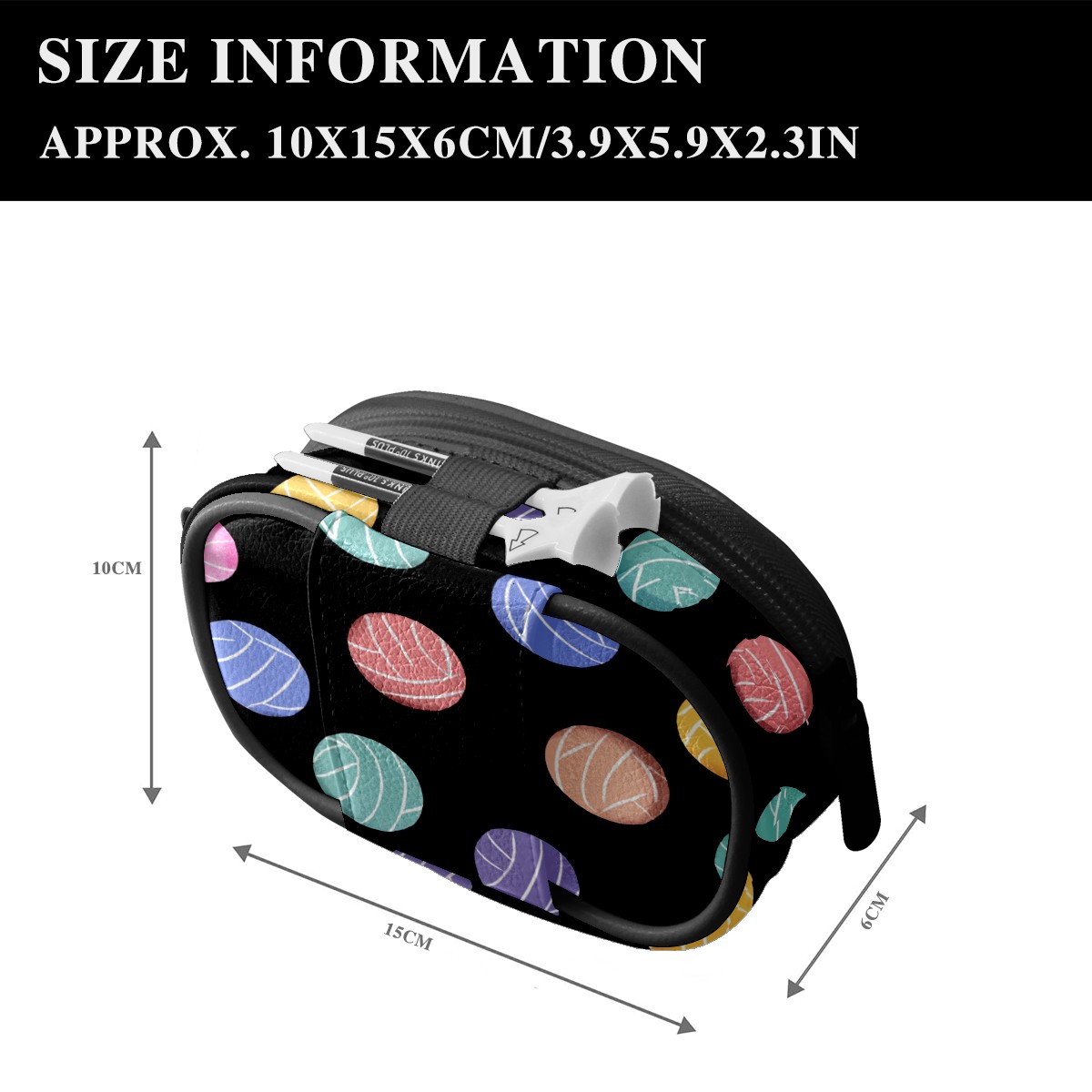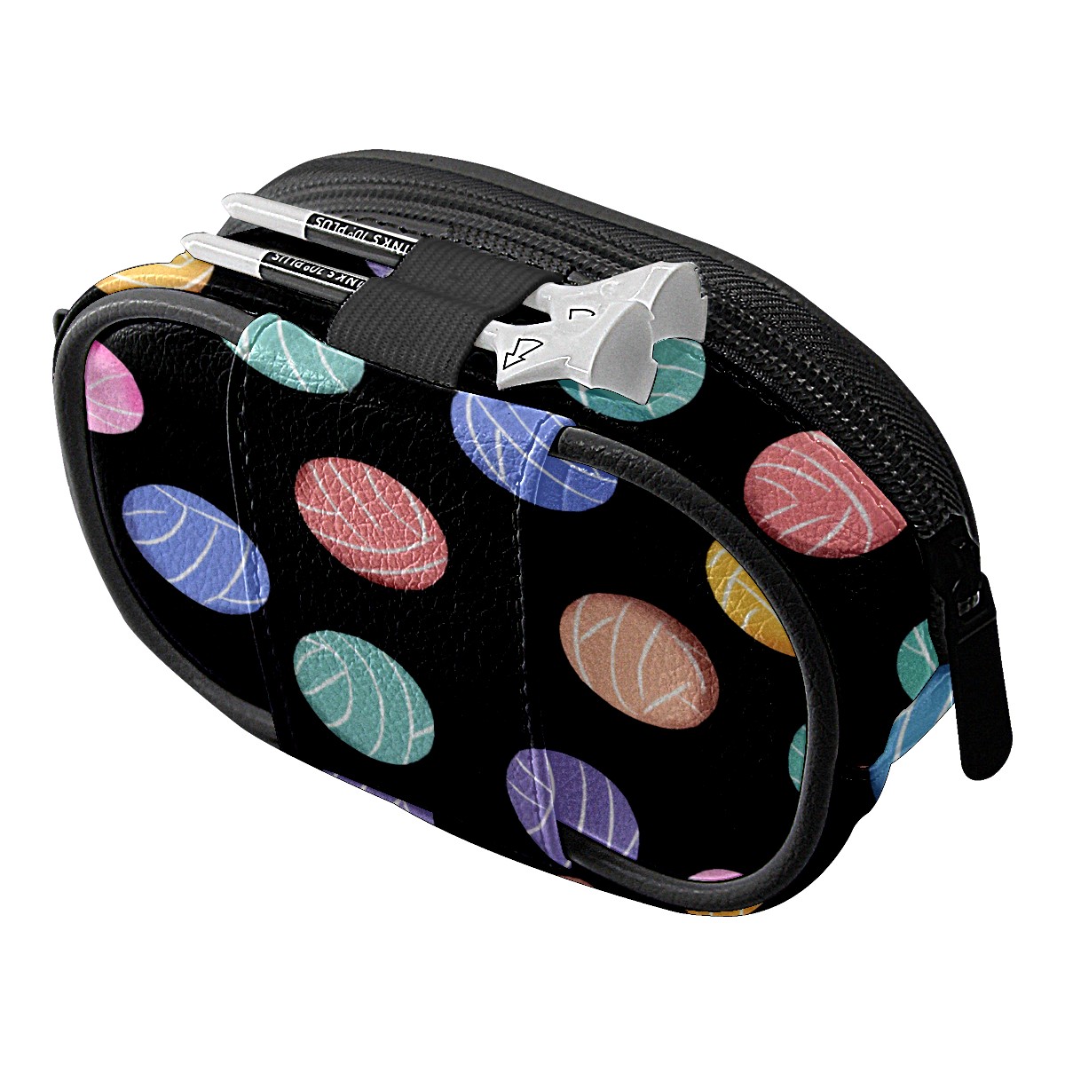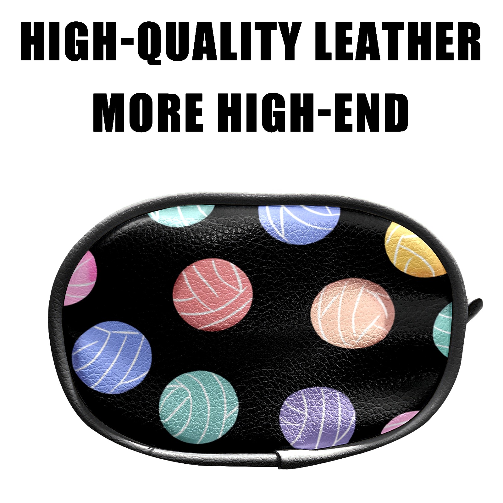 Zipper Coin Purse Lightweight Portable Keychain Wallet, Mini Zip Wristlet Wallets with Colorful Ball Black Design,PU Leather Purse for Travel Credit Card Holder