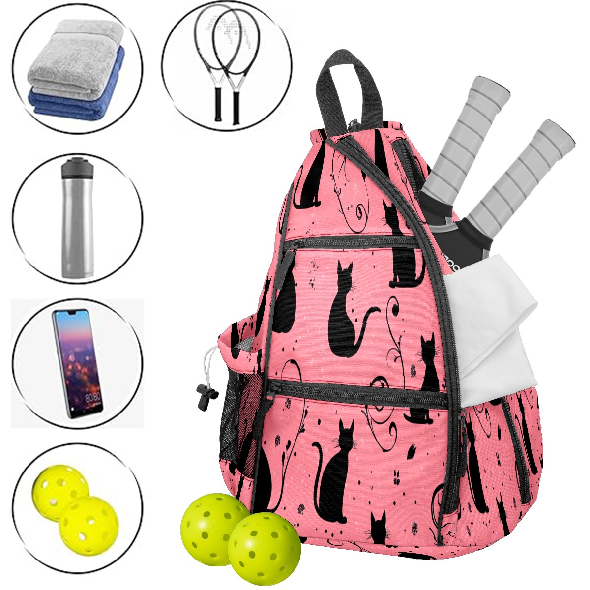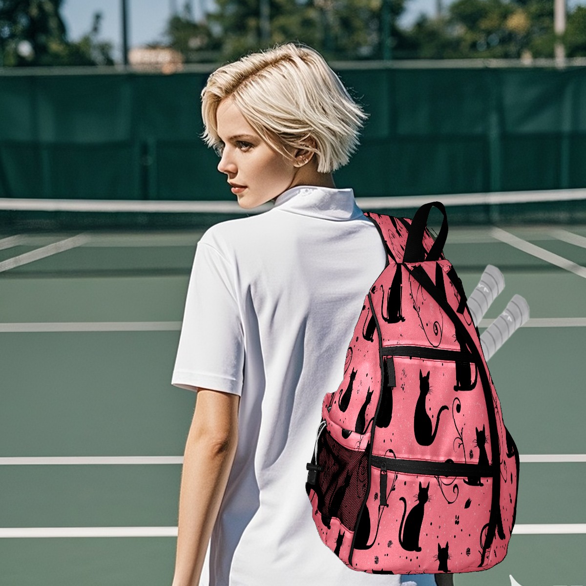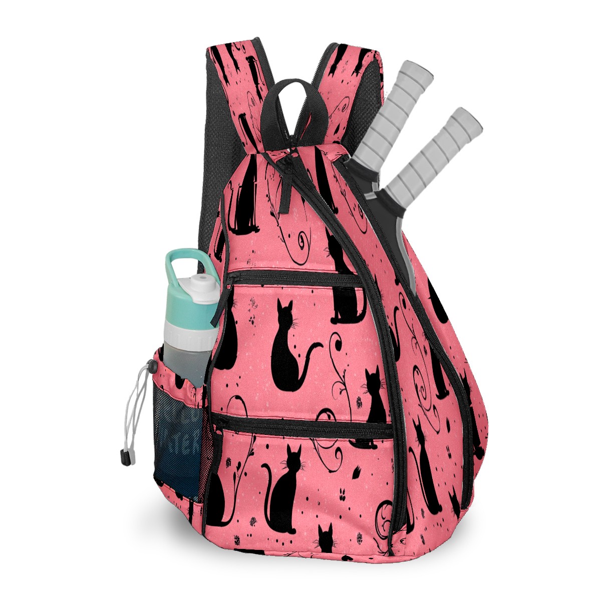 Multifunctional Pickleball Bag,Large Capacity Sports Pickleball Racket Bag, Water Bottle Holder and Fence Hook,Suitable for Both Men Women Back Of Black Cat