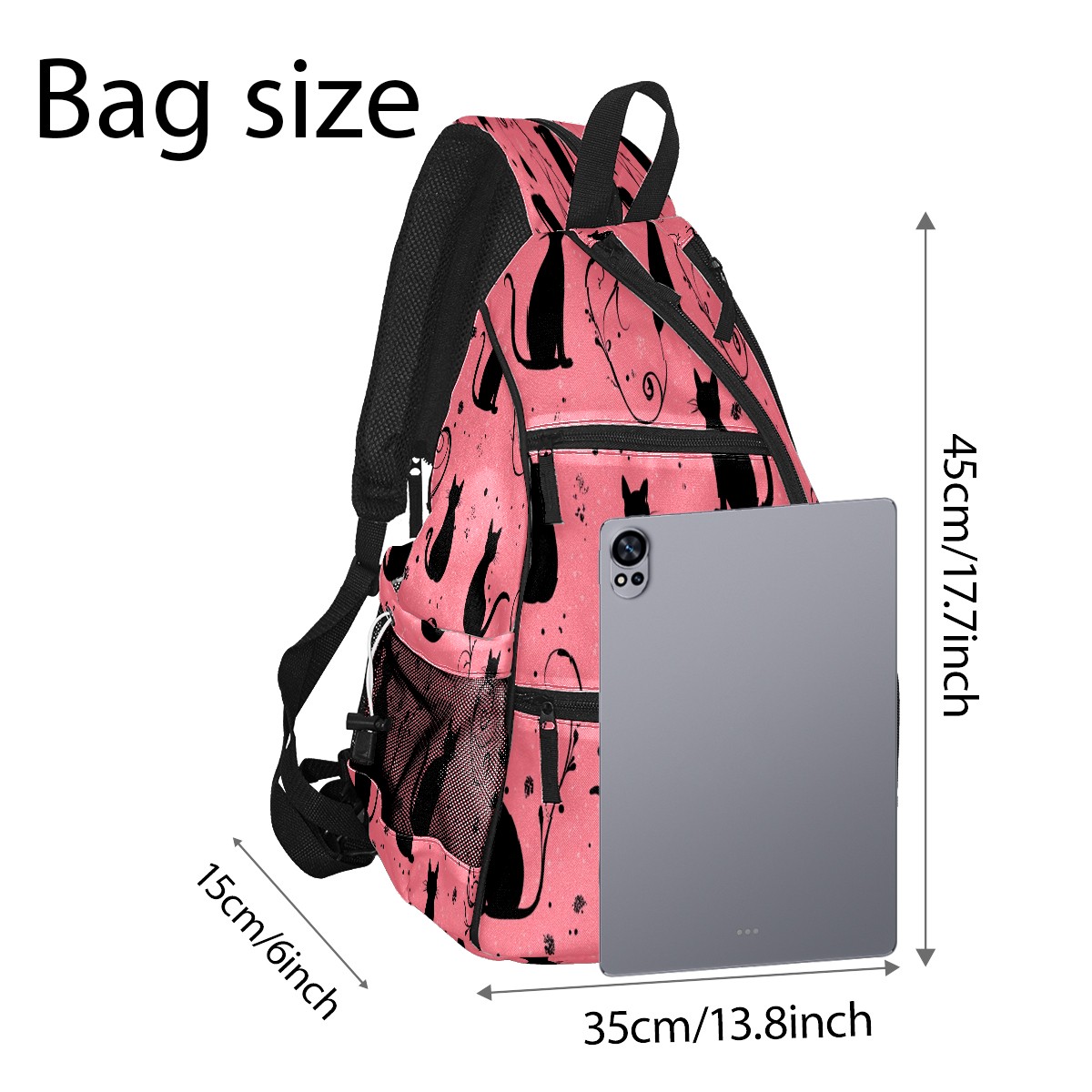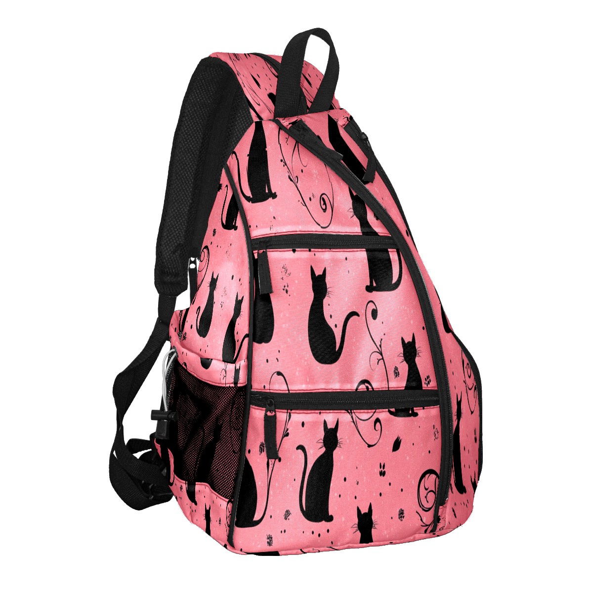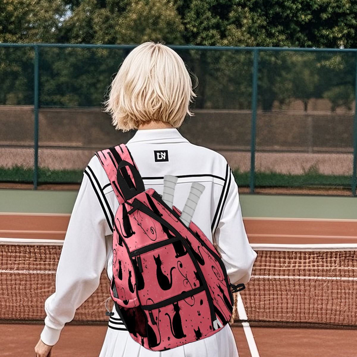 Multifunctional Pickleball Bag,Large Capacity Sports Pickleball Racket Bag, Water Bottle Holder and Fence Hook,Suitable for Both Men Women Back Of Black Cat