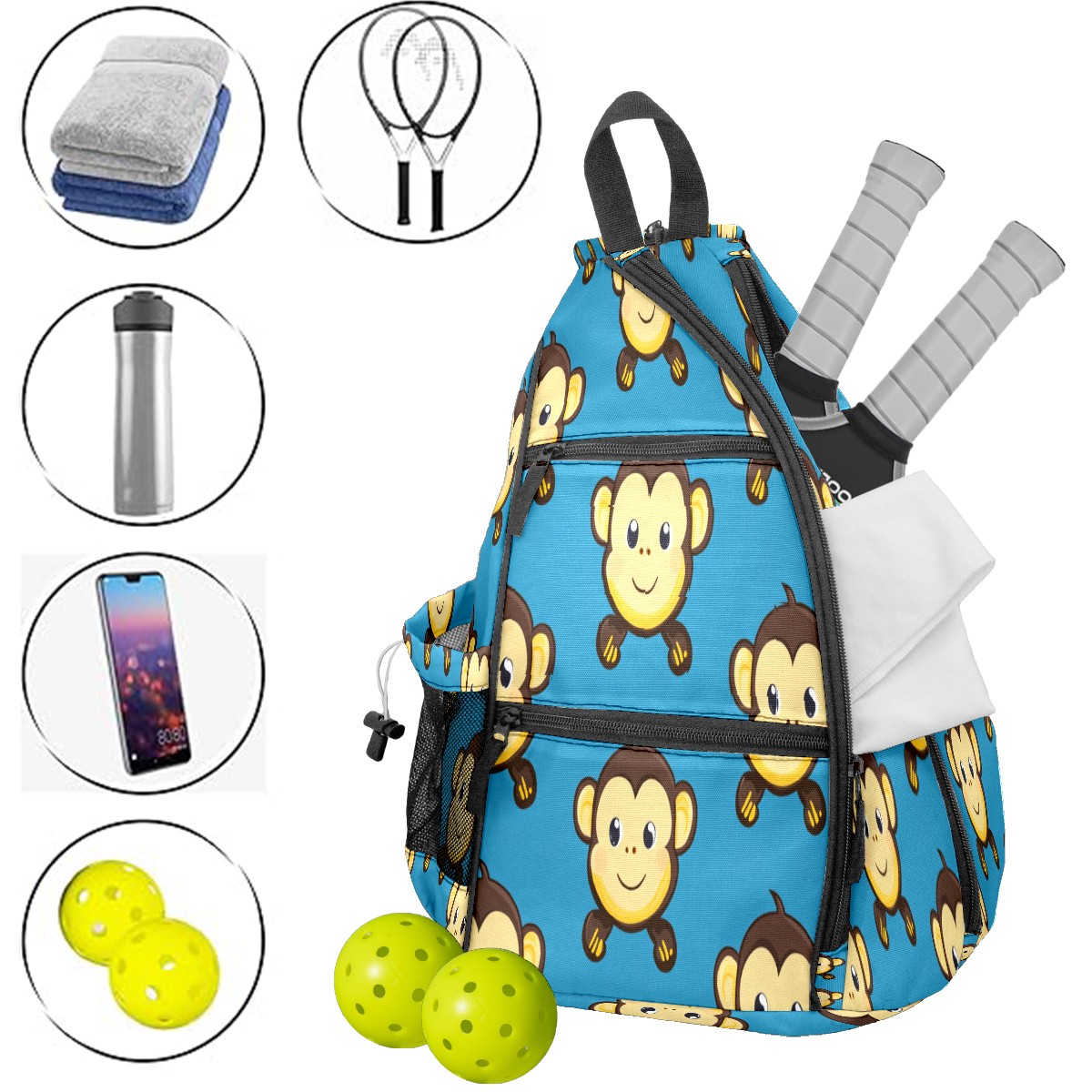Multifunctional Pickleball Bag,Large Capacity Sports Pickleball Racket Bag, Water Bottle Holder and Fence Hook,Suitable for Both Men Women Cartoon Monkey
