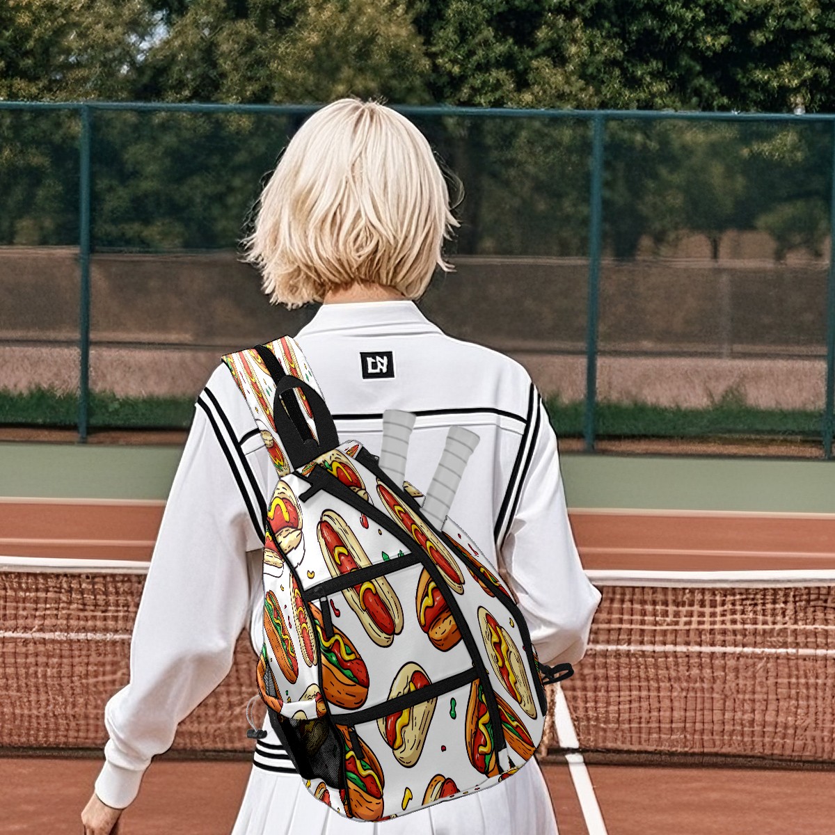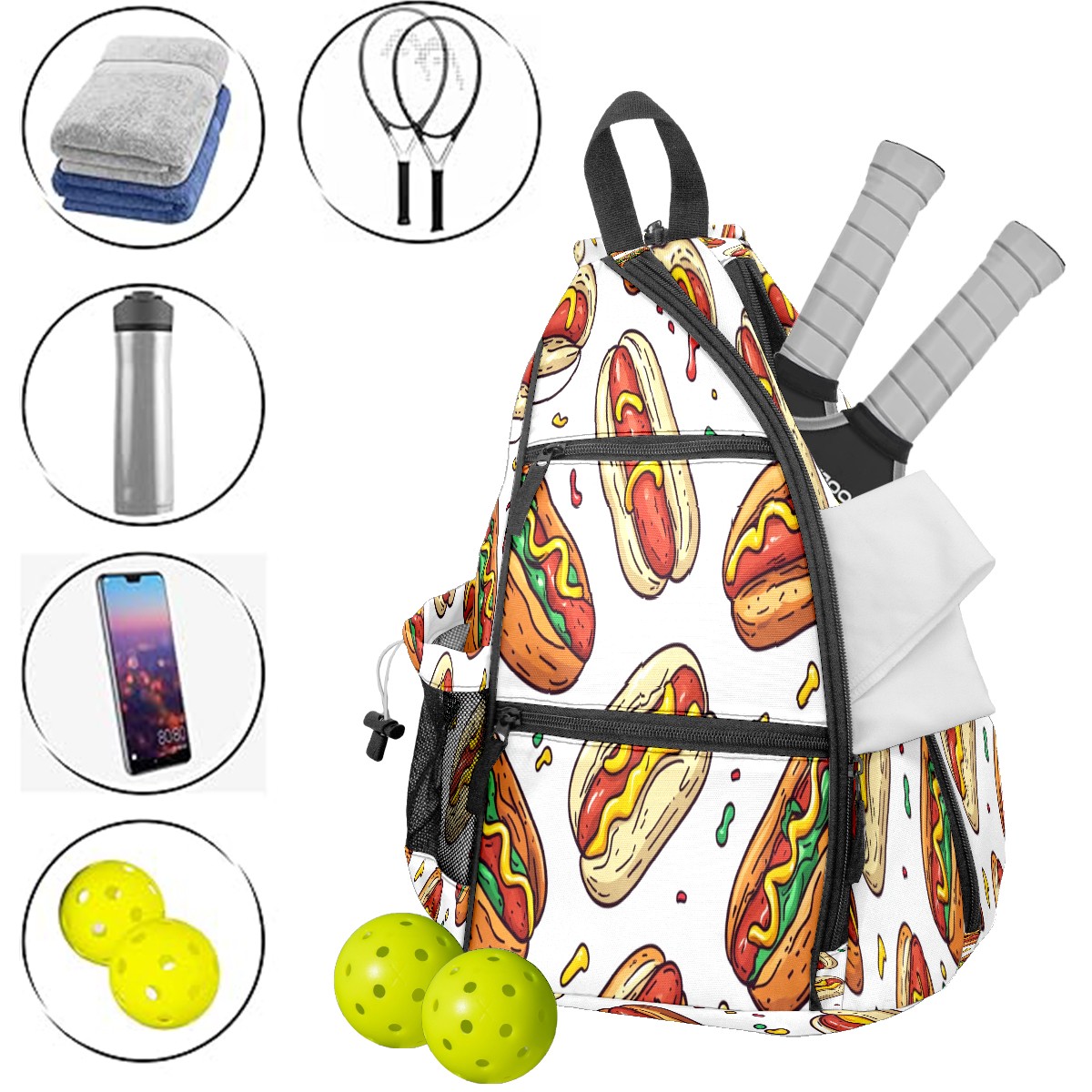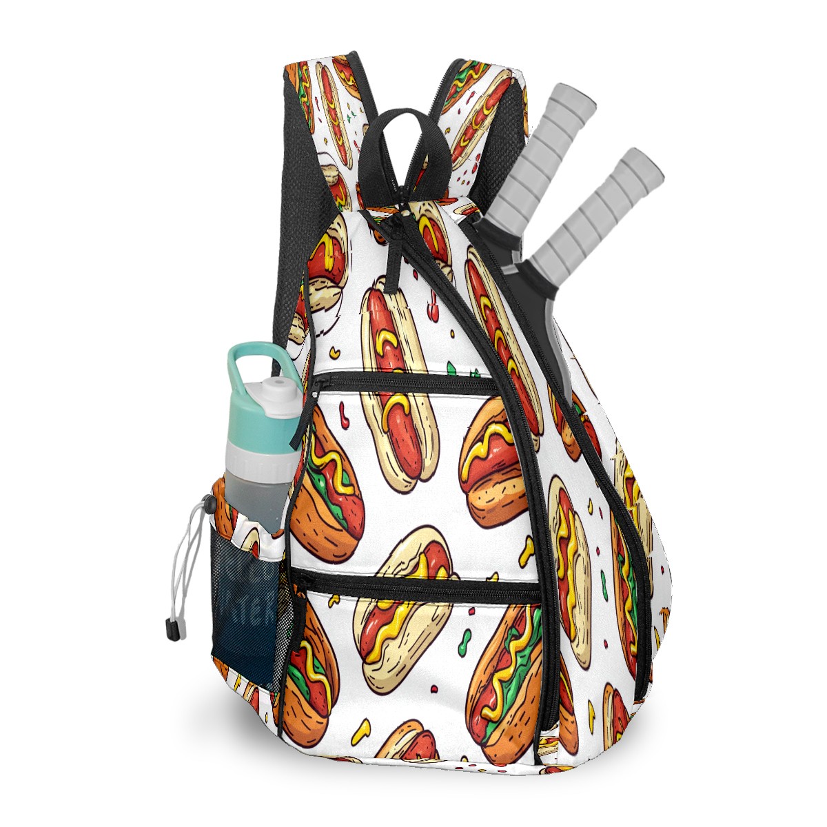 Multifunctional Pickleball Bag,Large Capacity Sports Pickleball Racket Bag, Water Bottle Holder and Fence Hook,Suitable for Both Men Women Hot Dog