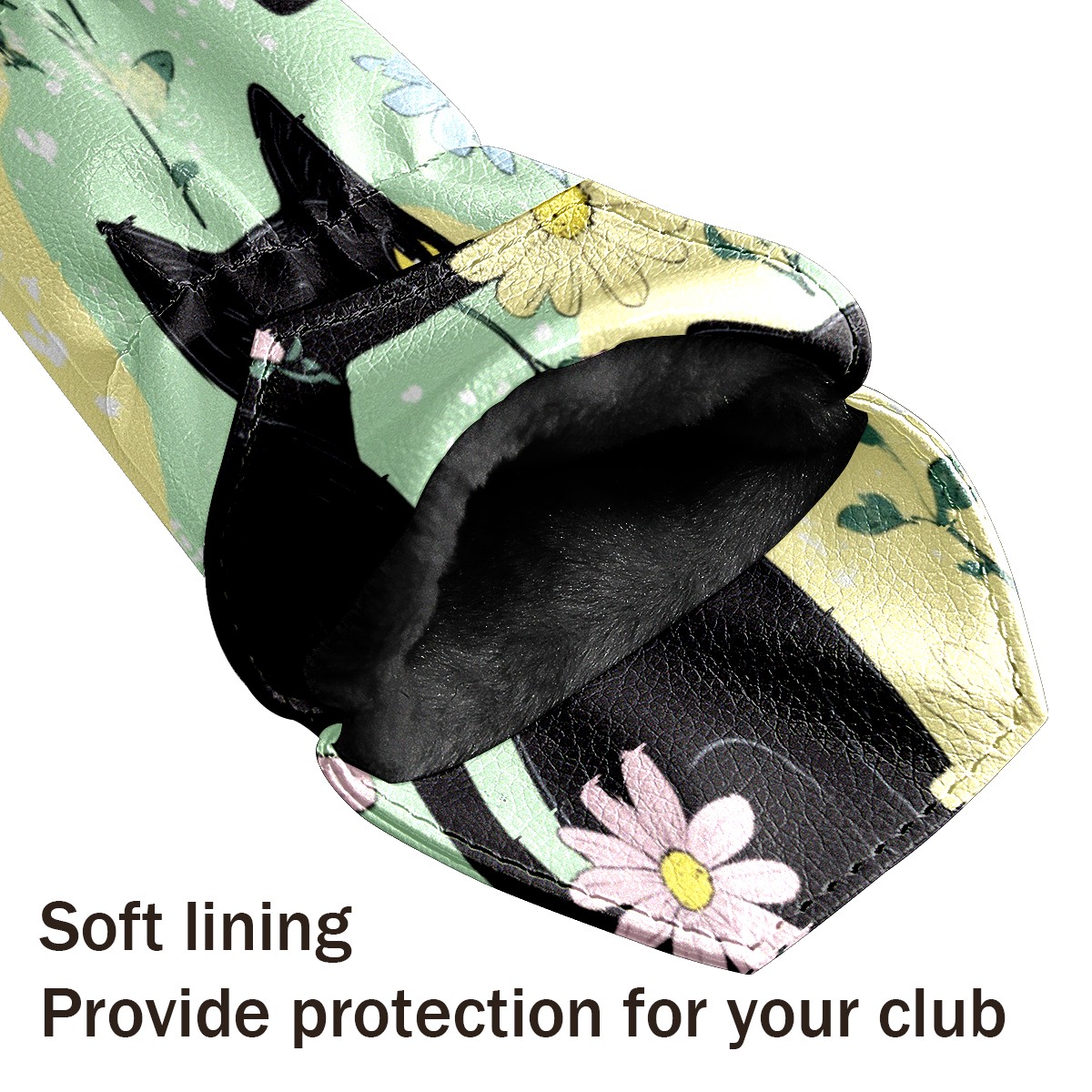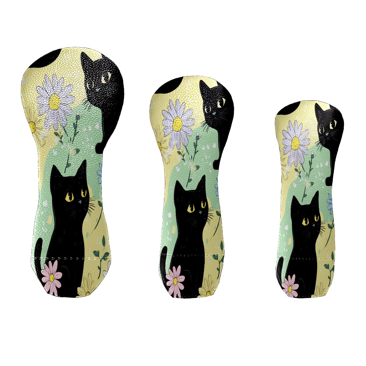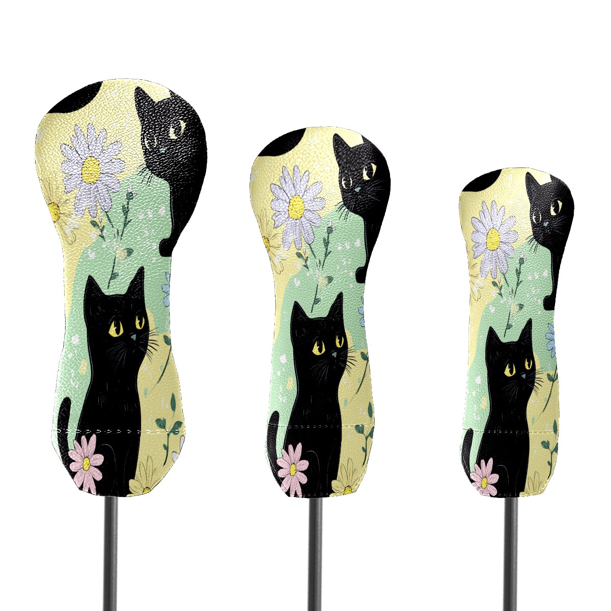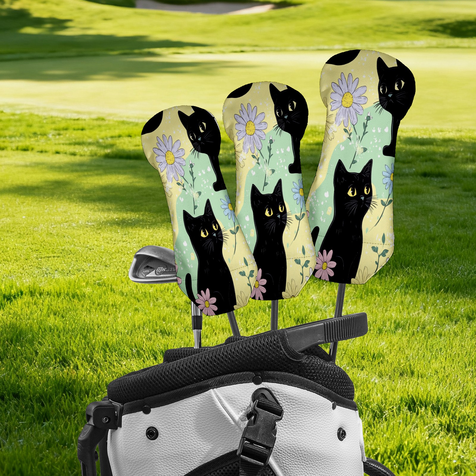 Golf Club Covers for Woods and Driver Hybrid Velvet Cover Leather Golf Headcover for Most Brand Club Men Women Colorful Flower Black Cat