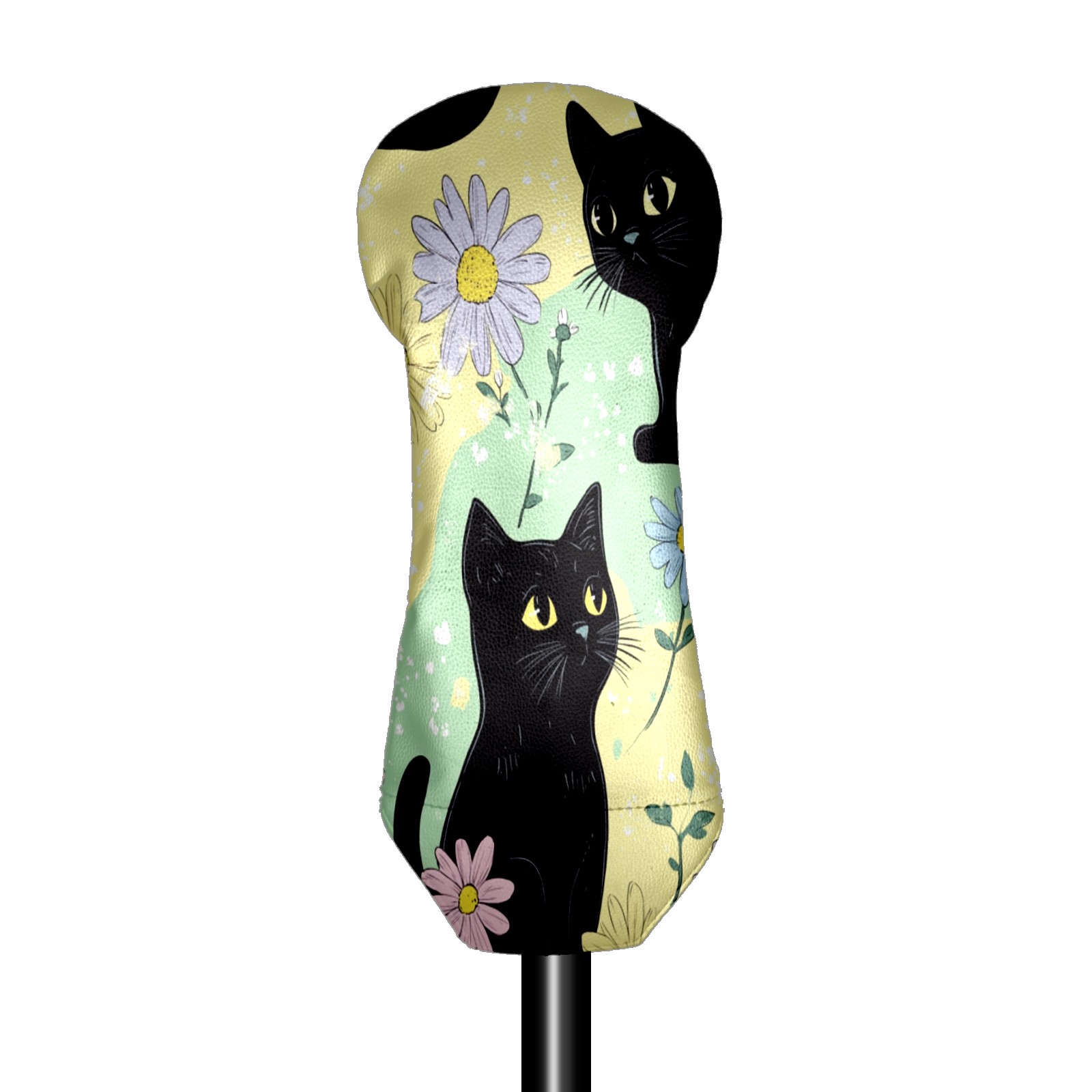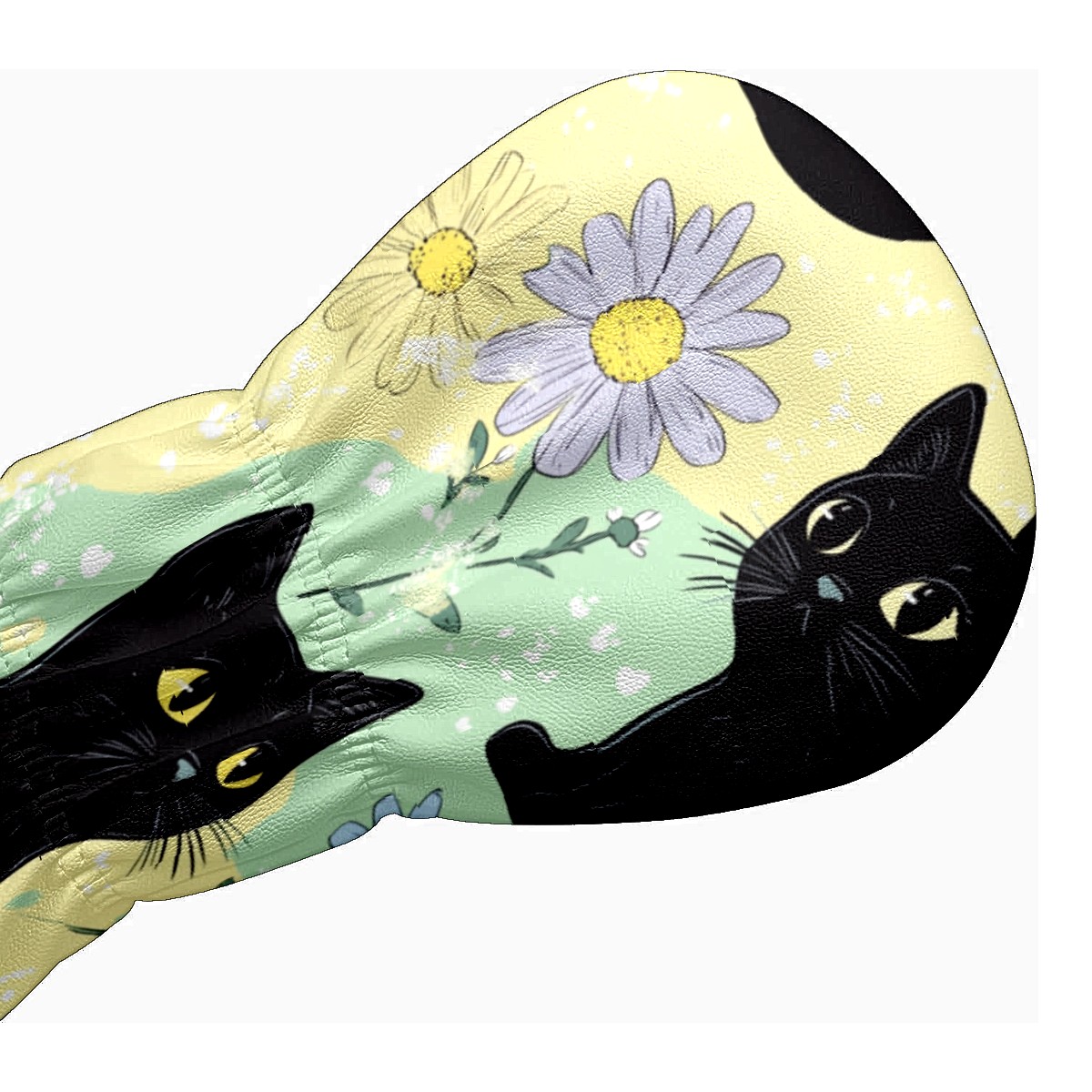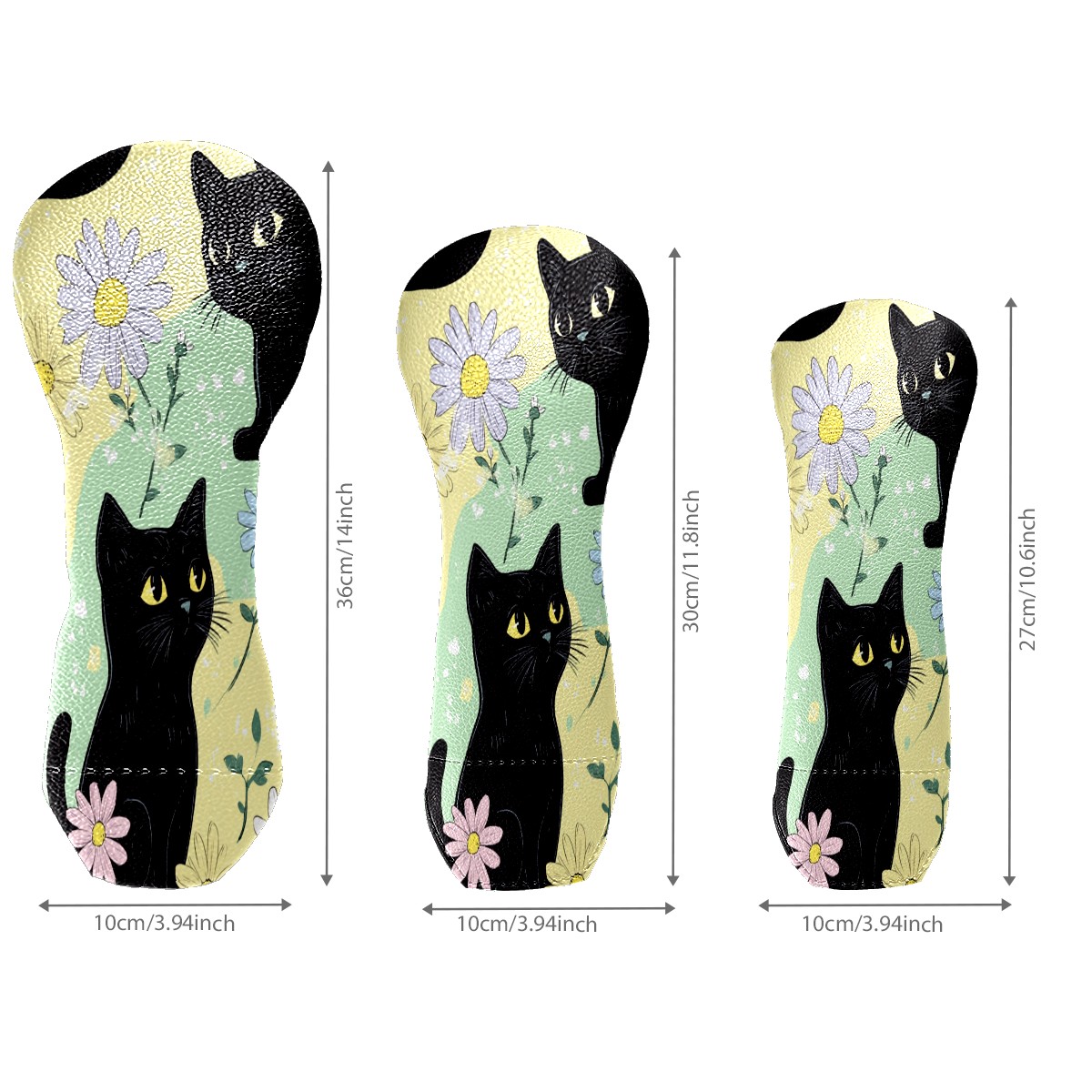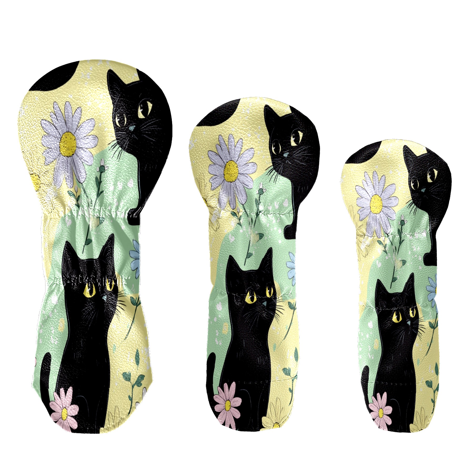Golf Club Covers for Woods and Driver Hybrid Velvet Cover Leather Golf Headcover for Most Brand Club Men Women Colorful Flower Black Cat