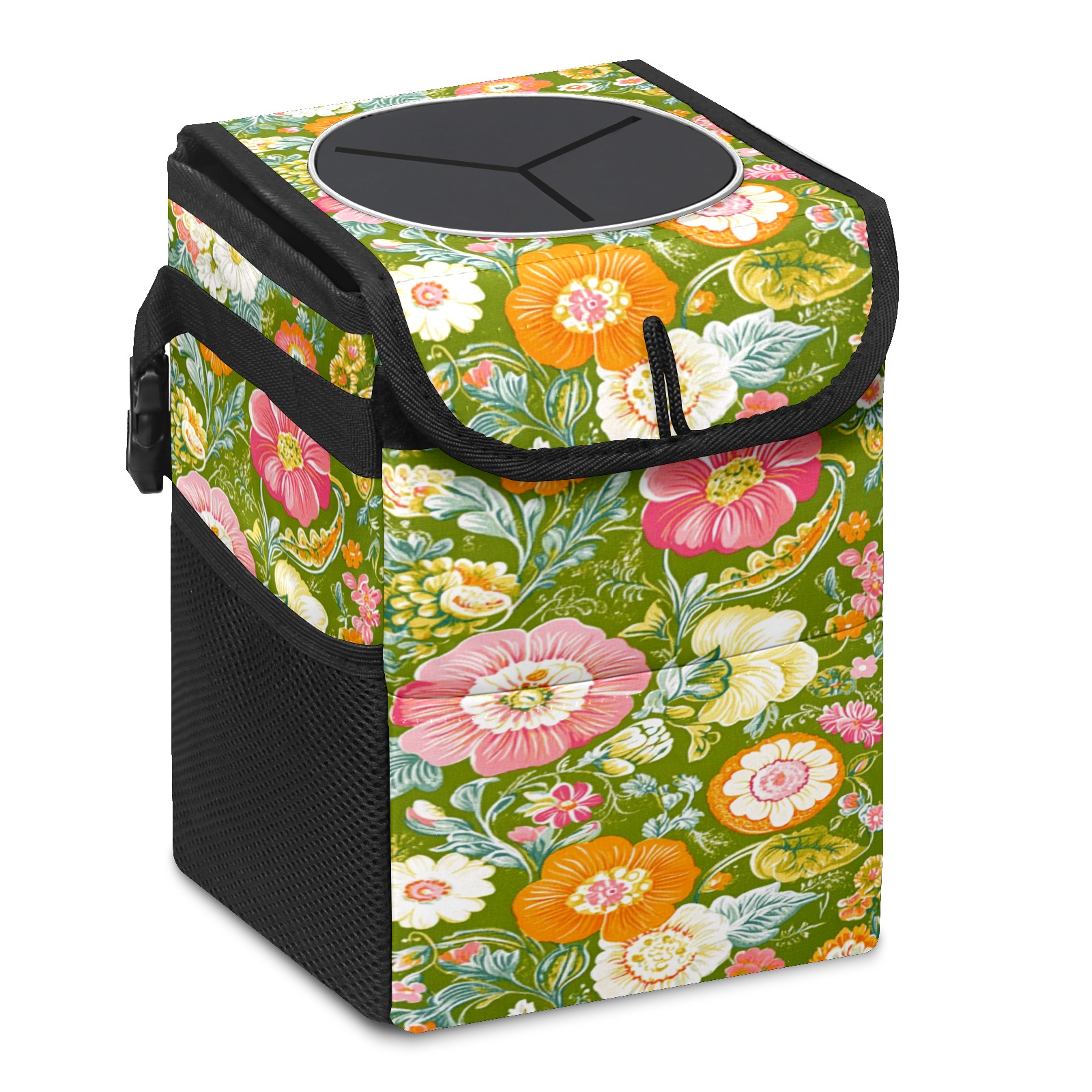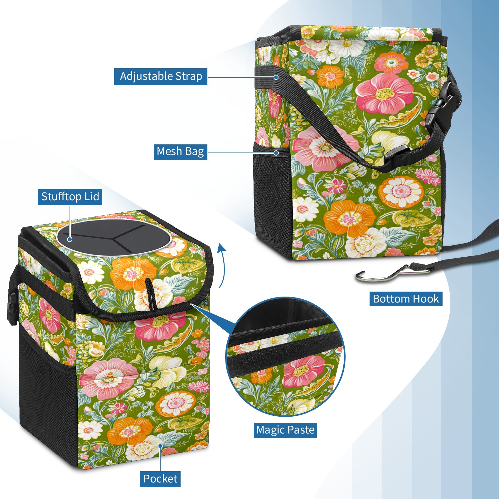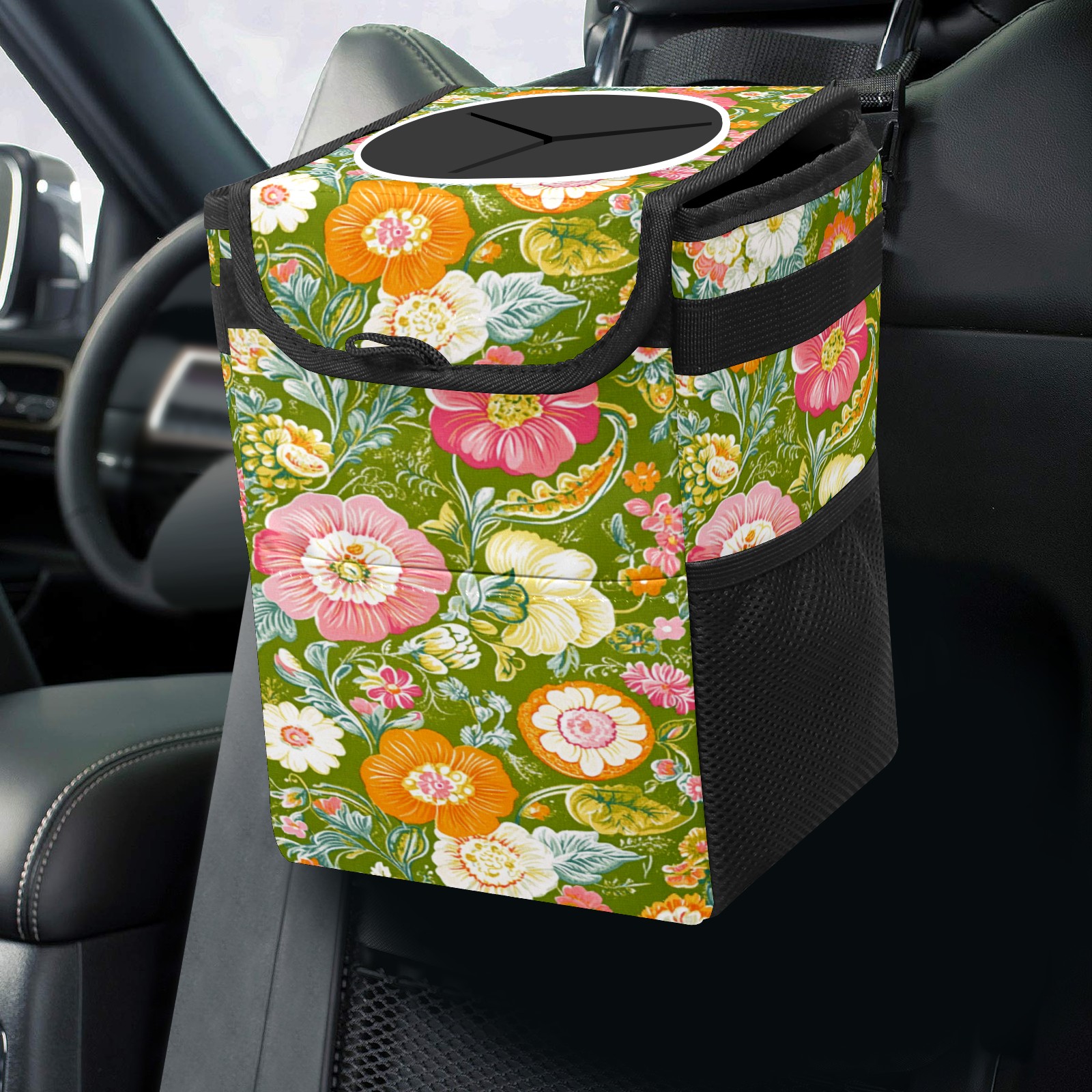 Universal Hanging Car Trash Can - Leakproof Design with Secure Lid | Fits SUV, Truck, Van | Front & Back Seat Friendly | Smart Automotive Accessory Floral Paisley Pattern
