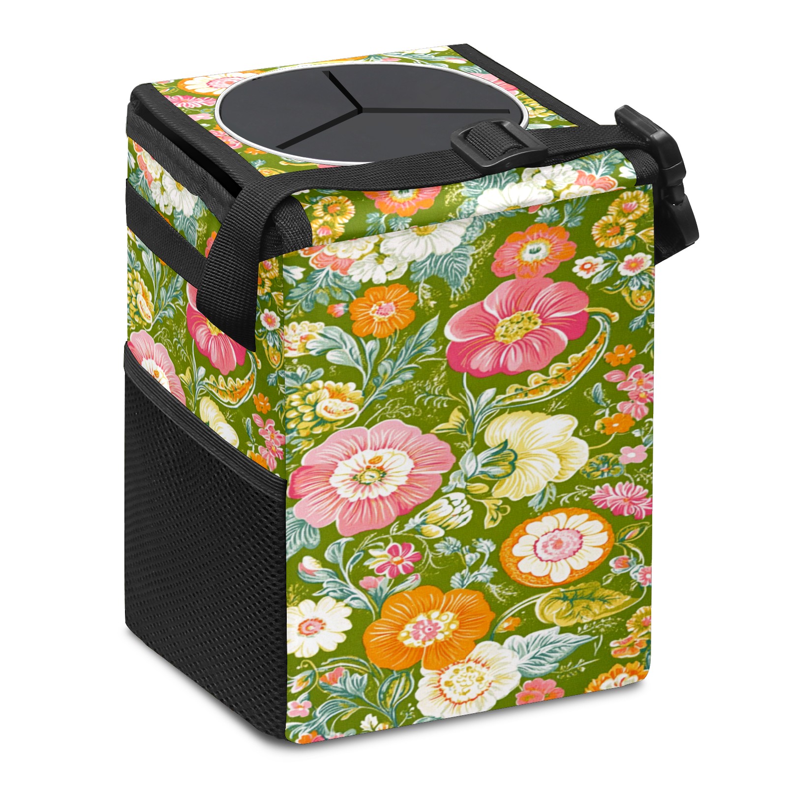• <p>This multi-functional car trash can features a stylish printed design, combining practicality and aesthetics. Made with high-quality twill fabric and woven straps, it's sturdy and durable. Dimensions: 24×17×16cm (9.5×6.7×6.3 inches). The top rubber opening lid makes disposing of trash easy, while side mesh pockets and a front pocket easily store snacks, mobile phones, and other small items. Equipped with a dual securing system of straps and elastic hooks, it can be flexibly hung behind headrests, inside armrest boxes, or hooked to the bottom of seat cushions. Not only can it be used as a trash can, but it can also function as a food or miscellaneous item storage box, achieving multiple uses. When not in use, it can be folded for storage, saving space and creating a clean and tidy environment for your car.<br></p>