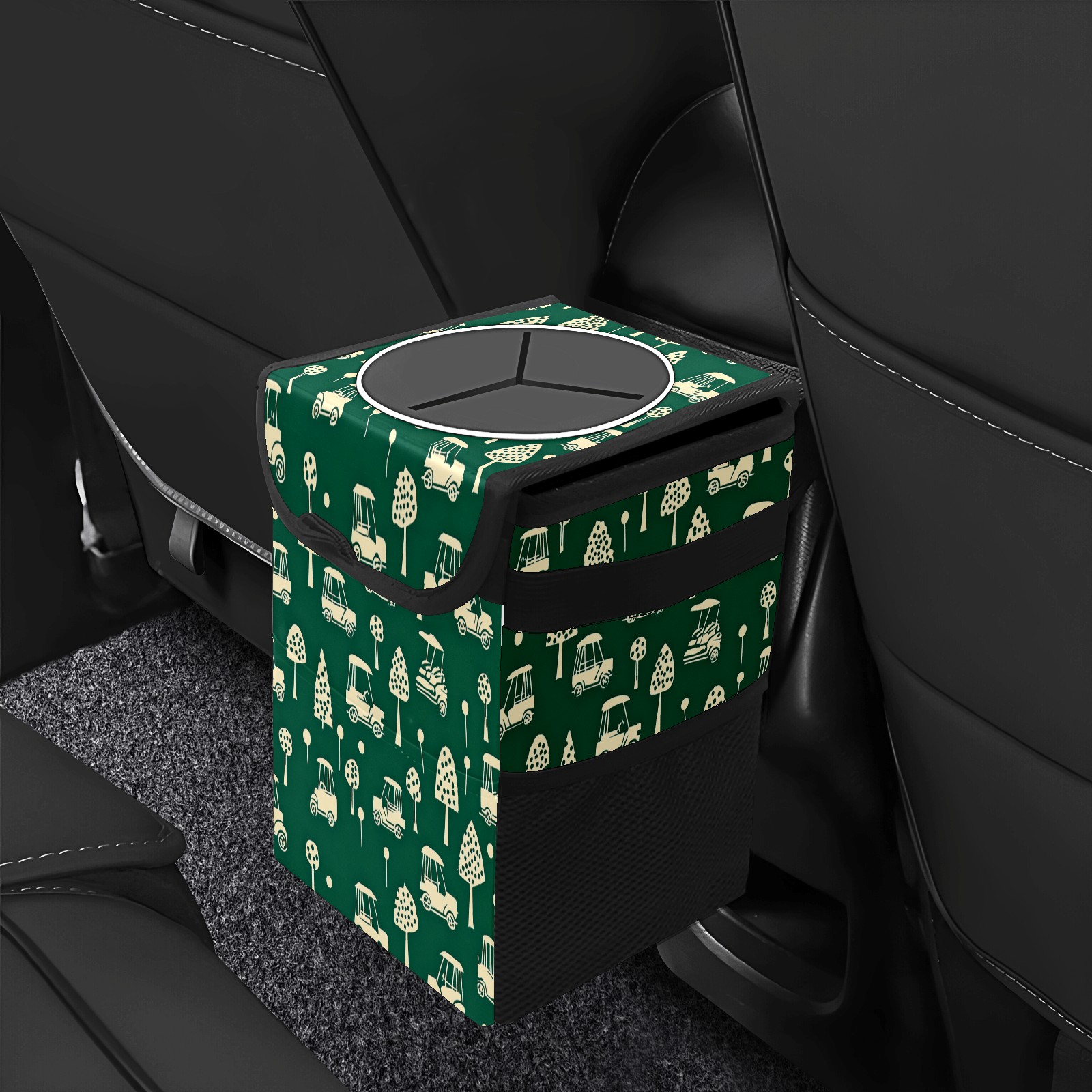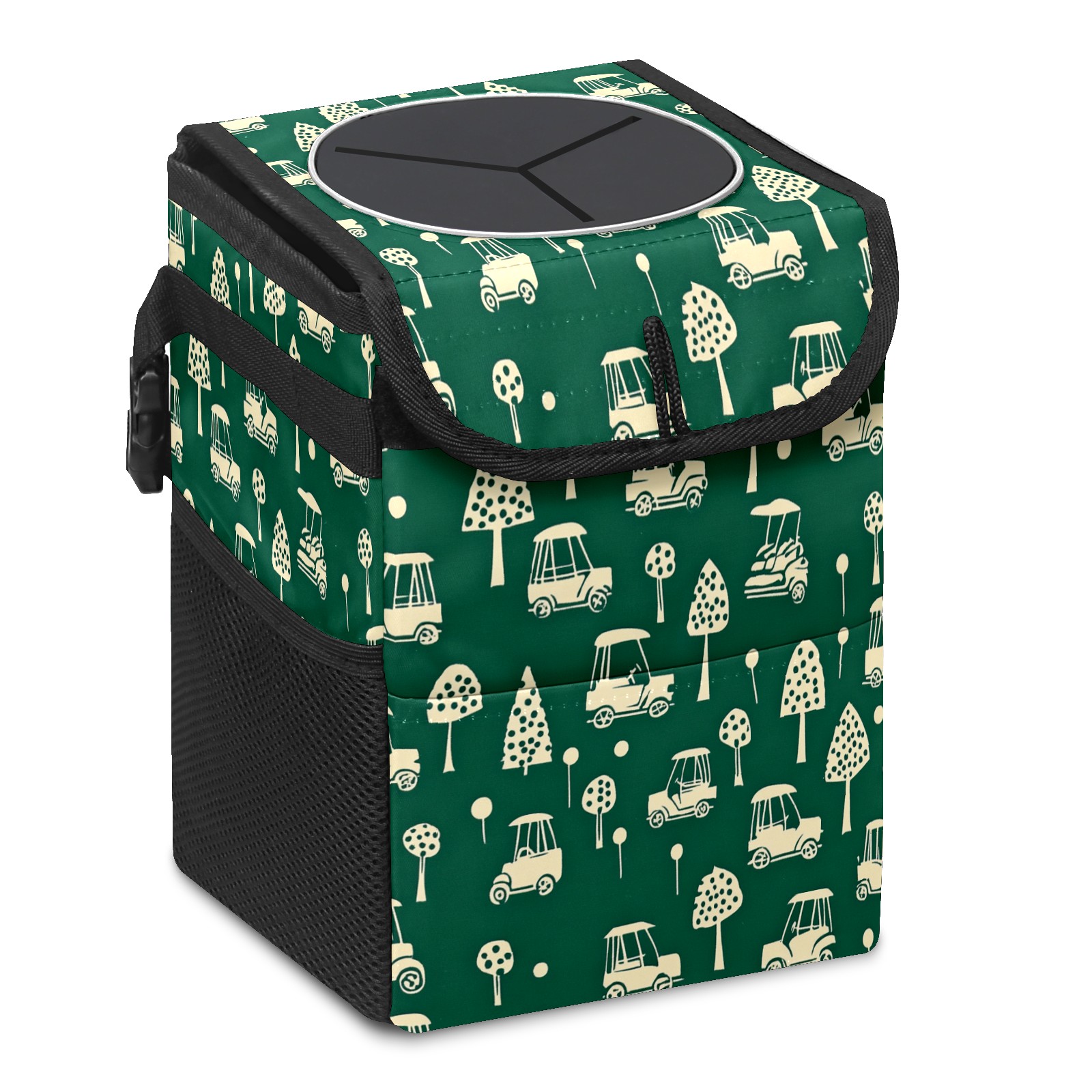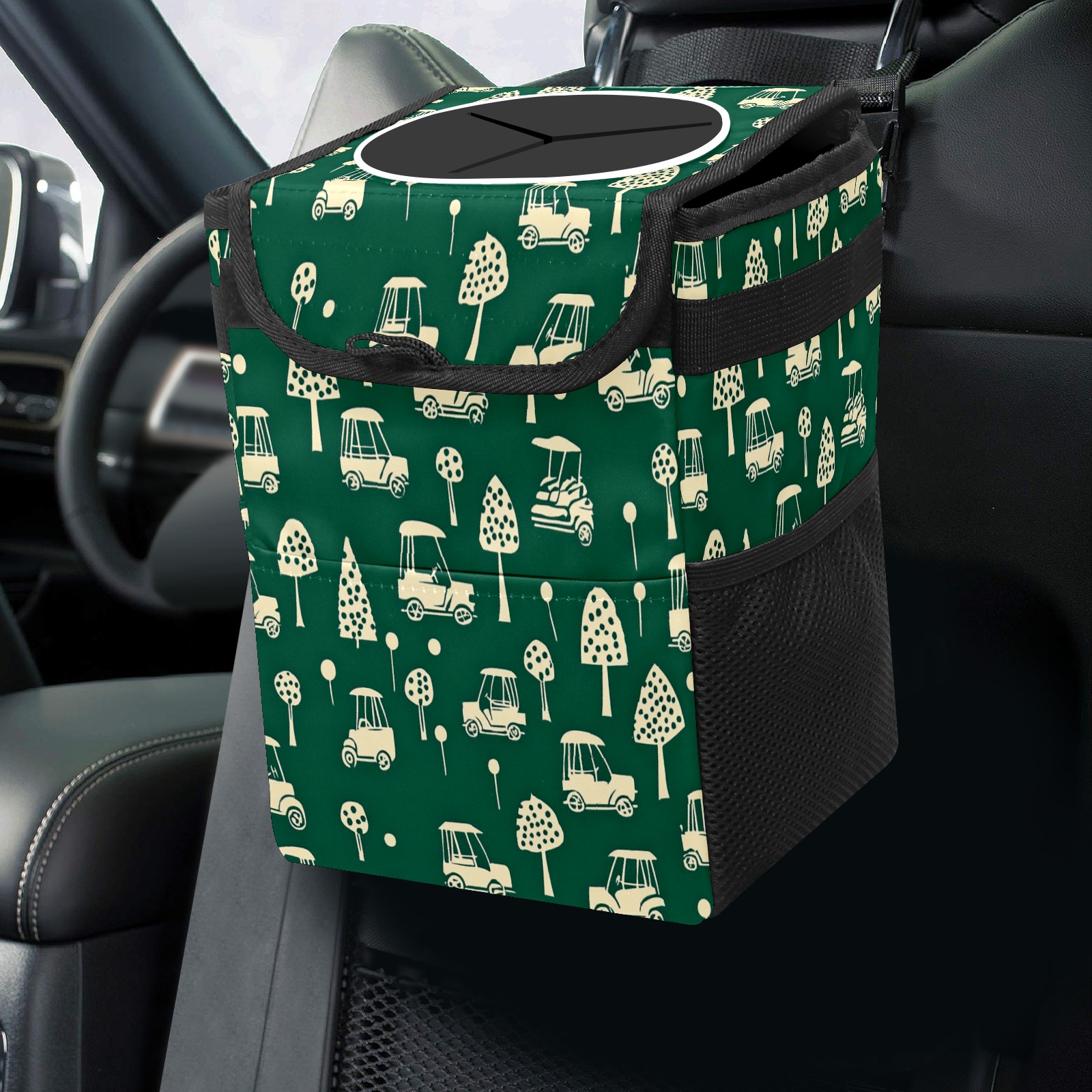 Universal Hanging Car Trash Can - Leakproof Design with Secure Lid | Fits SUV, Truck, Van | Front & Back Seat Friendly | Smart Automotive Accessory Golf Elements Pattern