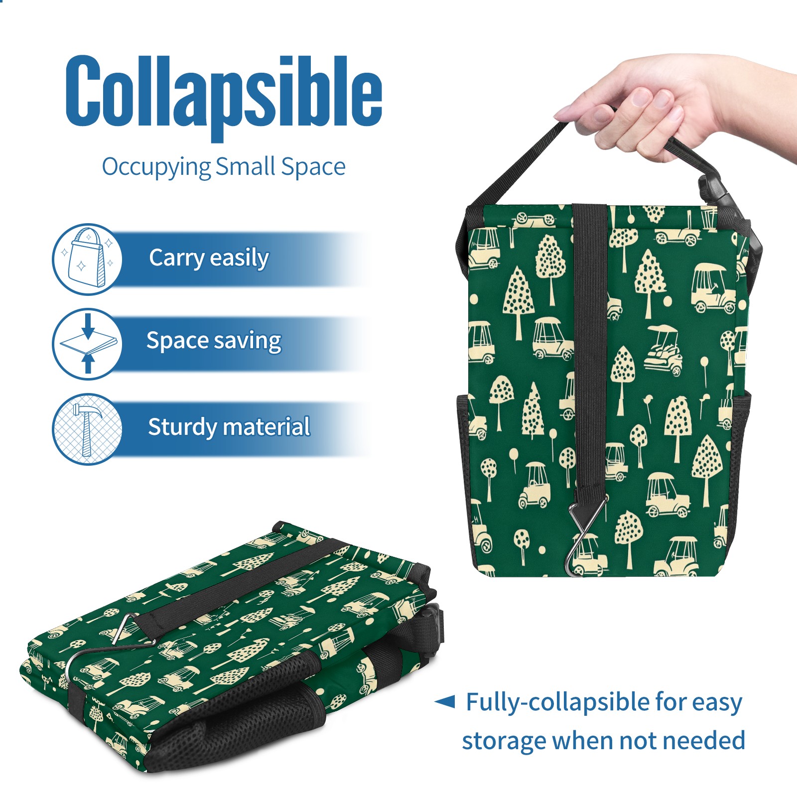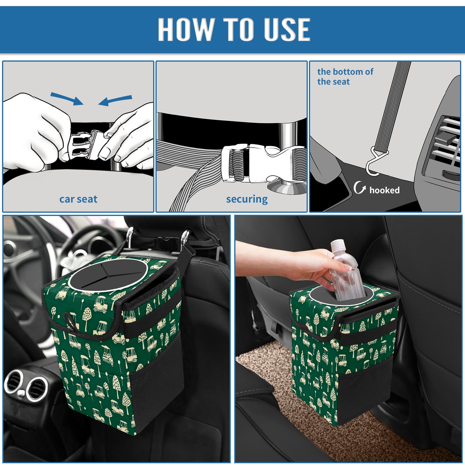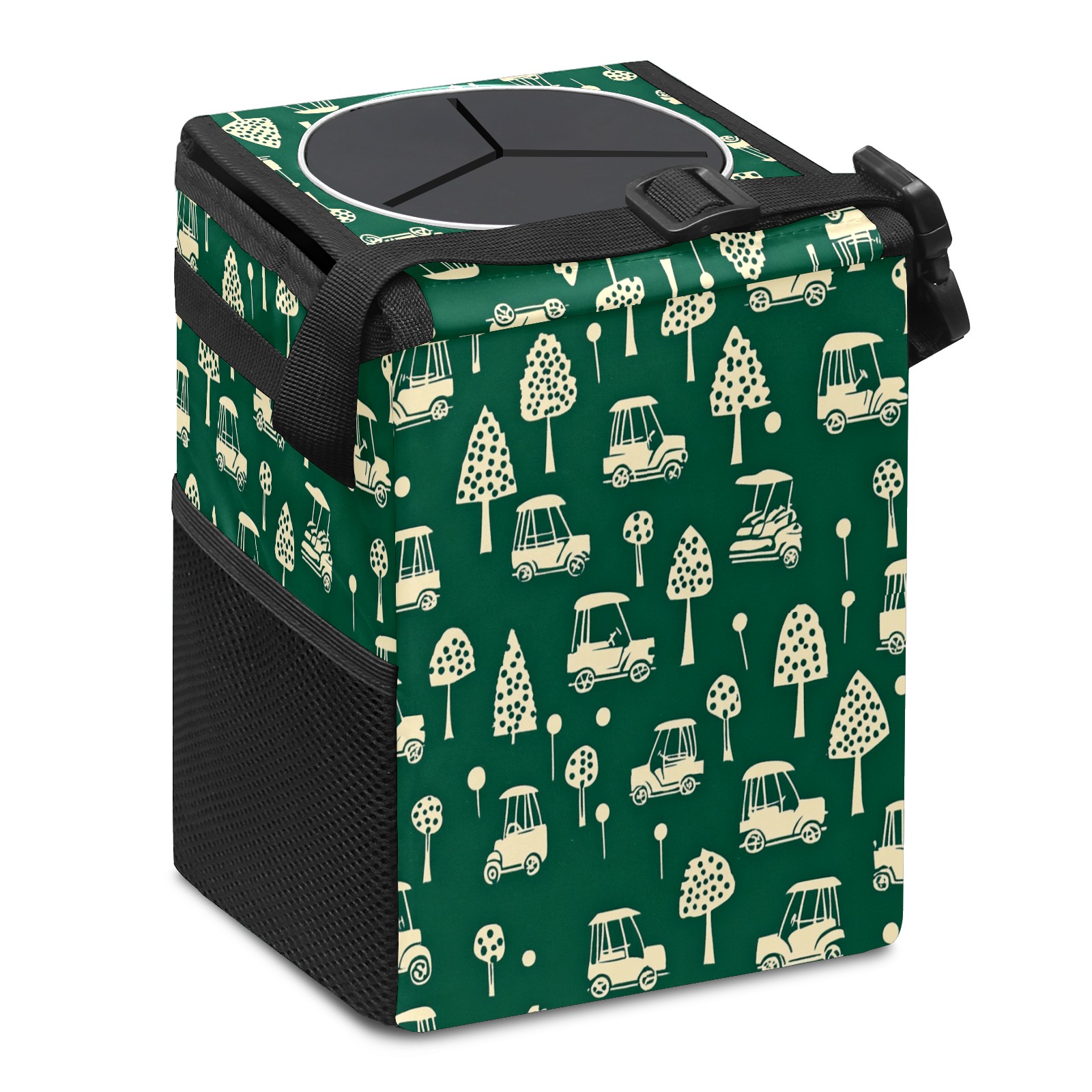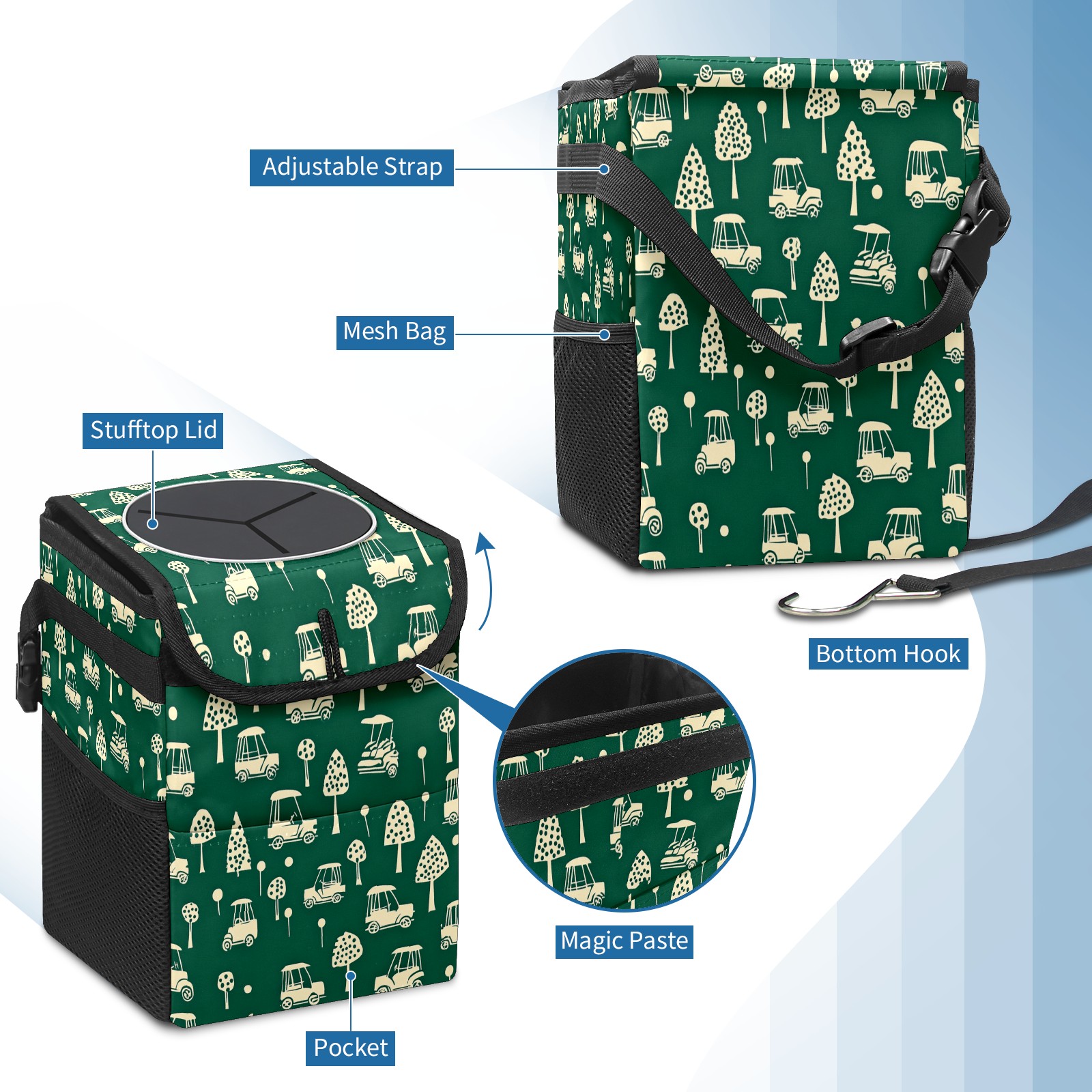 Universal Hanging Car Trash Can - Leakproof Design with Secure Lid | Fits SUV, Truck, Van | Front & Back Seat Friendly | Smart Automotive Accessory Golf Elements Pattern