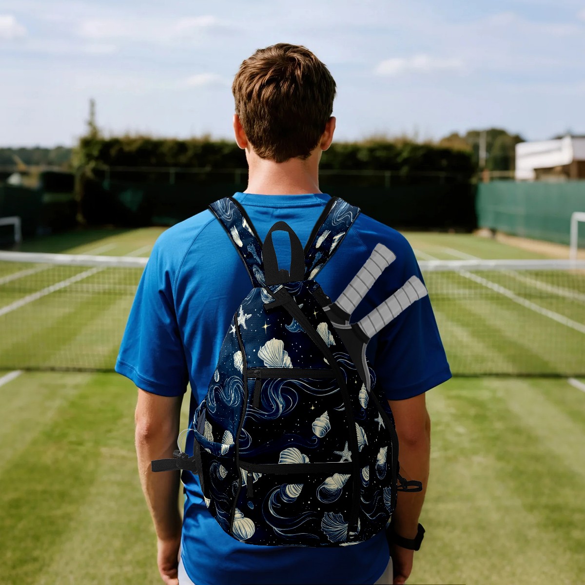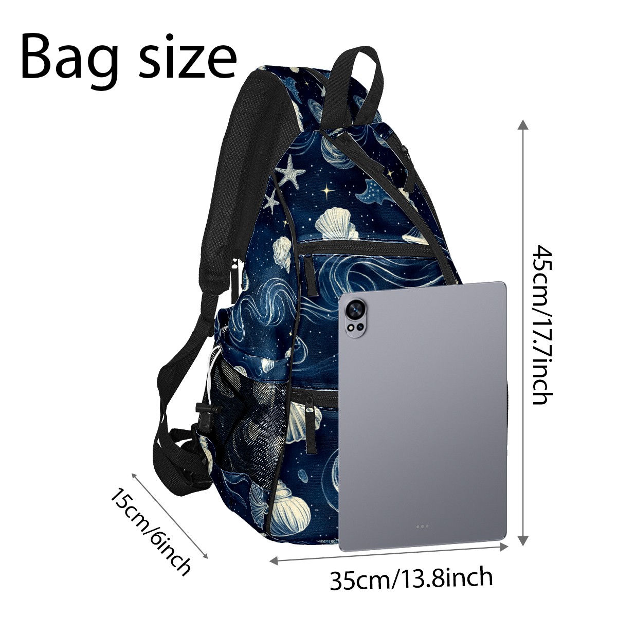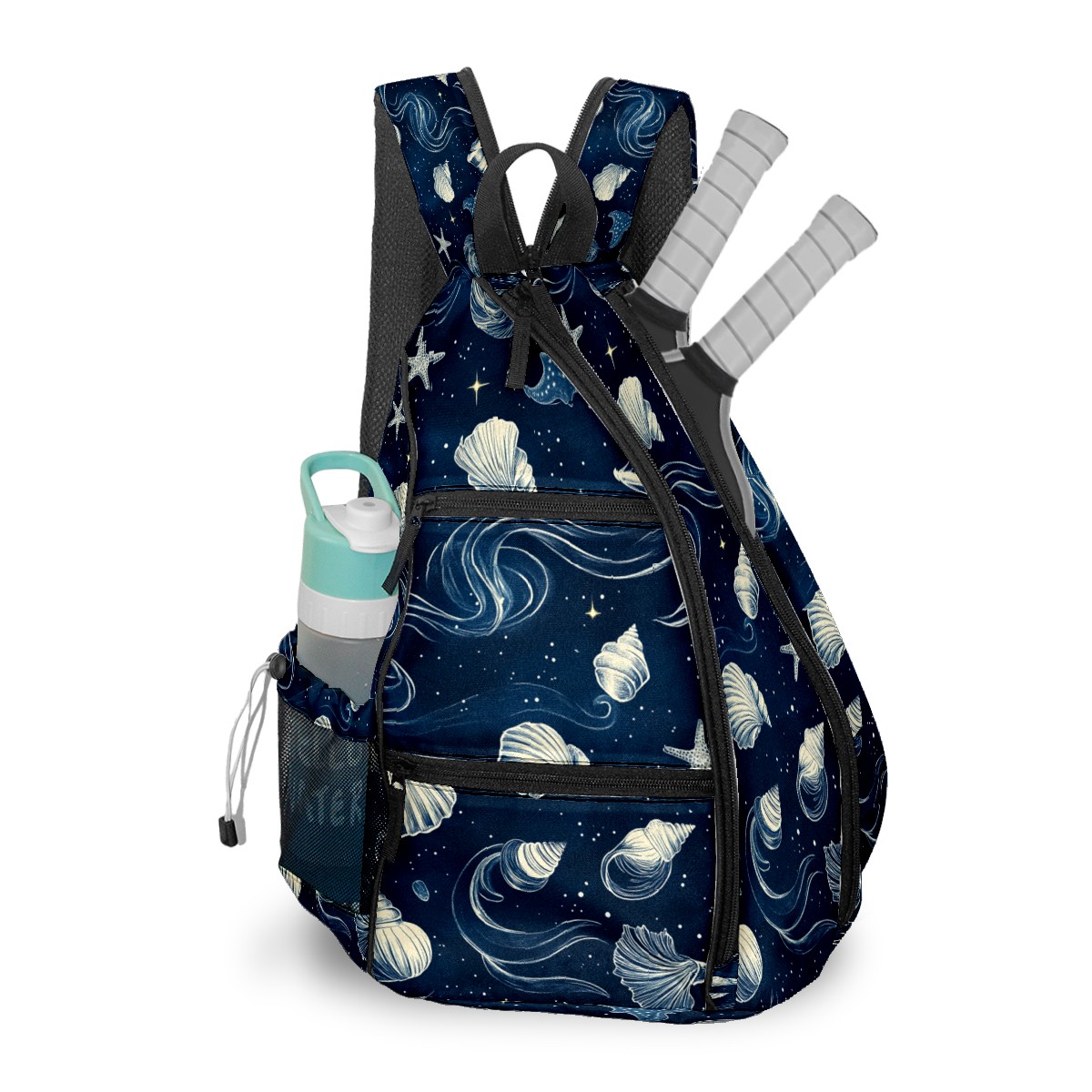 Pickleball Sling Bag for Women and Men - Backpack with Nylon Fabric/Woven Strap/Mesh Pocket/Fence Hook/Adjustable Bag Sea Creatures Pattern
