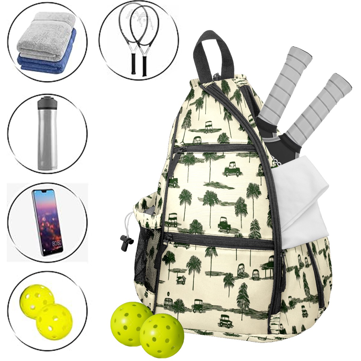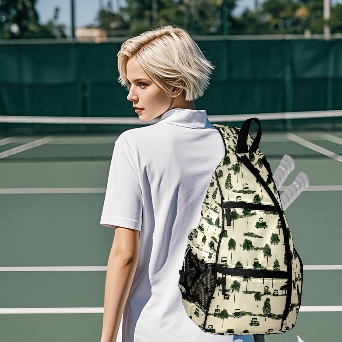 <p>Pickleball Bag | From “Equipment Chaos” to “One Bag to Rule Them All” — A Revolution on the Court</p> <p>The Origin: Every time we bent down to pick up scattered rackets, balls, and water bottles, we silently vowed — we had to create a pickleball bag that could “cure laziness”!</p> <p>✨ 5 Core Features, Designed for Pickleball Players</p> <p>✅ Durable Construction: Wear-resistant nylon + reinforced woven straps + breathable mesh pockets withstand the “brutal tests” of dropping rackets and dragging on the ground; the mesh pockets also allow wet towels to “breathe”;</p> <p>✅ Spacious storage: 15×35×45cm golden dimensions, easily accommodating 2 racquets + 10 balls + water bottle + spare clothes, saying goodbye to the awkwardness of “left hand holding the racquet, right hand chasing the ball”;</p> <p>✅ Cloud-like carrying experience: Padded back panel + air mesh shoulder straps, feel like you're being carried by a cloud while swinging your racket, no sweating even after prolonged use, no soreness after playing, keep your energy for what you love;</p> <p>✅ Transformable magic: Shoulder straps hide a “zipper mechanism,” unzip to instantly transform into a daily crossbody bag — take it straight to the mall after work, seamless transition from commuting to playing;</p> <p>✅ Bag Recognition Tool: Exclusive contrasting patterns act like a “signal flare” on the court, making your bag stand out in a crowd. No more worries about grabbing the wrong one!</p> <p>Starting with solving your own problems, we hope this bag will accompany you in swinging your racket with abandon, leaving all your energy for what you love!</p>