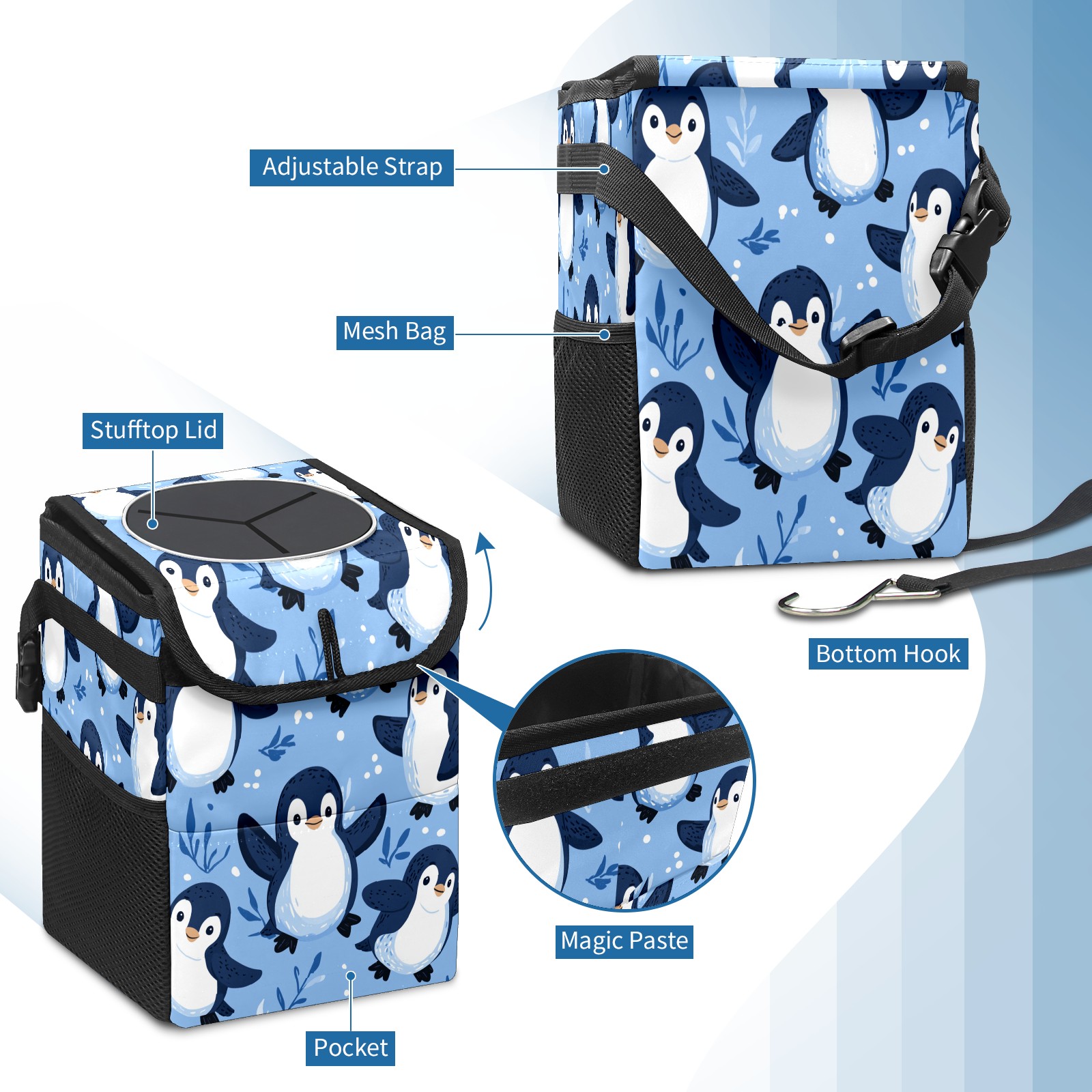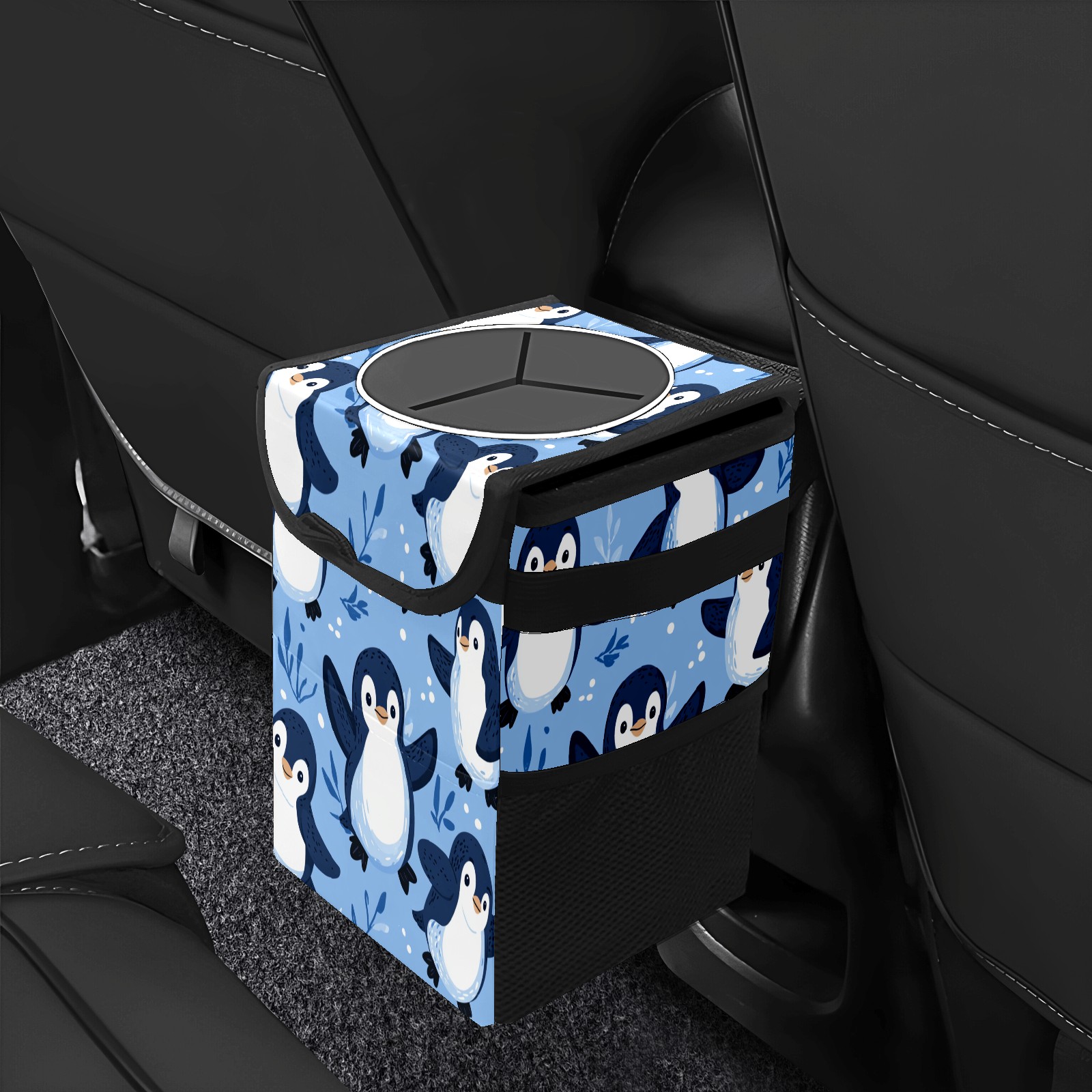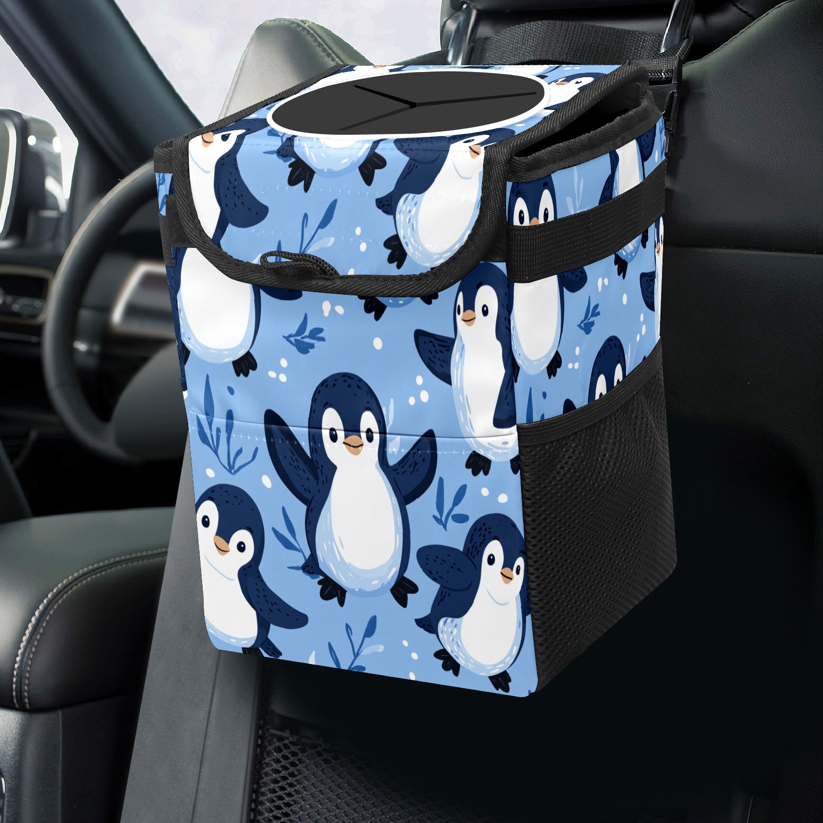 Car Garbage Can — Multi-functional, Lightweight Portable, Reusable Vehicle Trash Can, Waterproof with Sufficient Storage Capacity Cute Penguins