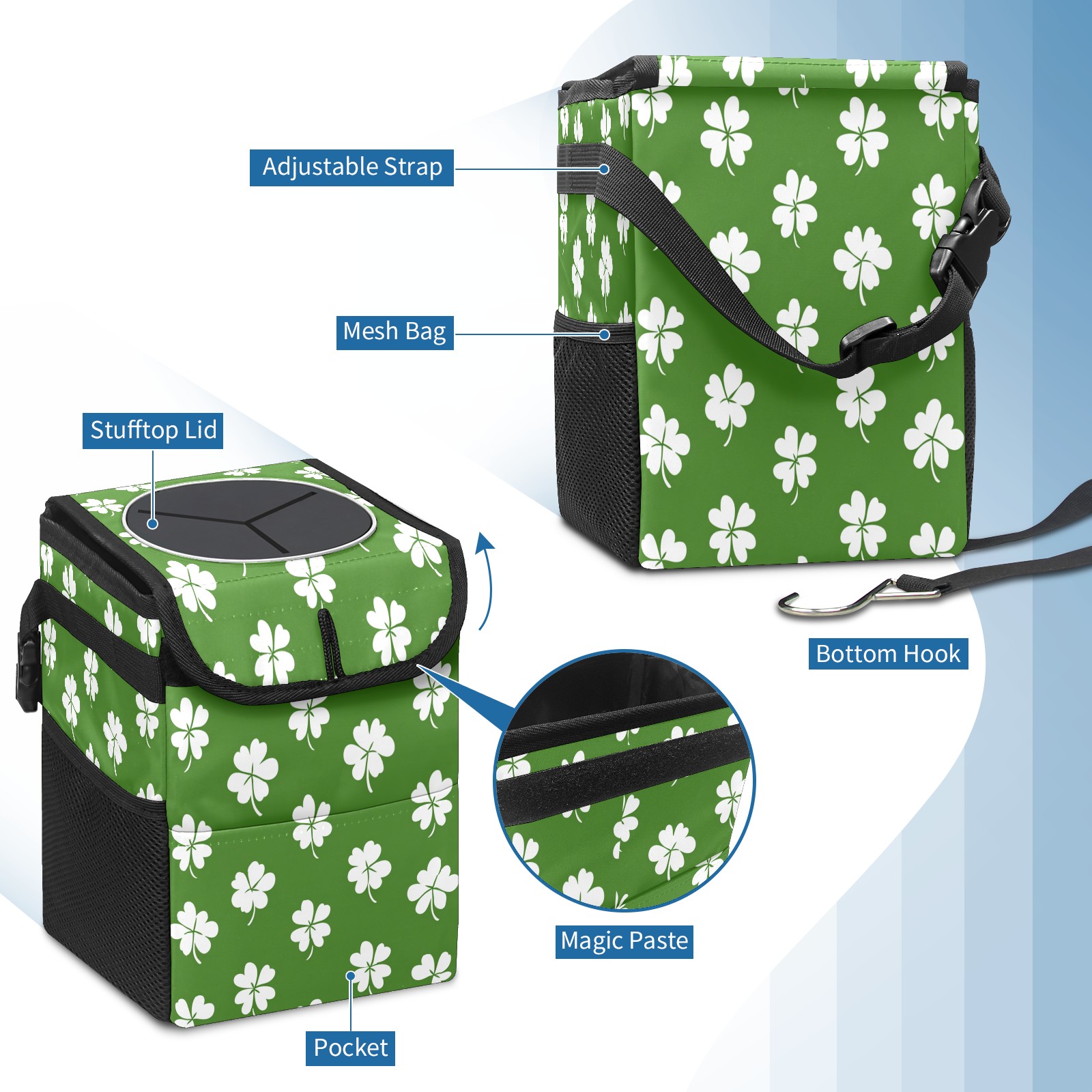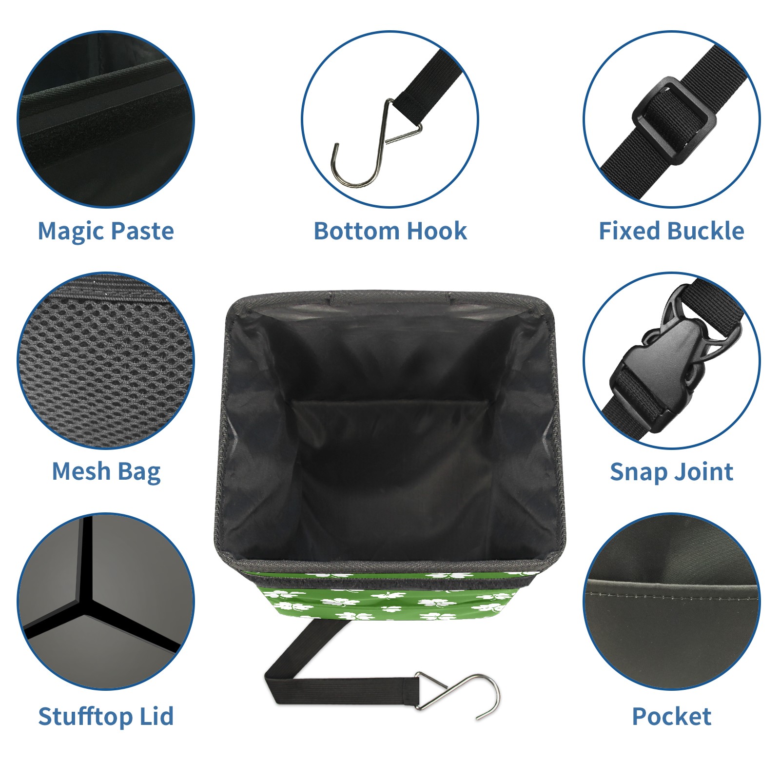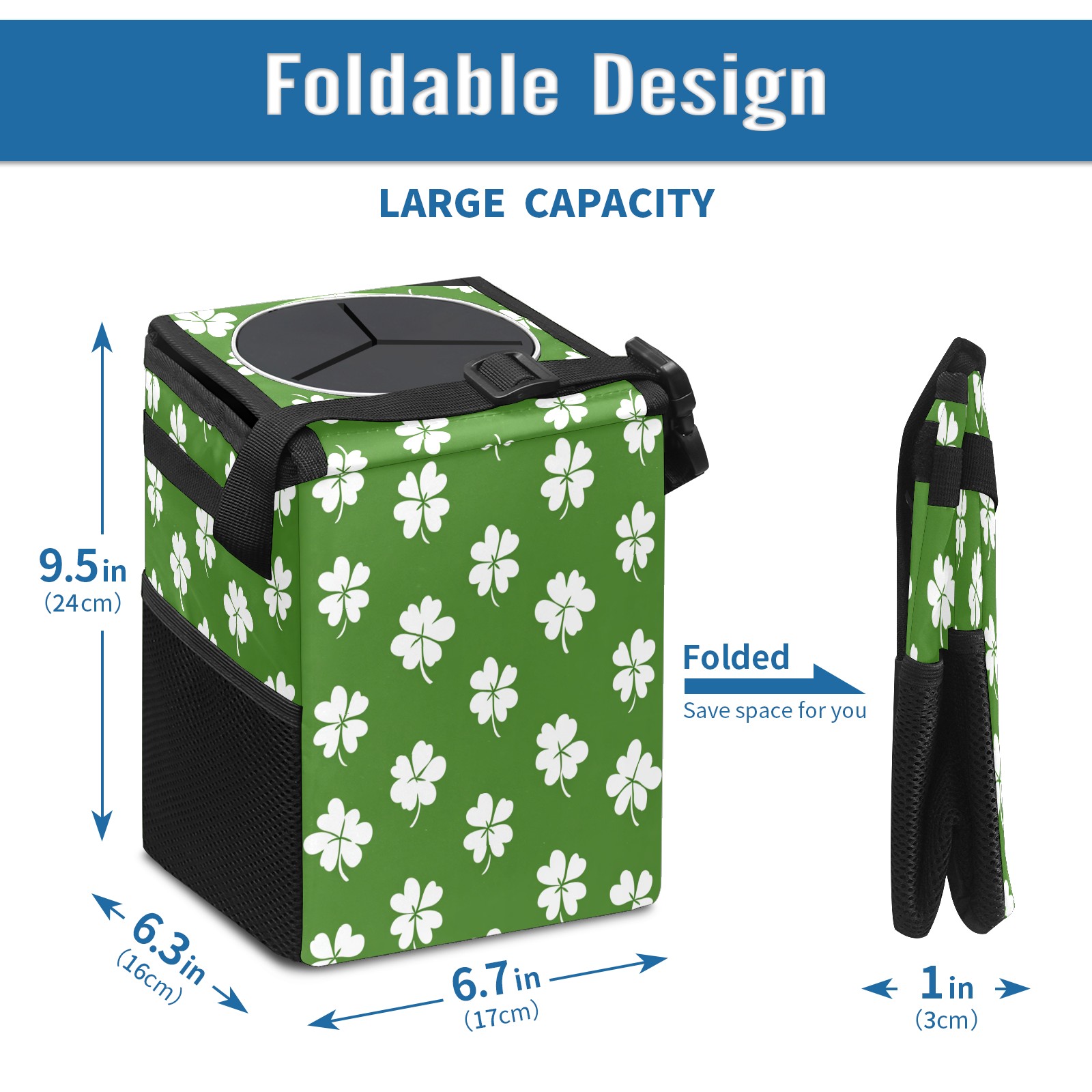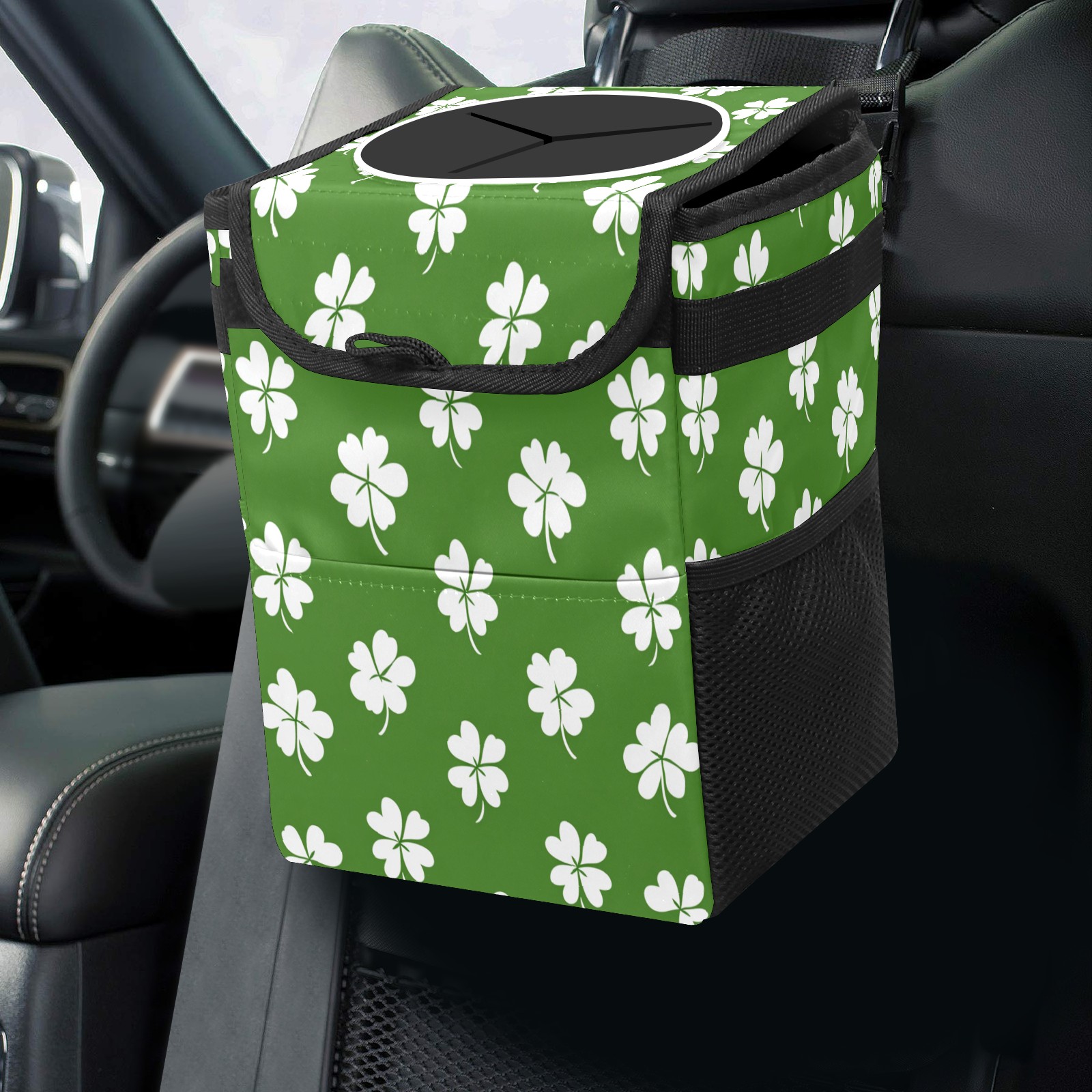 Car Garbage Can — Multi-functional, Lightweight Portable, Reusable Vehicle Trash Can, Waterproof with Sufficient Storage Capacity White Clover