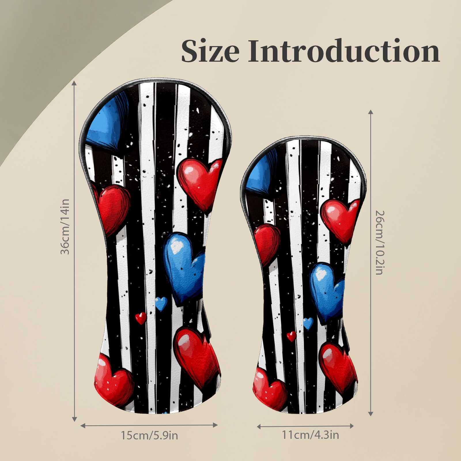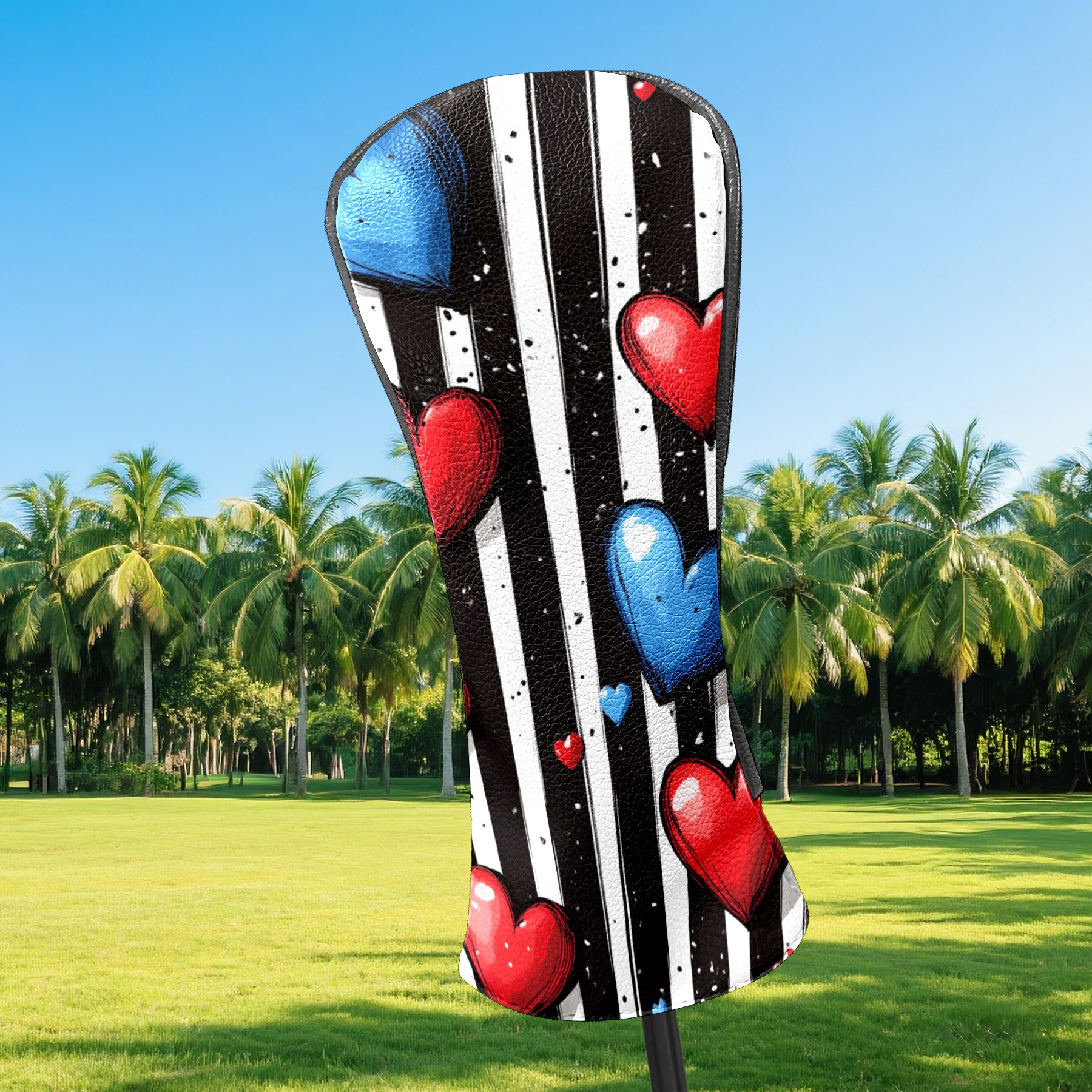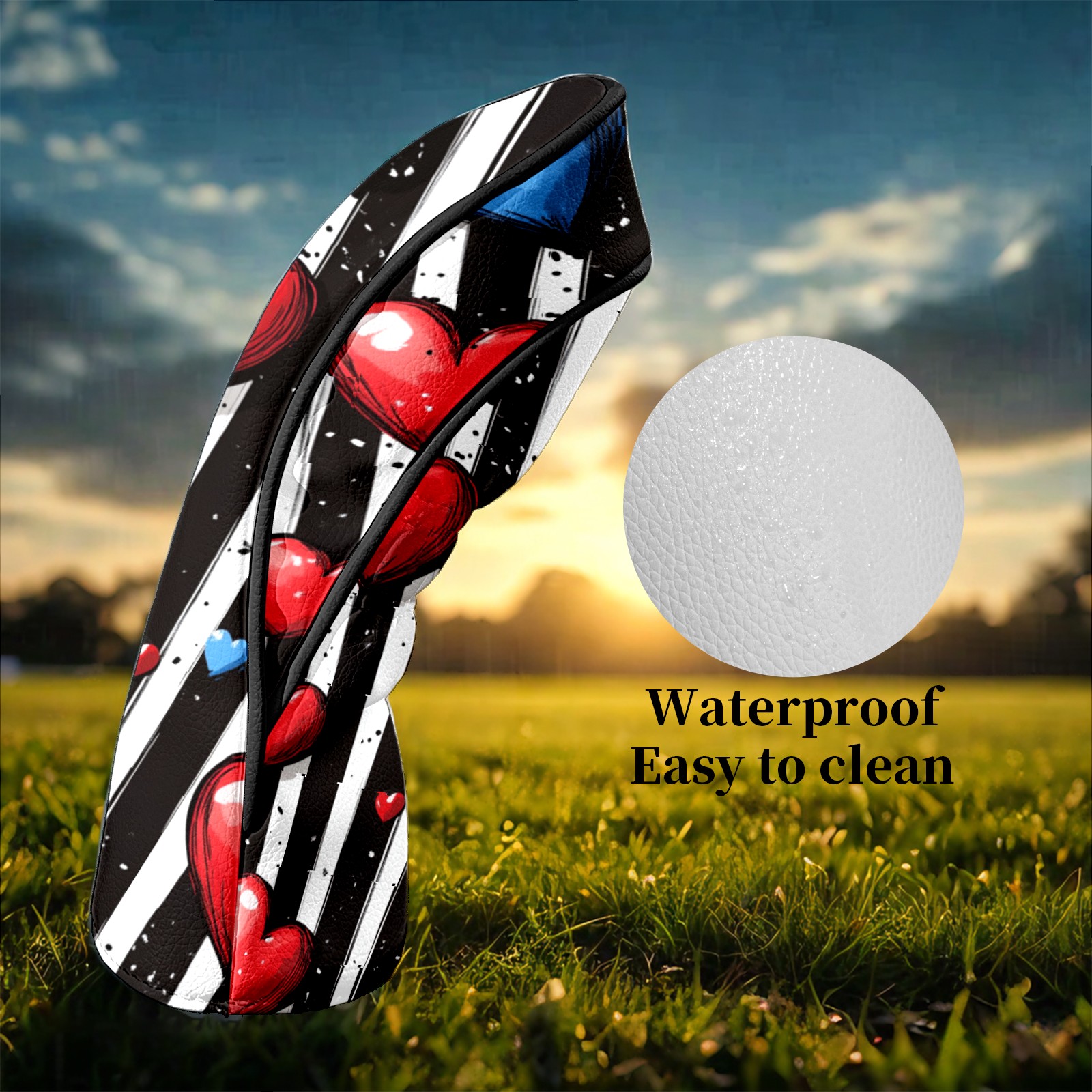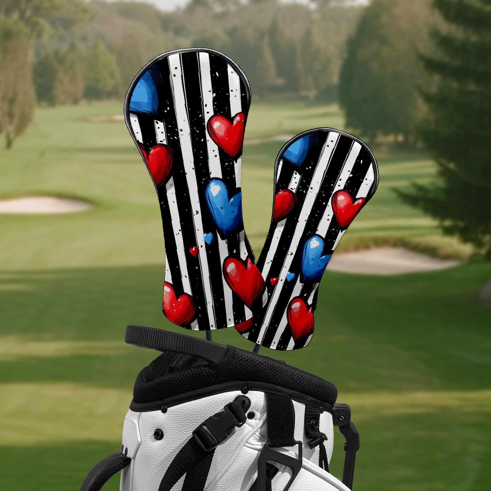 Golf Club Headcovers Waterproof PU Leather, Hearts Pattern Design for Driver Fairway Woods Headcover, Inspired Gifts for Men Women