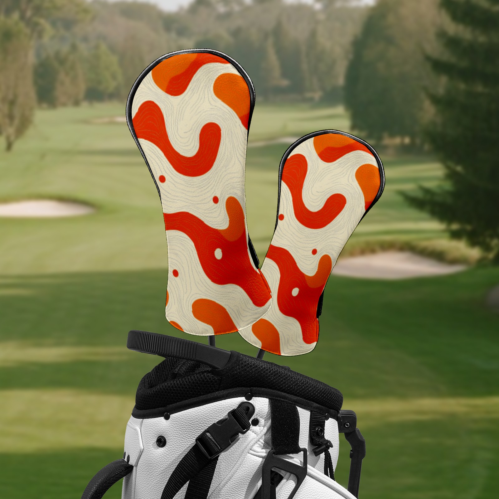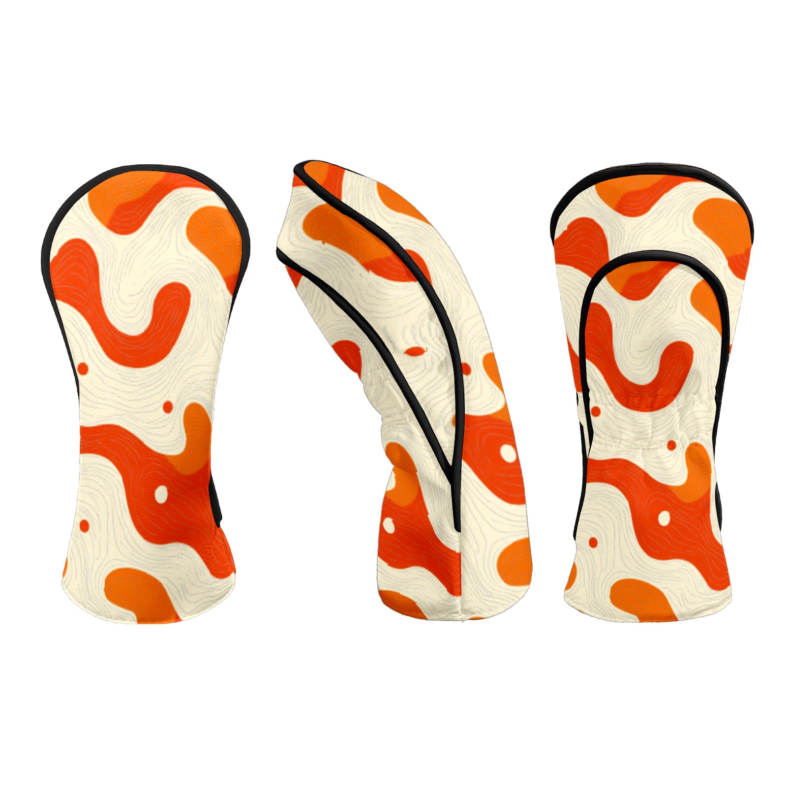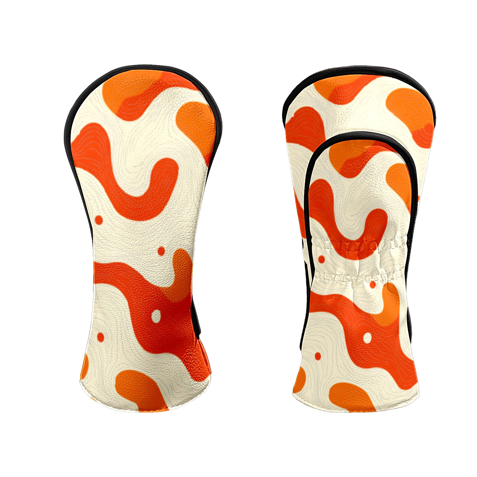 Golf Club Headcovers Waterproof PU Leather, Orange Curves Pattern Design for Driver Fairway Woods Headcover, Inspired Gifts for Men Women