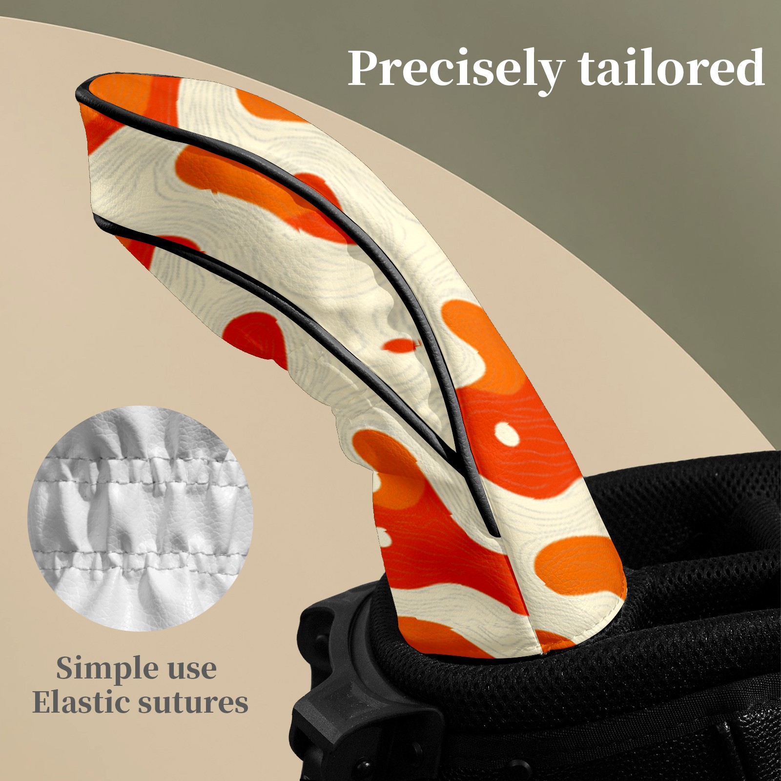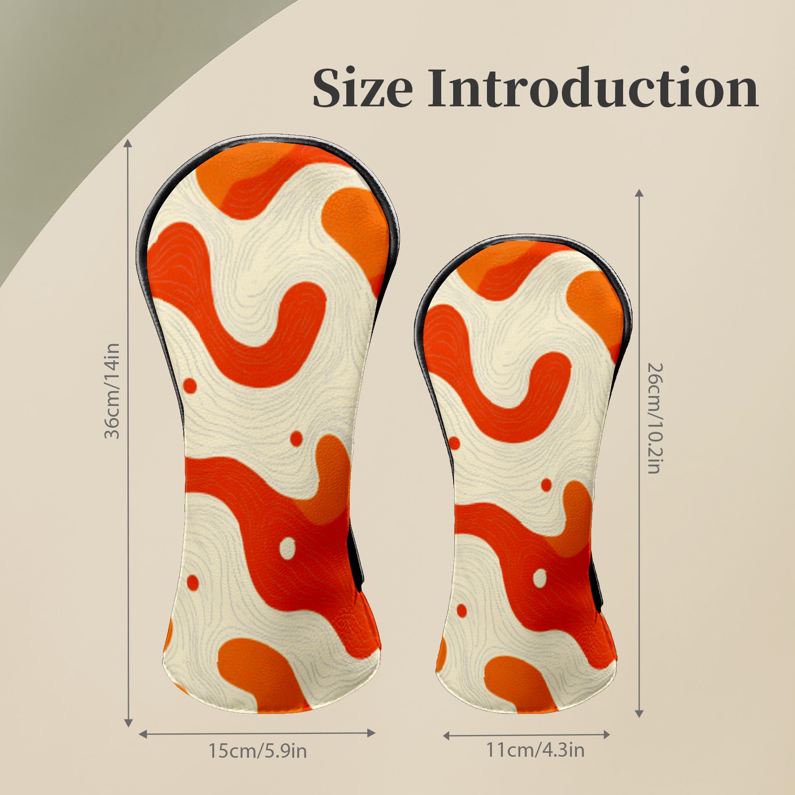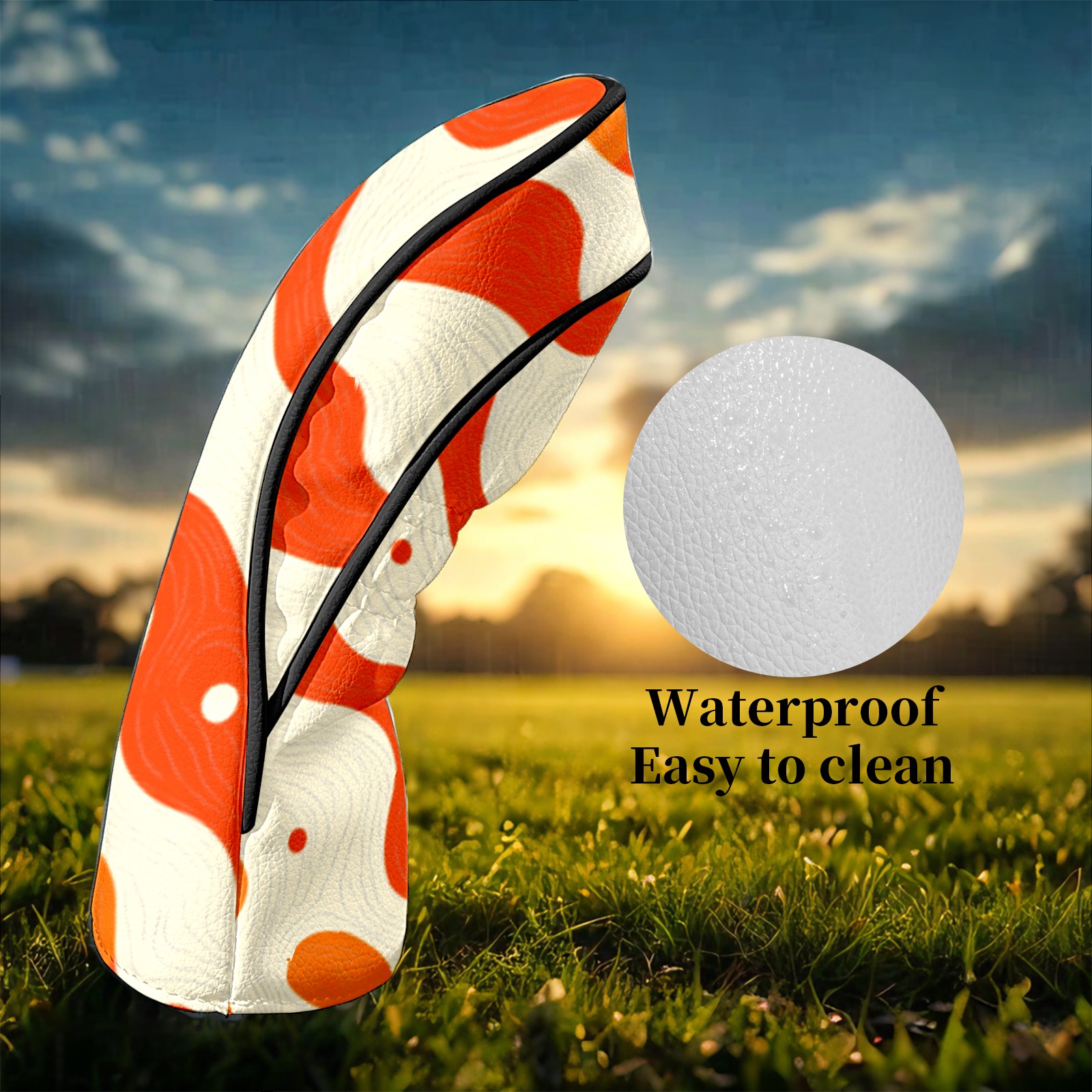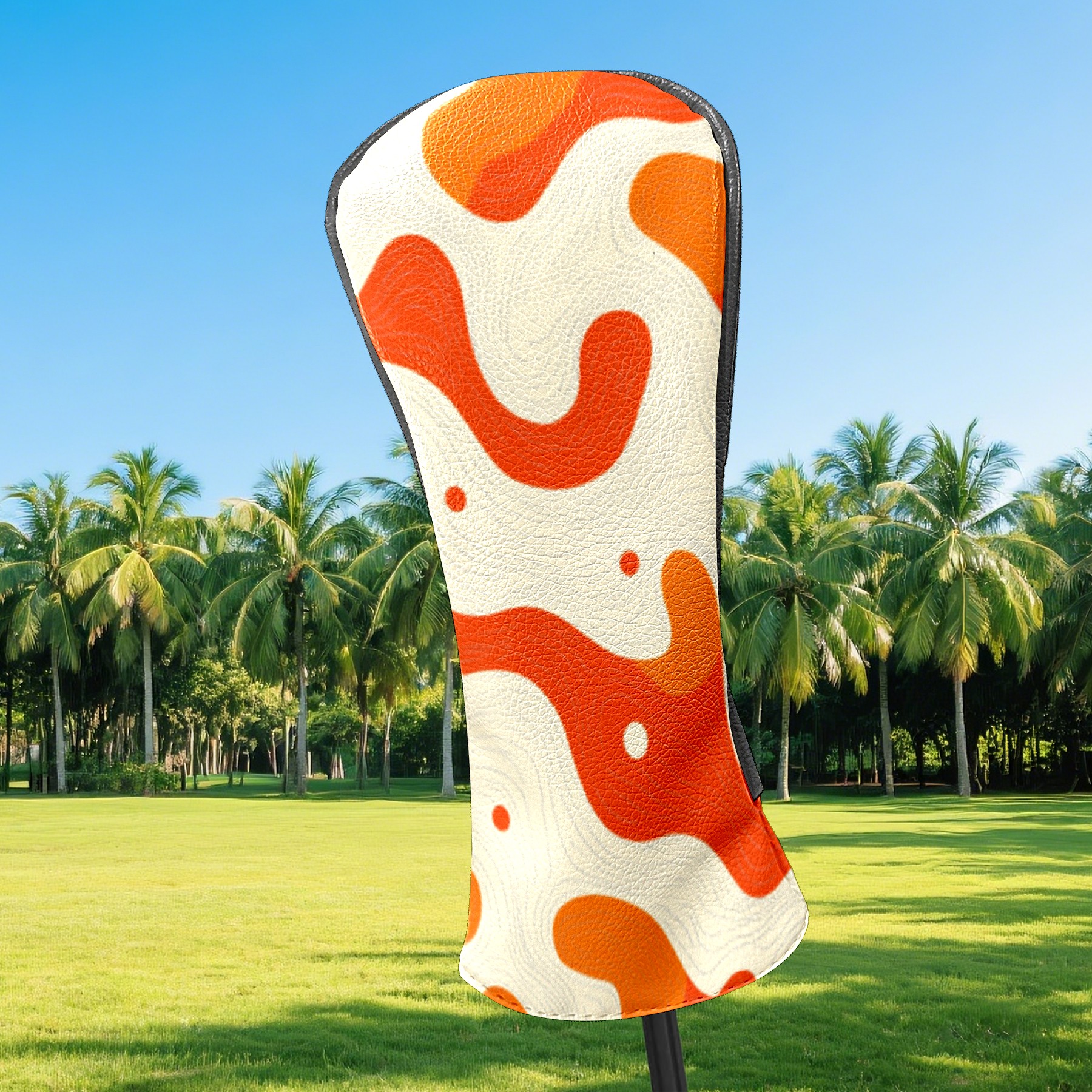 Golf Club Headcovers Waterproof PU Leather, Orange Curves Pattern Design for Driver Fairway Woods Headcover, Inspired Gifts for Men Women