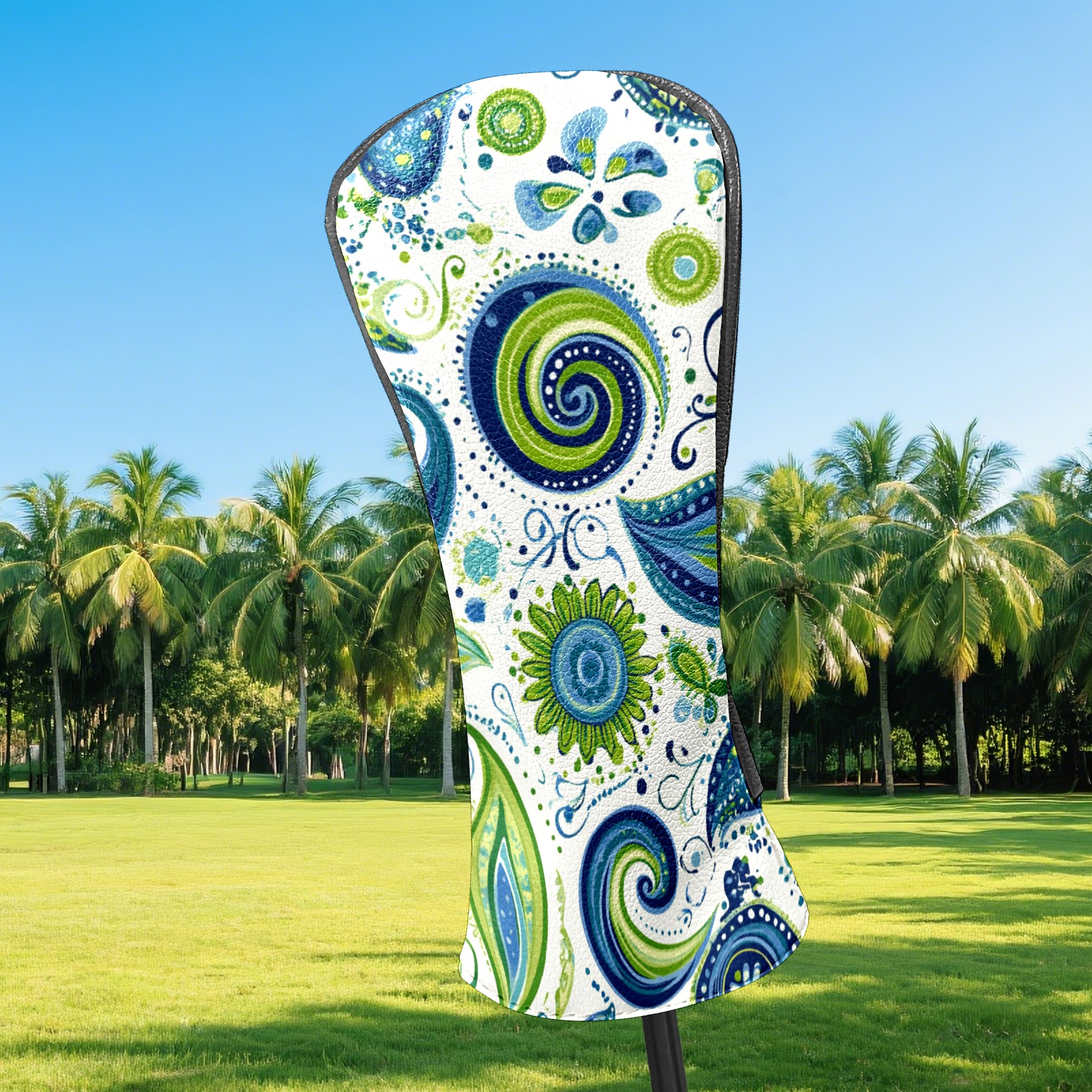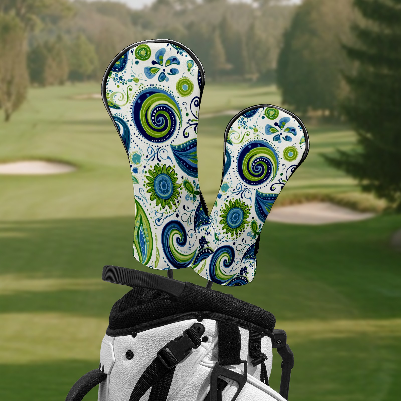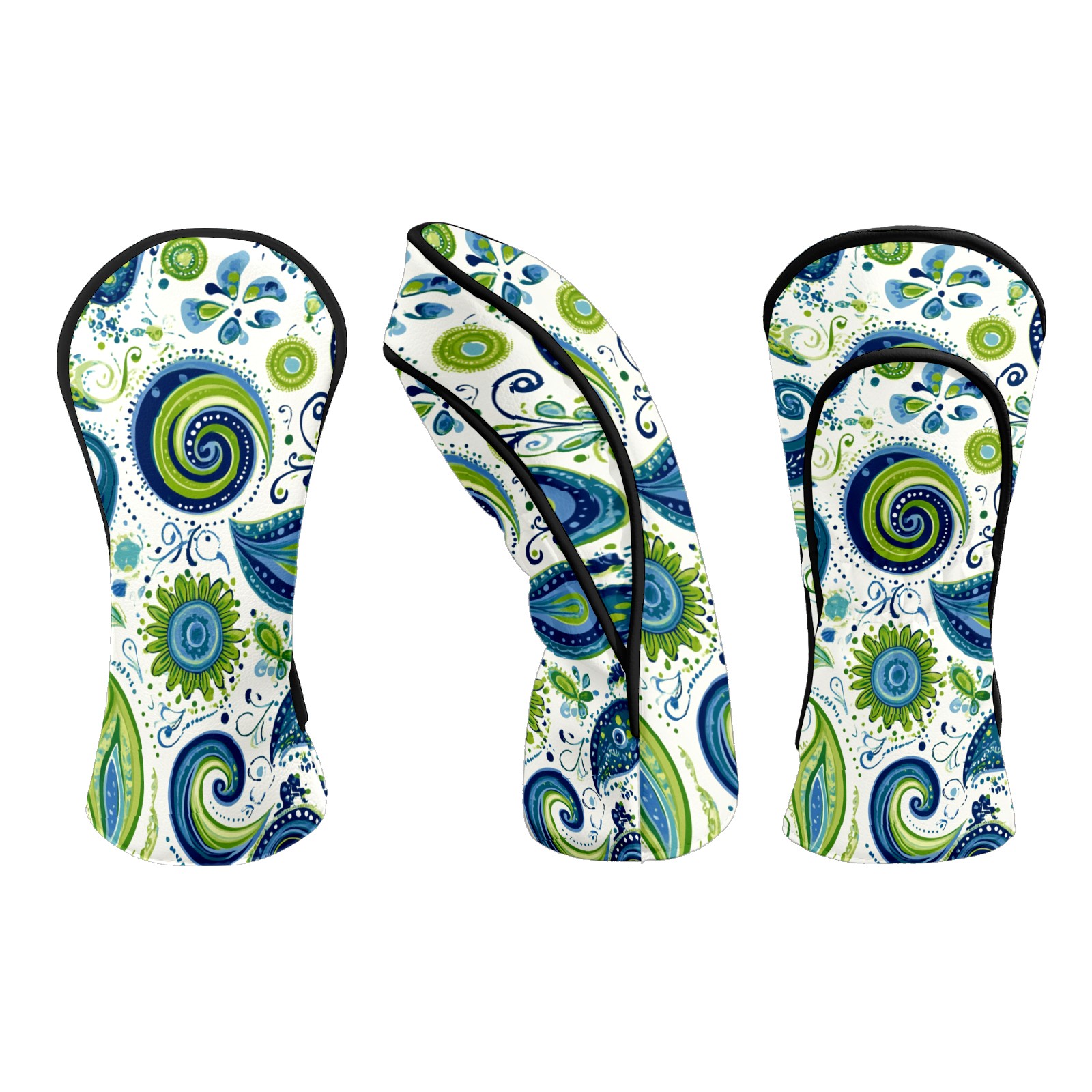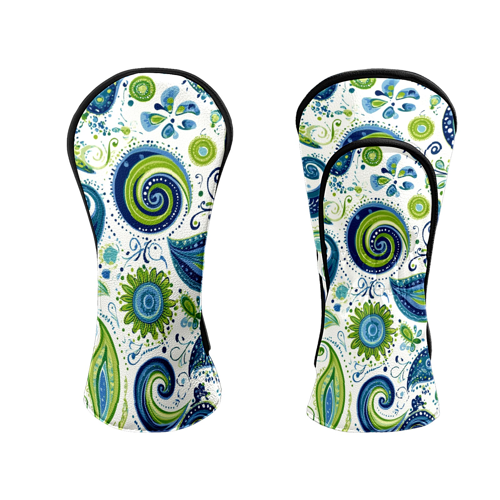 Golf Club Headcovers Waterproof PU Leather, Blue Green Swirly Paisley Pattern Design for Driver Fairway Woods Headcover, Inspired Gifts for Men Women