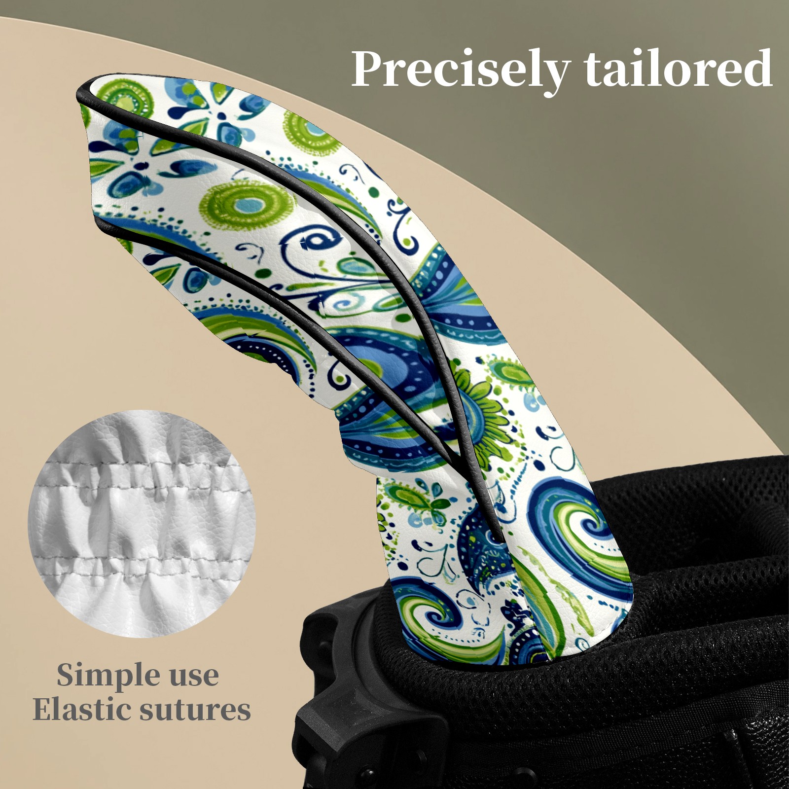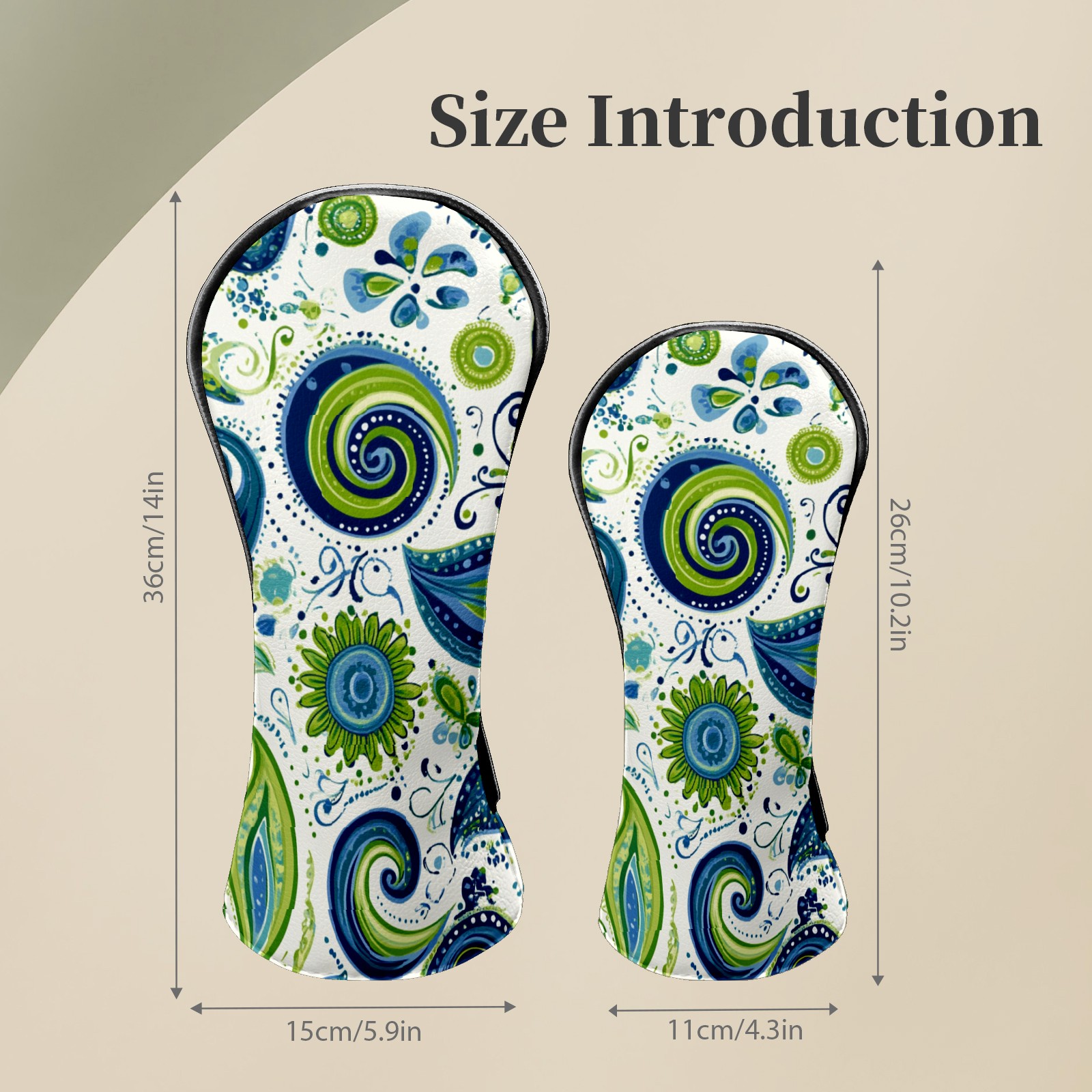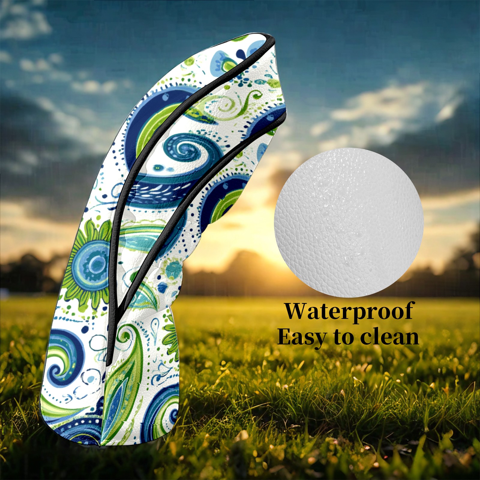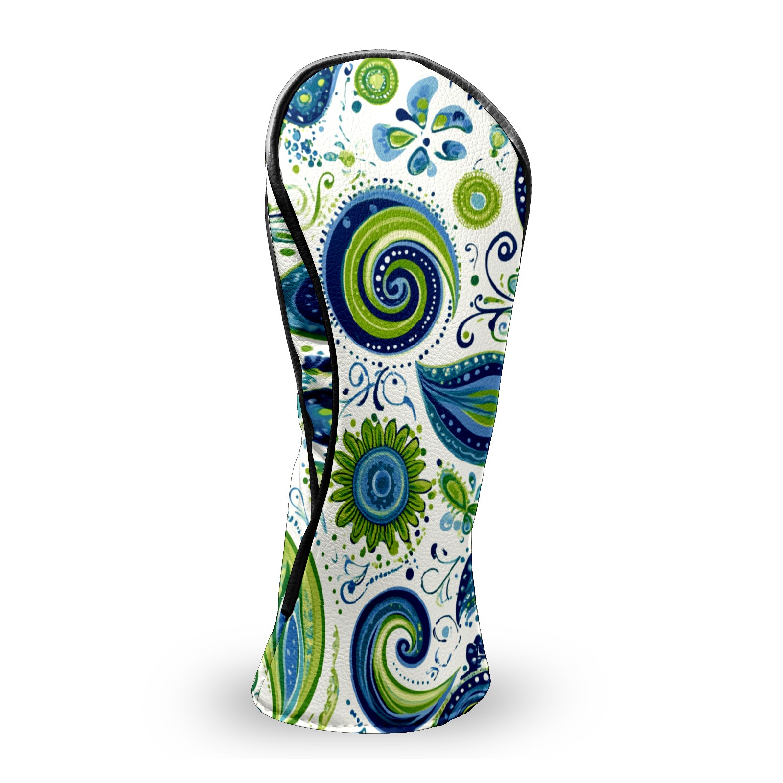 Golf Club Headcovers Waterproof PU Leather, Blue Green Swirly Paisley Pattern Design for Driver Fairway Woods Headcover, Inspired Gifts for Men Women