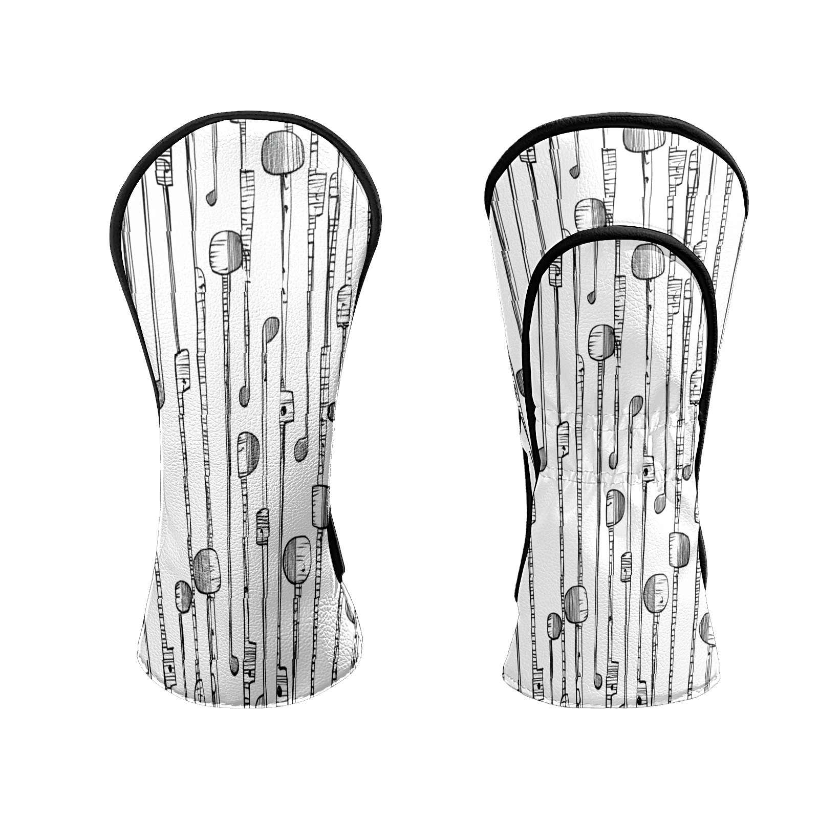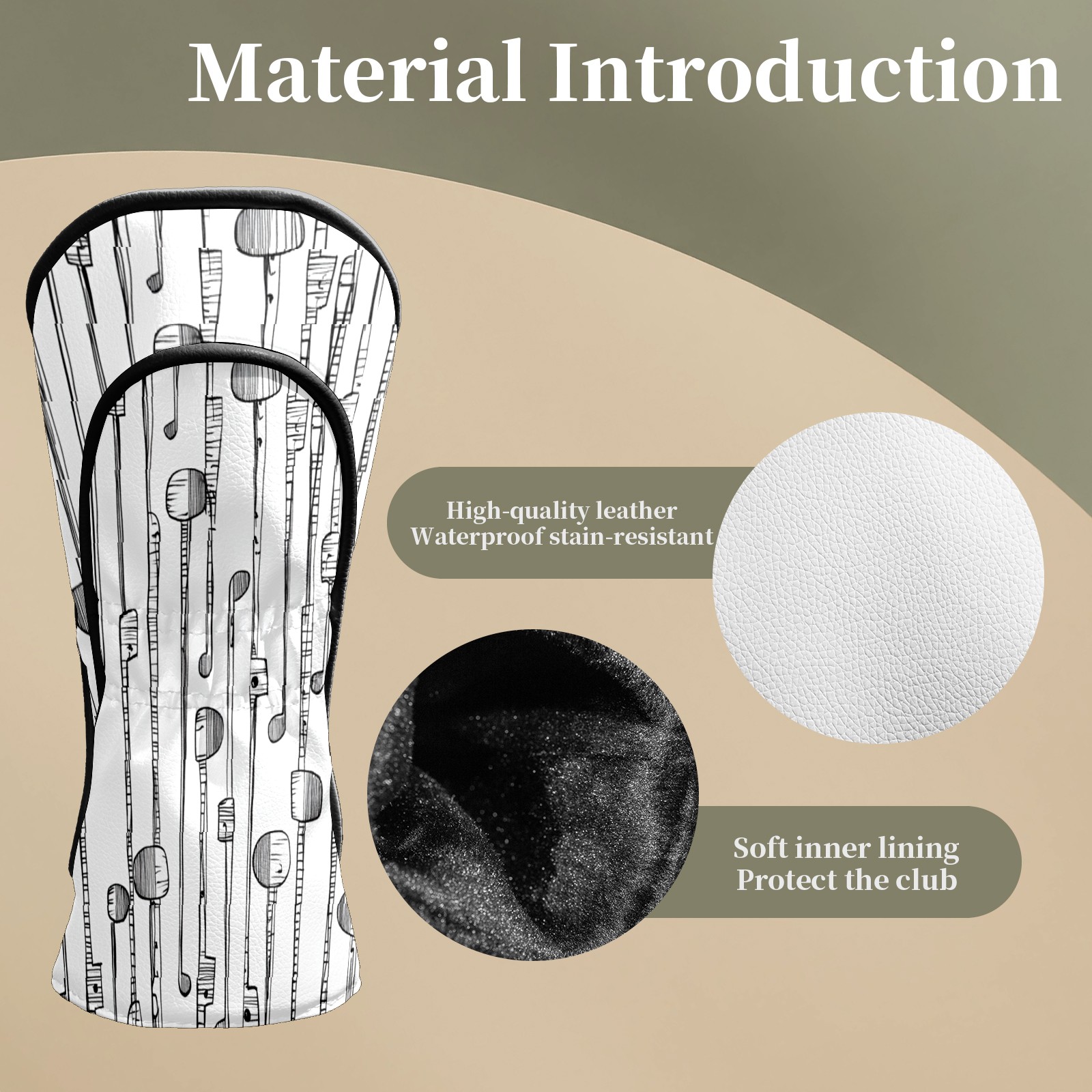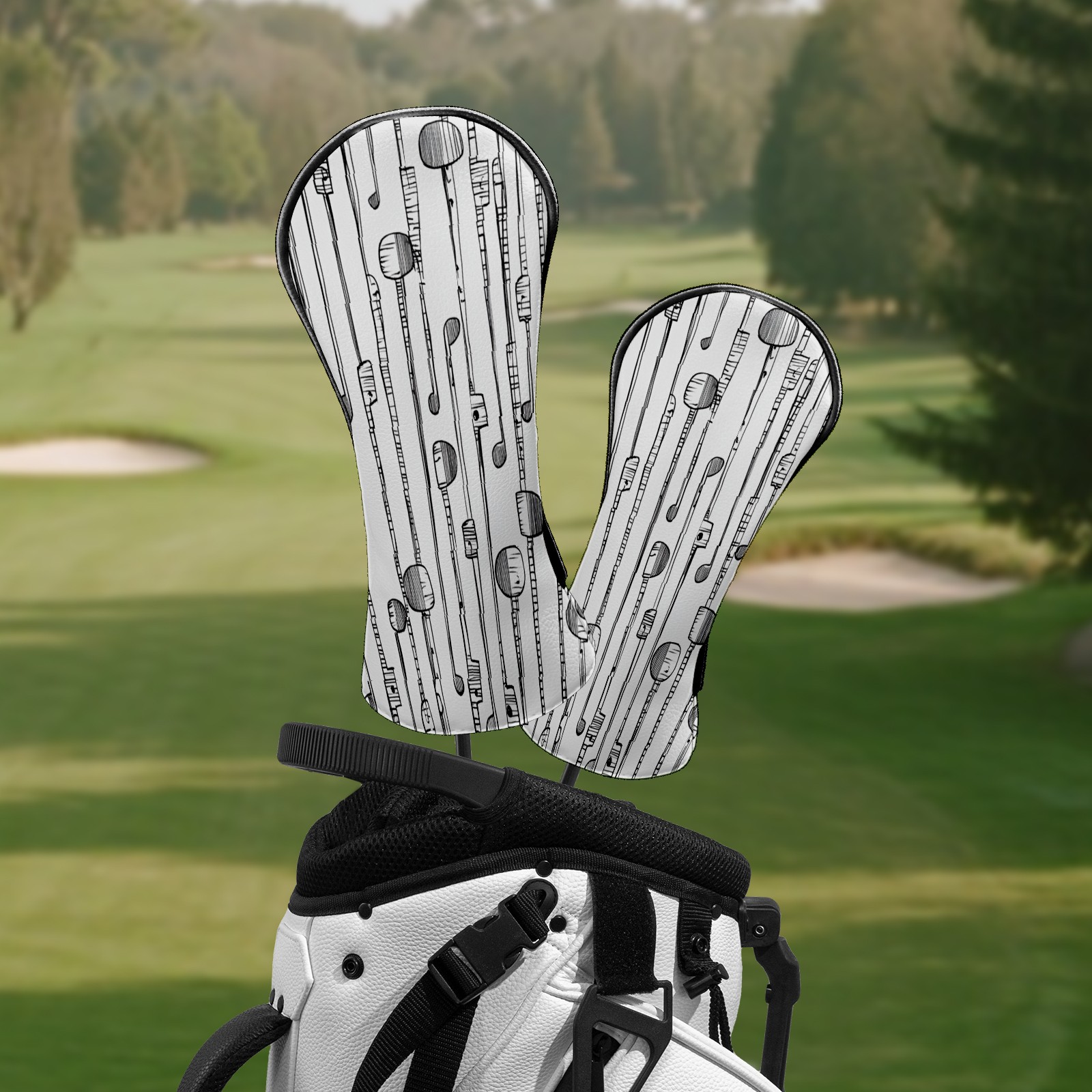 Golf Club Headcovers Waterproof PU Leather, Black Golf Clubs Pattern Design for Driver Fairway Woods Headcover, Inspired Gifts for Men Women