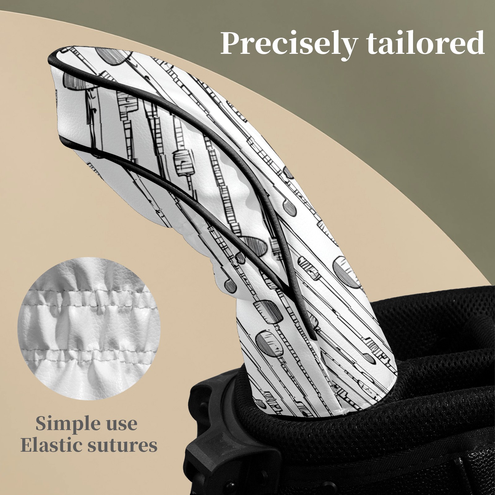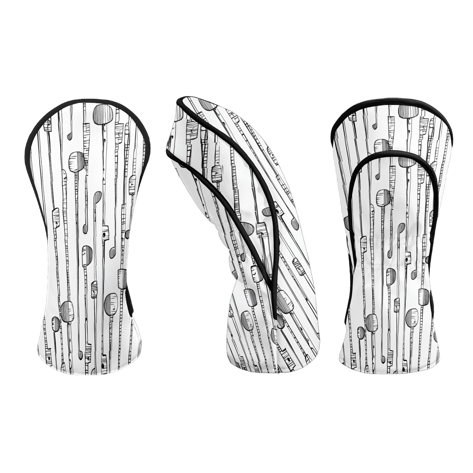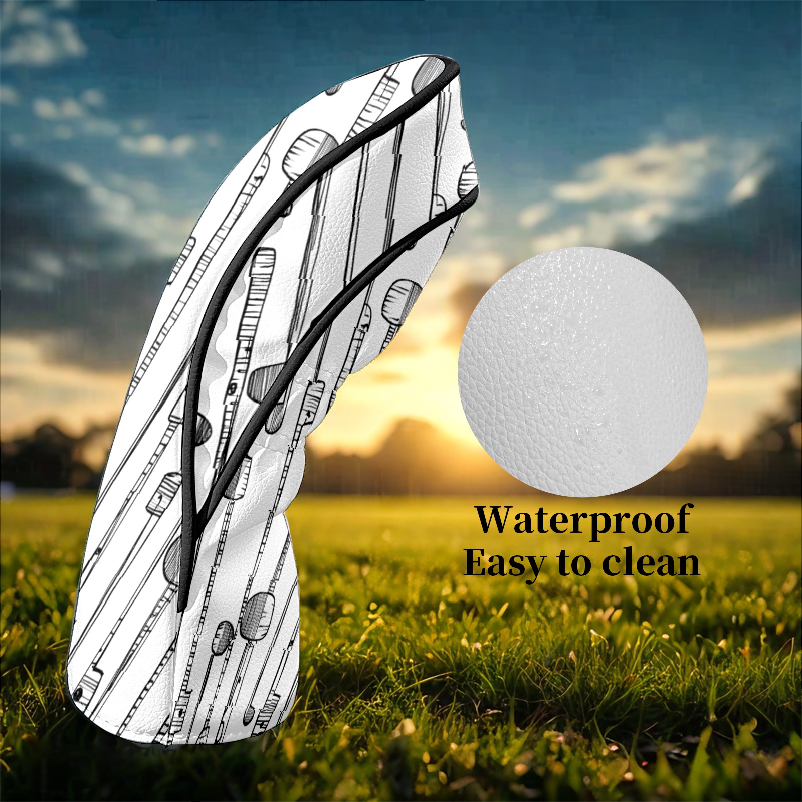 Golf Club Headcovers Waterproof PU Leather, Black Golf Clubs Pattern Design for Driver Fairway Woods Headcover, Inspired Gifts for Men Women