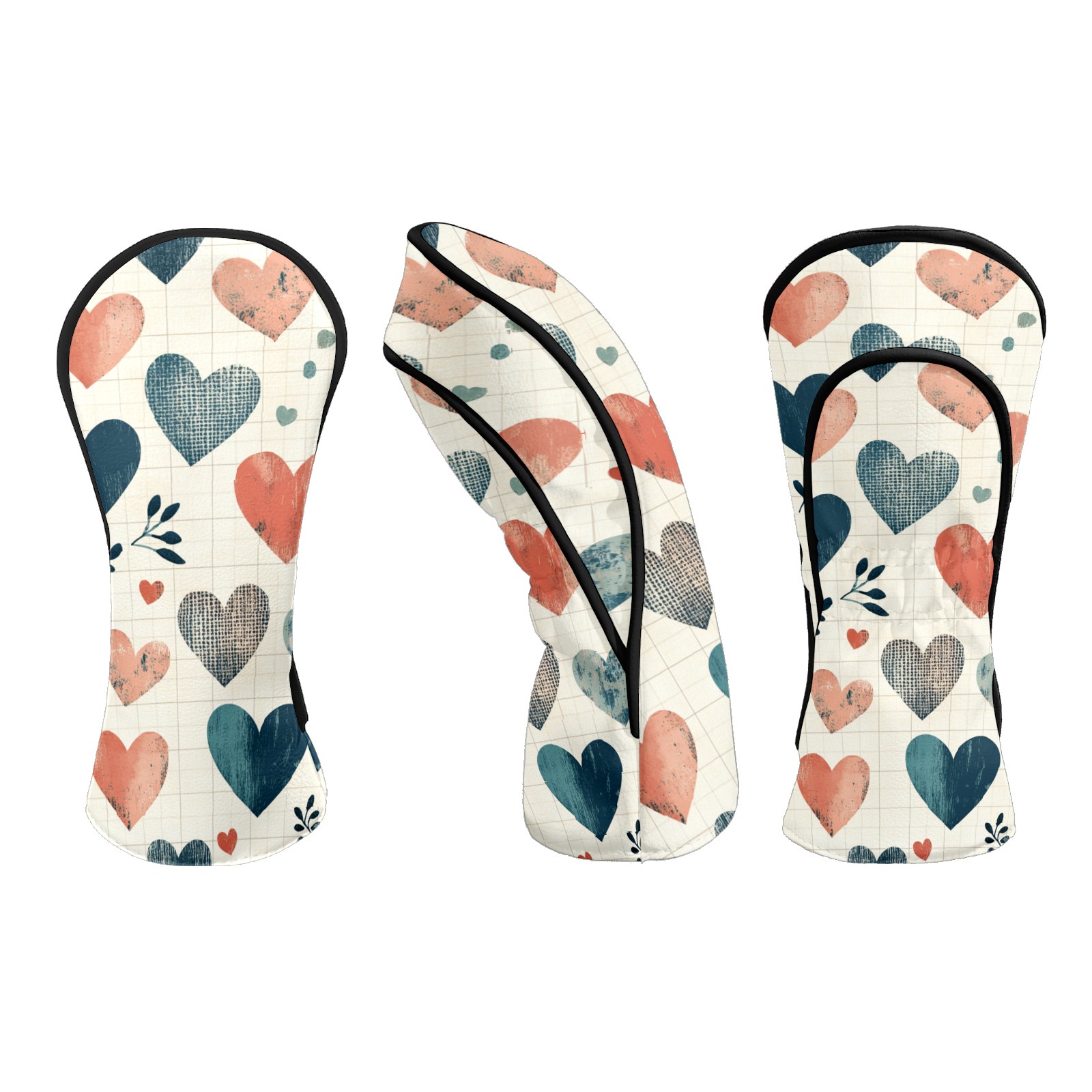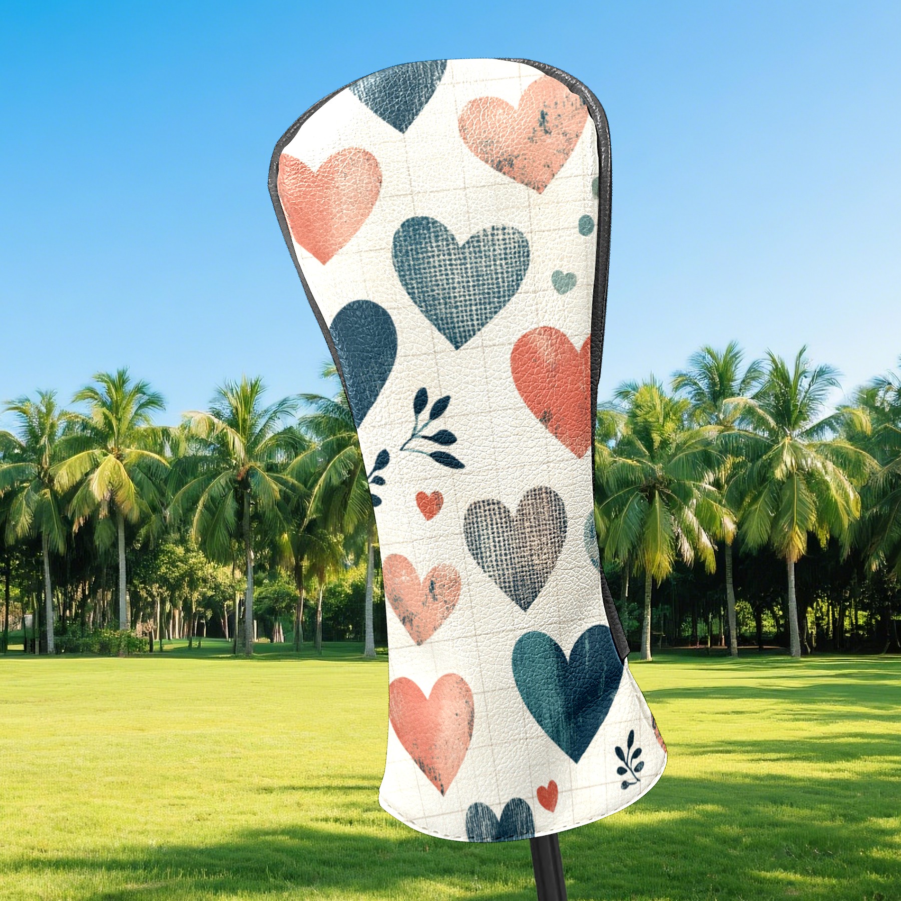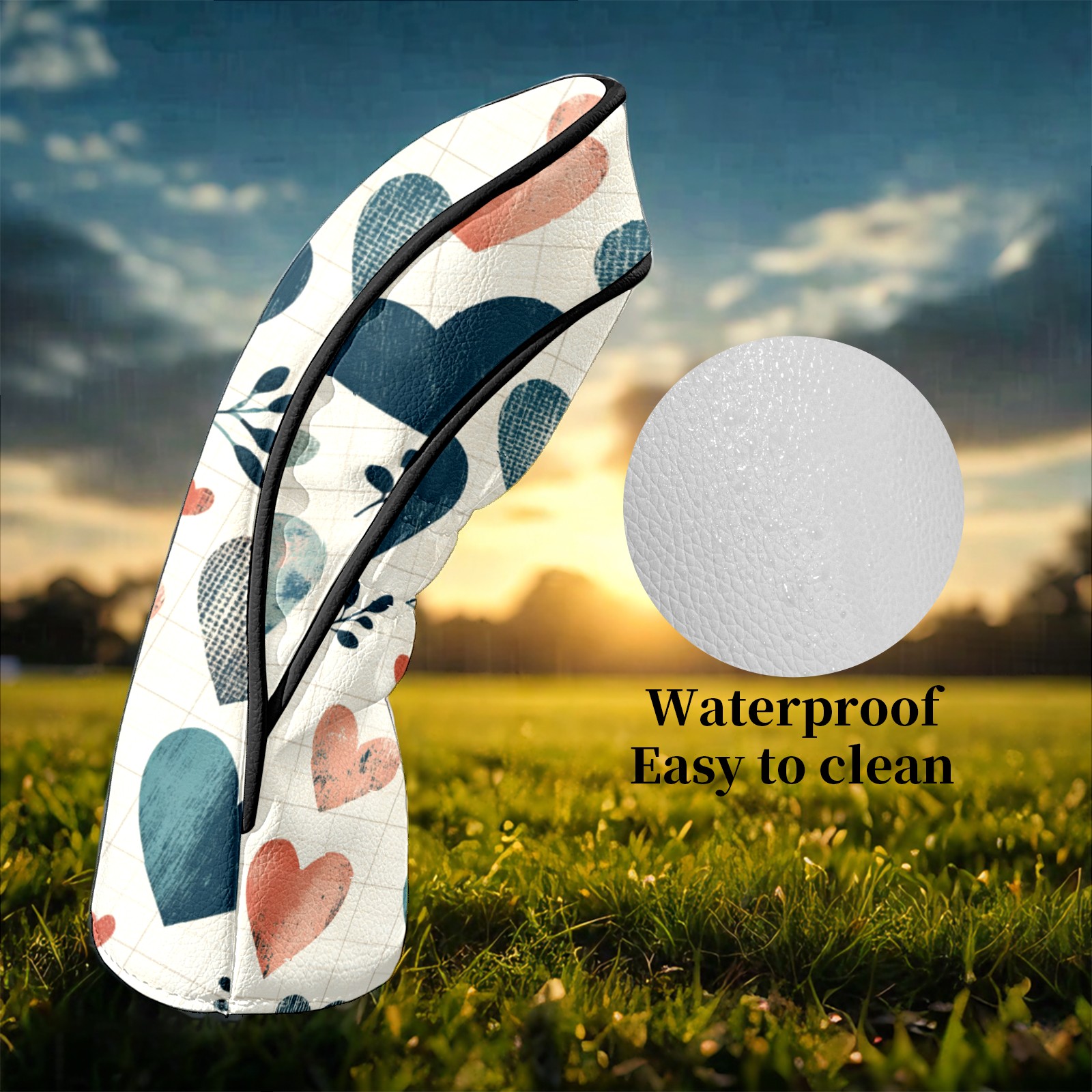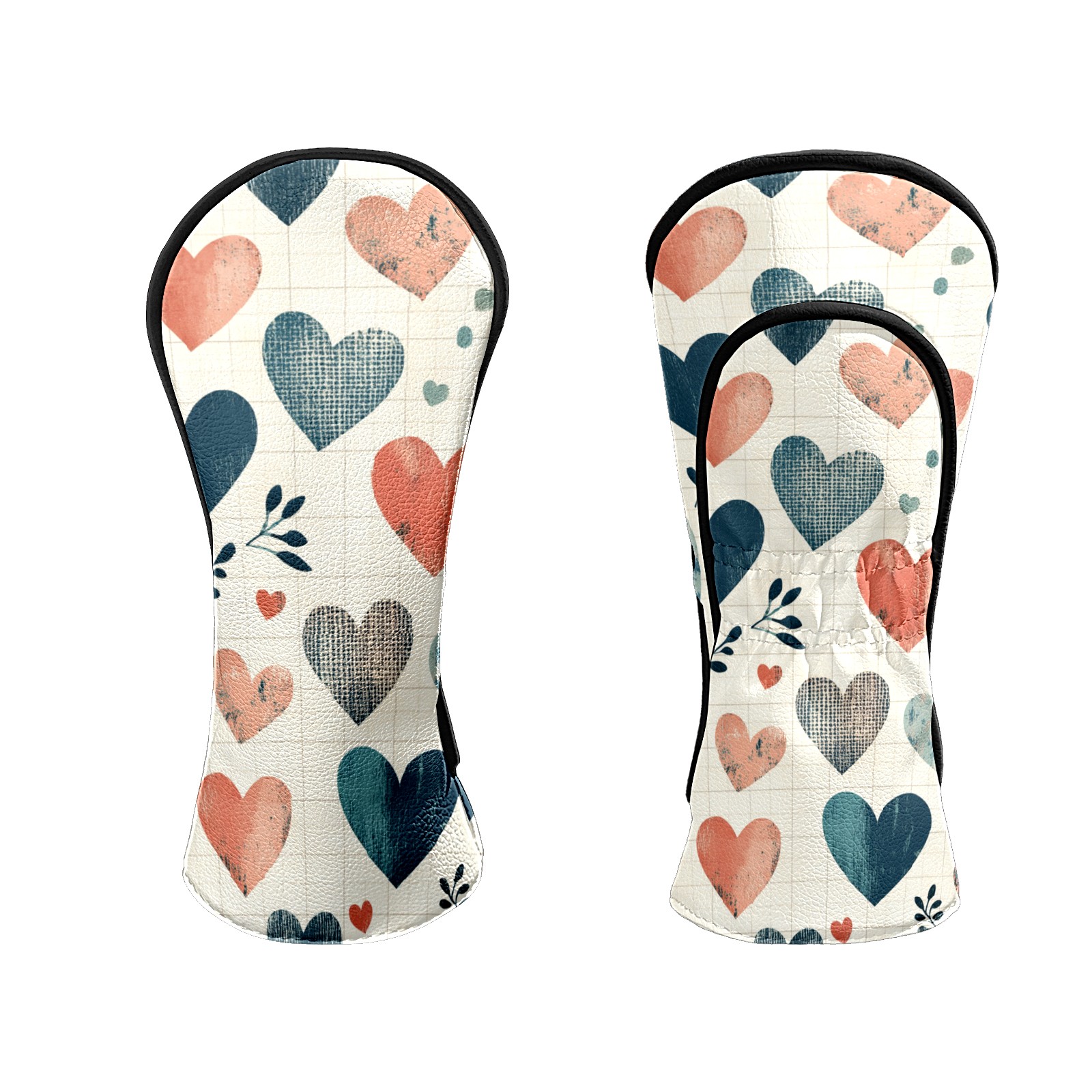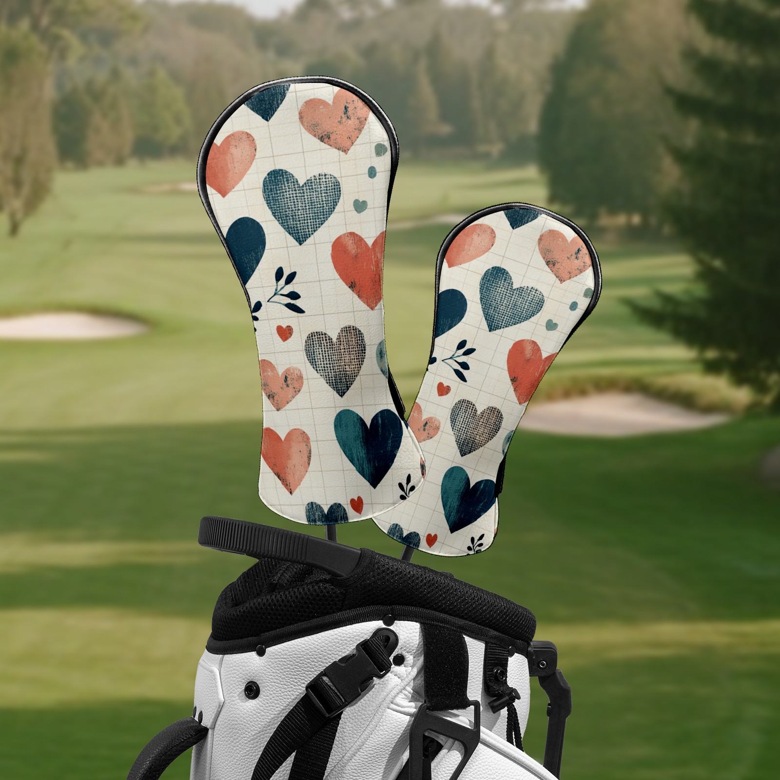 Golf Club Headcovers Waterproof PU Leather, Blue Hearts Pattern Design for Driver Fairway Woods Headcover, Inspired Gifts for Men Women