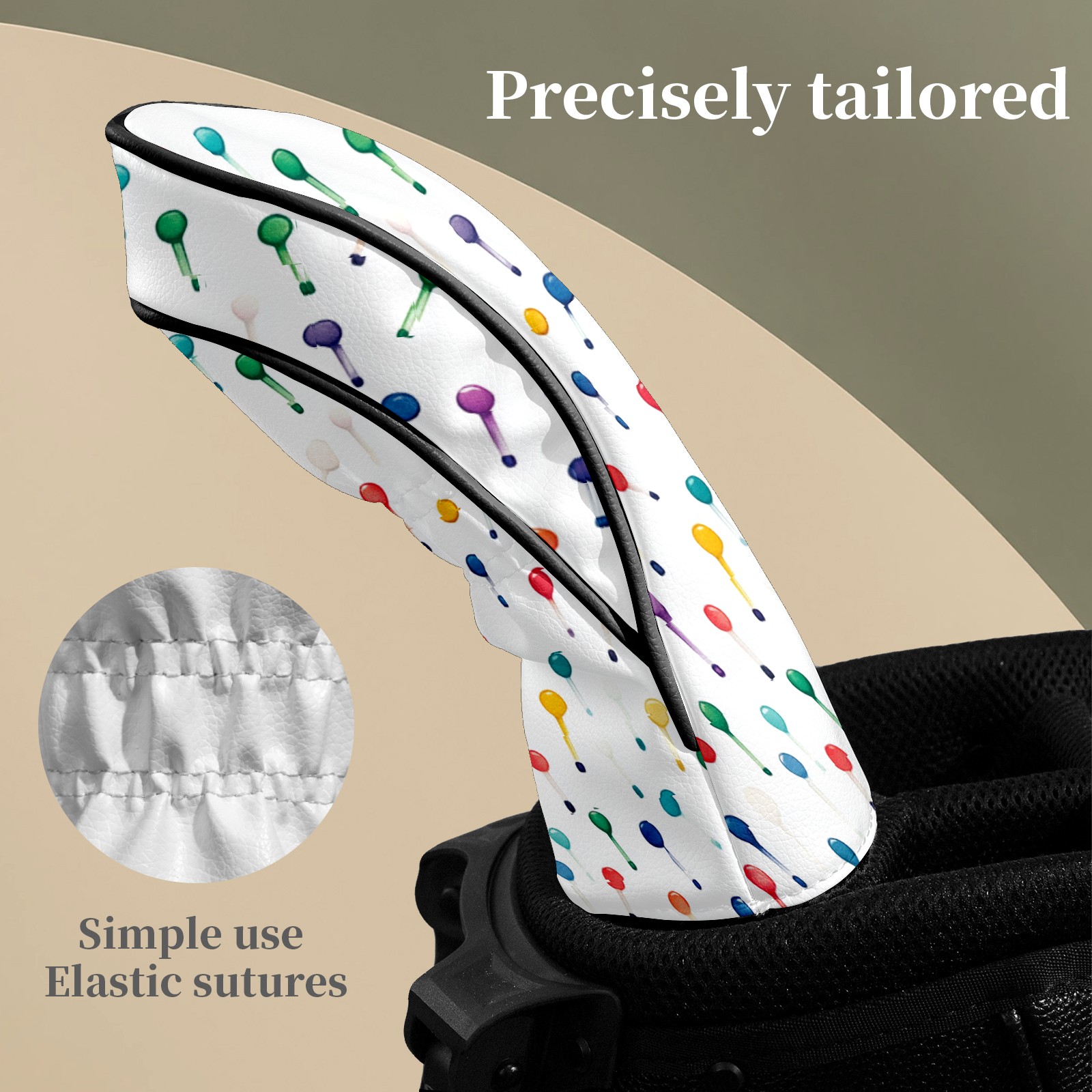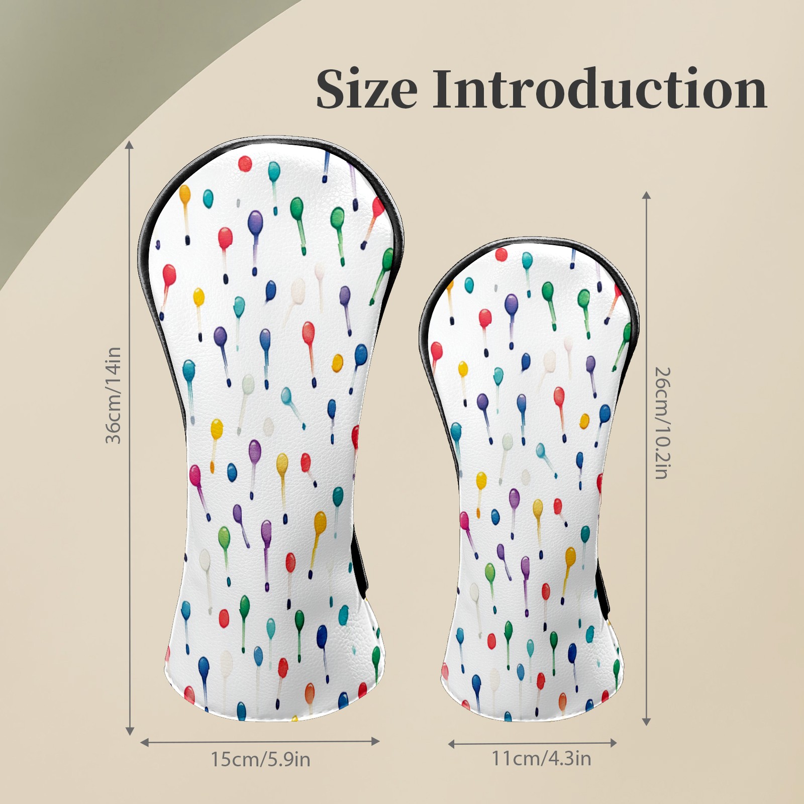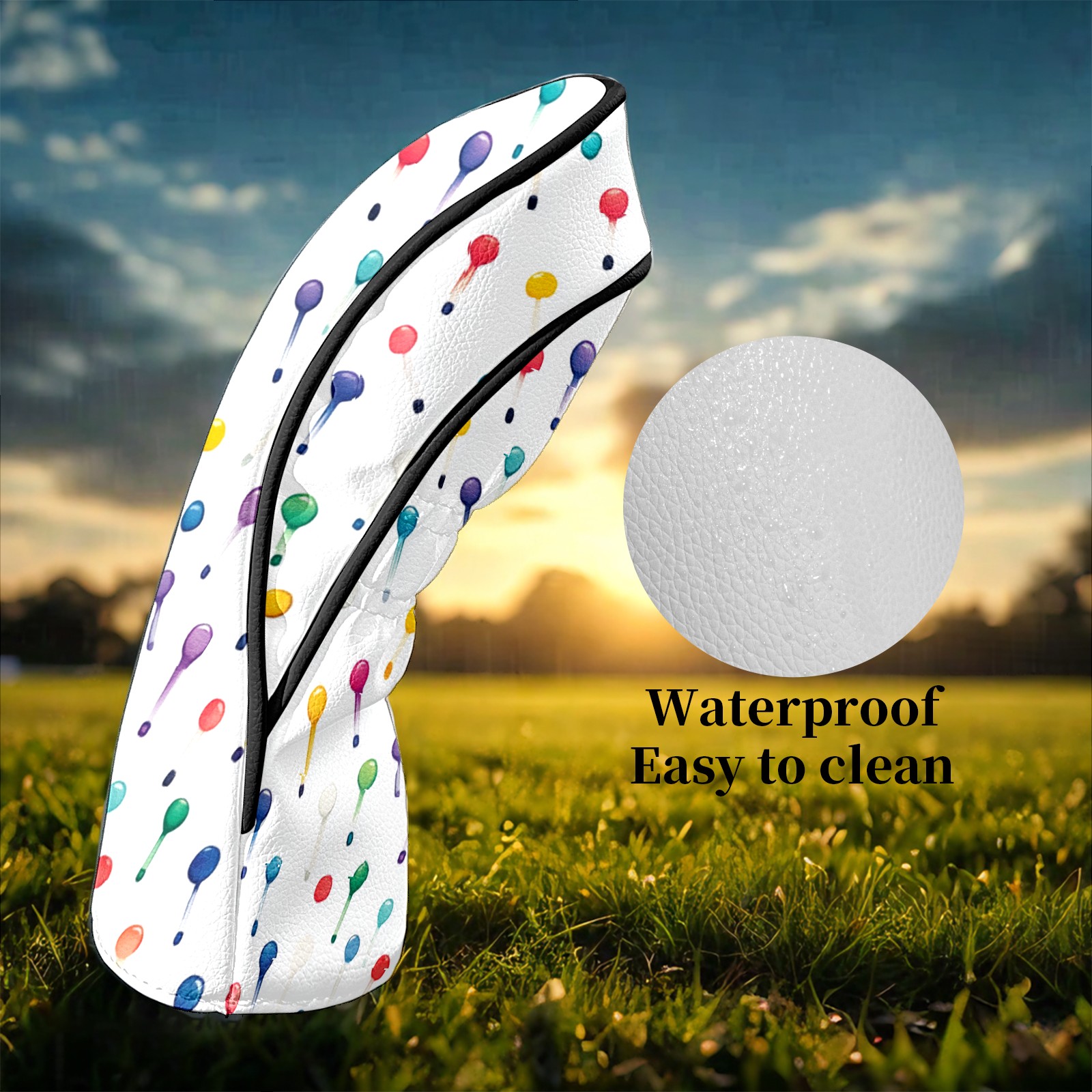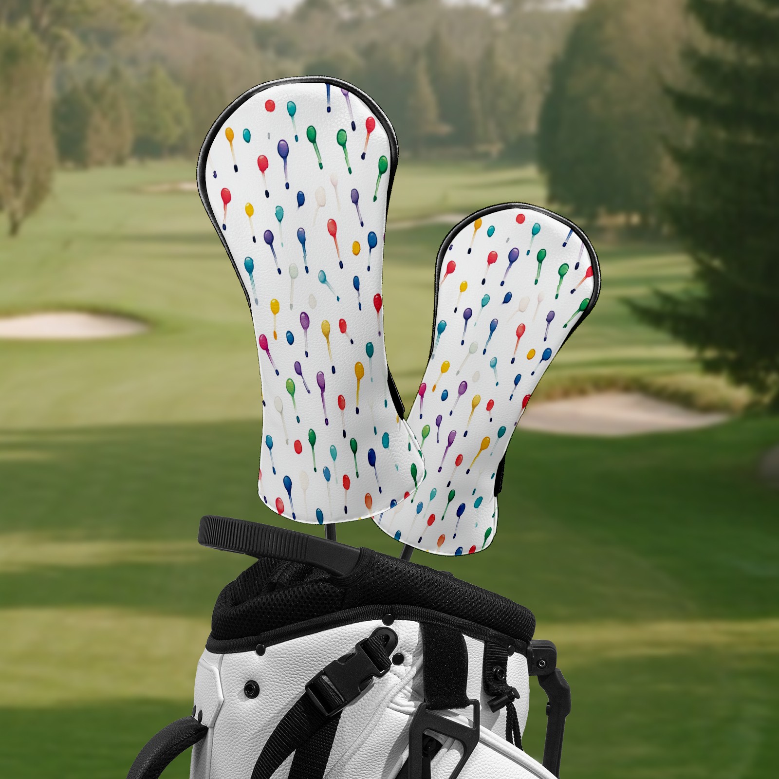 Golf Club Headcovers Waterproof PU Leather, Colorful Golf Tee Pattern Design for Driver Fairway Woods Headcover, Inspired Gifts for Men Women
