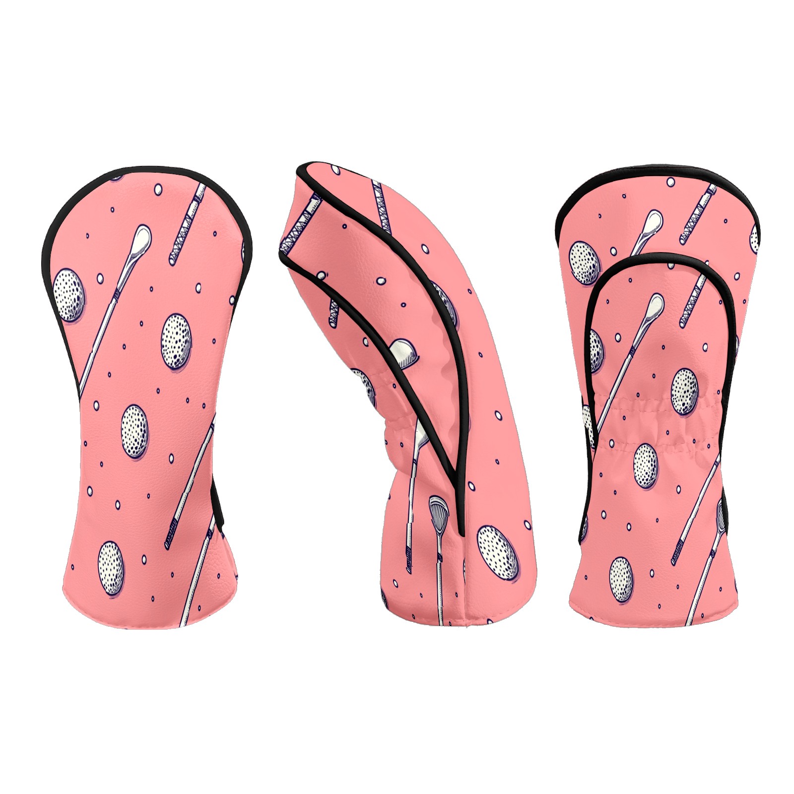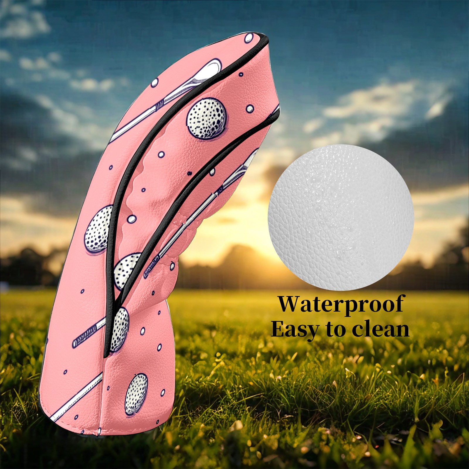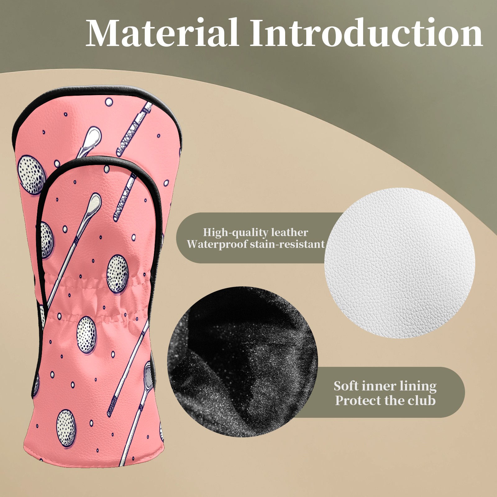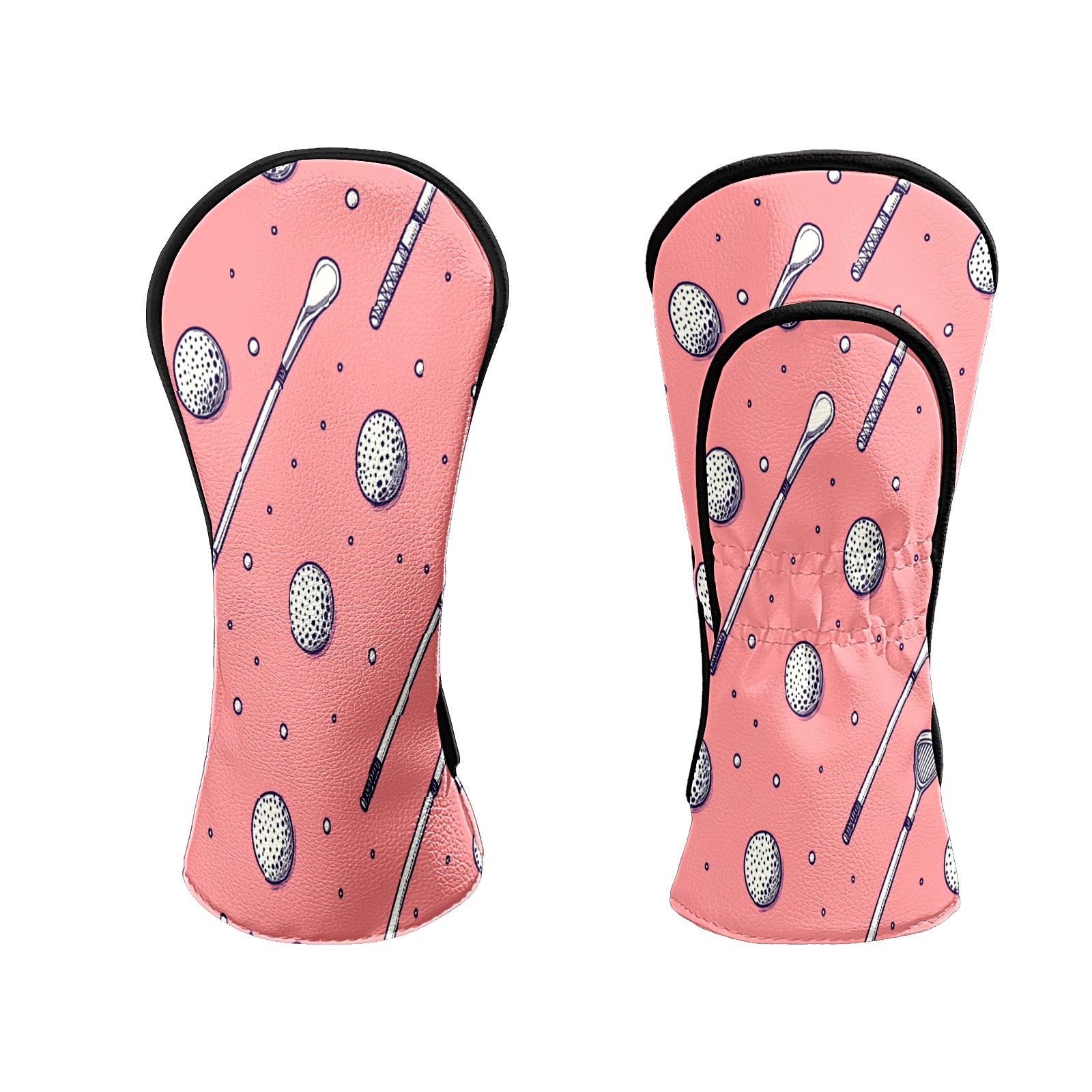 Golf Club Headcovers Waterproof PU Leather, Pink Golf Clubs Pattern Design for Driver Fairway Woods Headcover, Inspired Gifts for Men Women