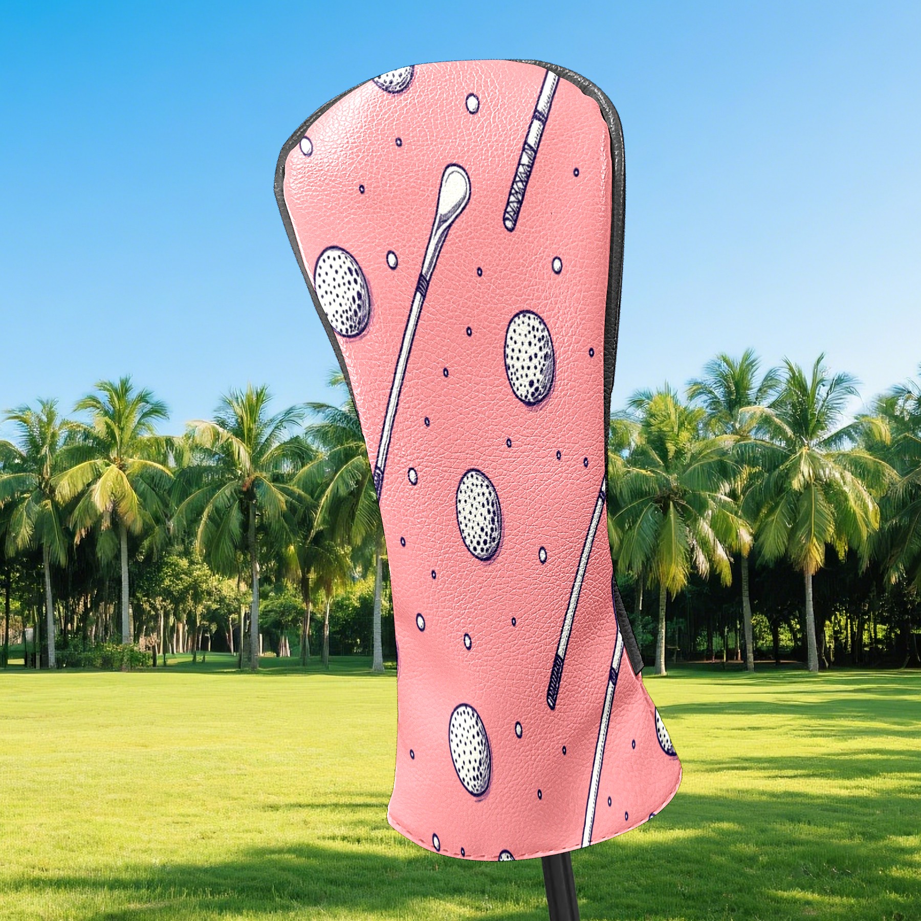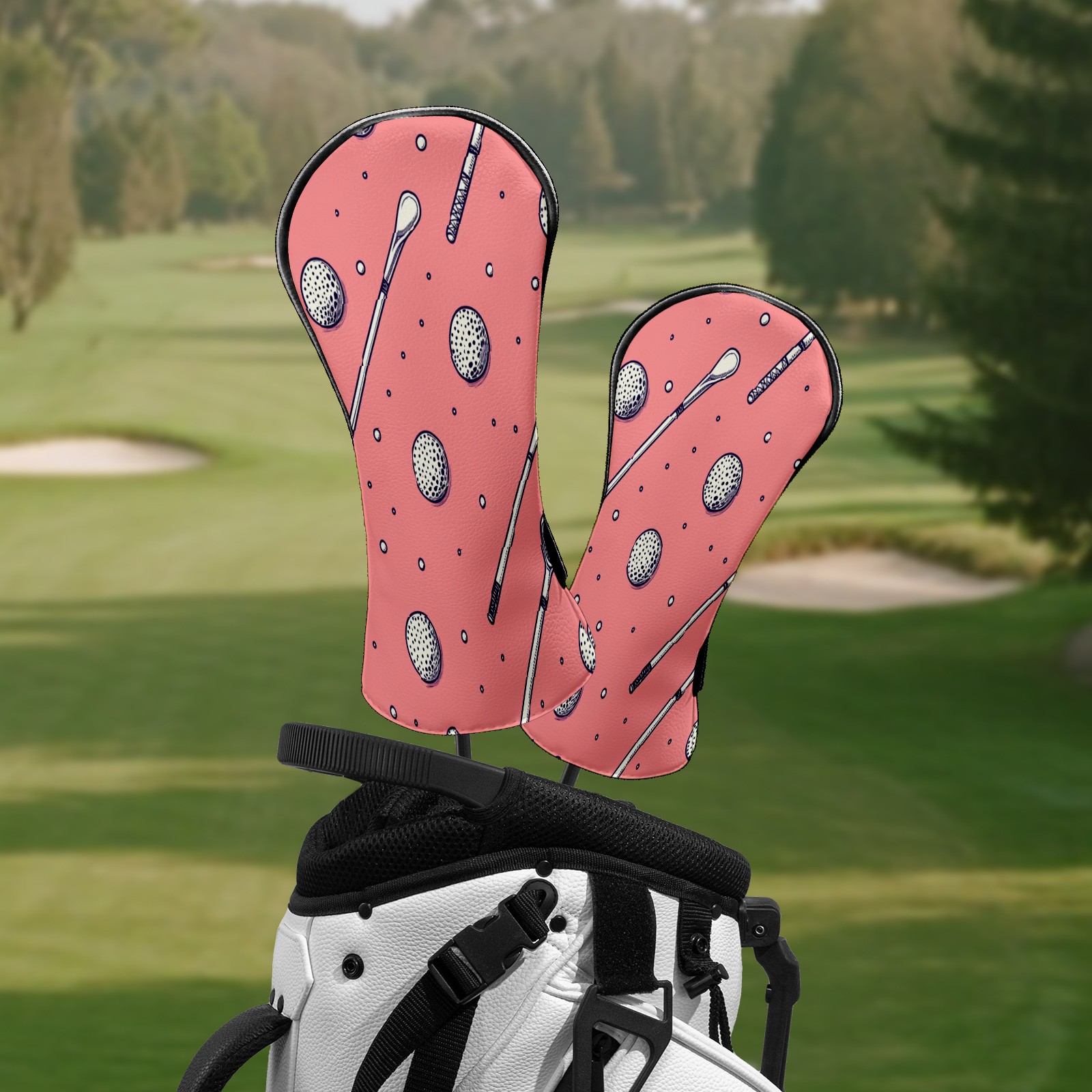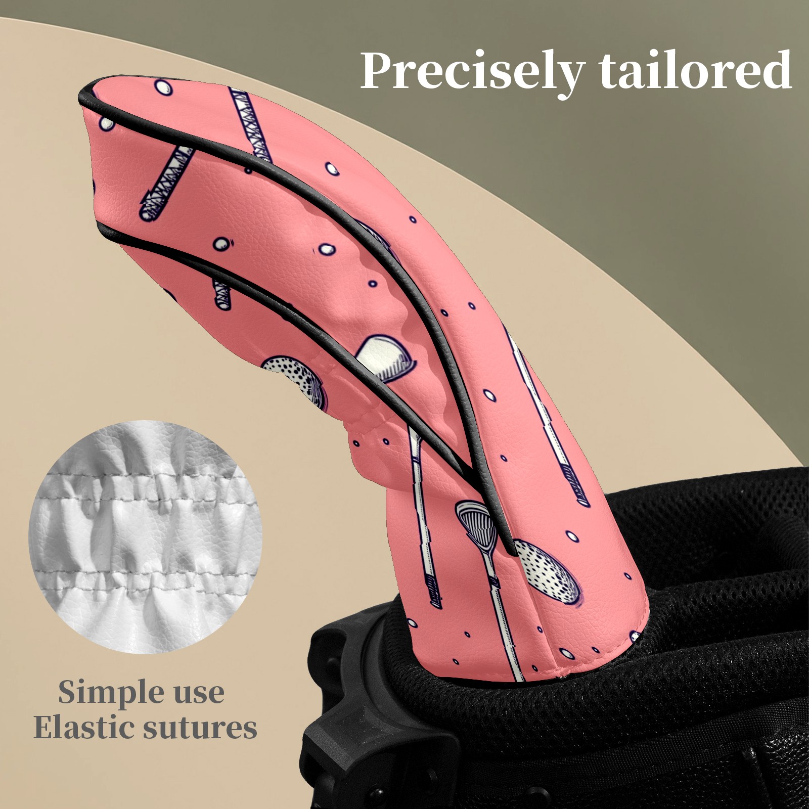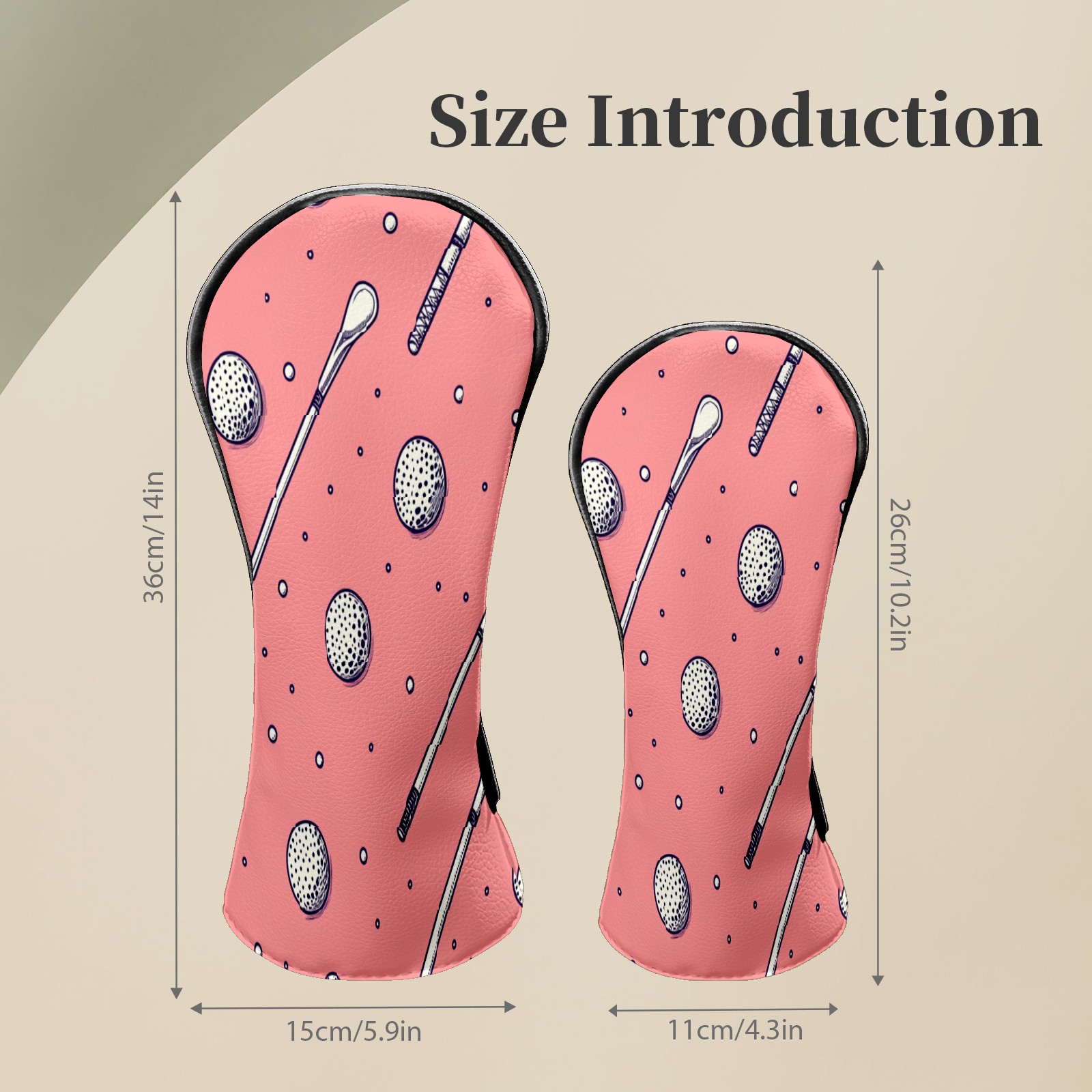 Golf Club Headcovers Waterproof PU Leather, Pink Golf Clubs Pattern Design for Driver Fairway Woods Headcover, Inspired Gifts for Men Women
