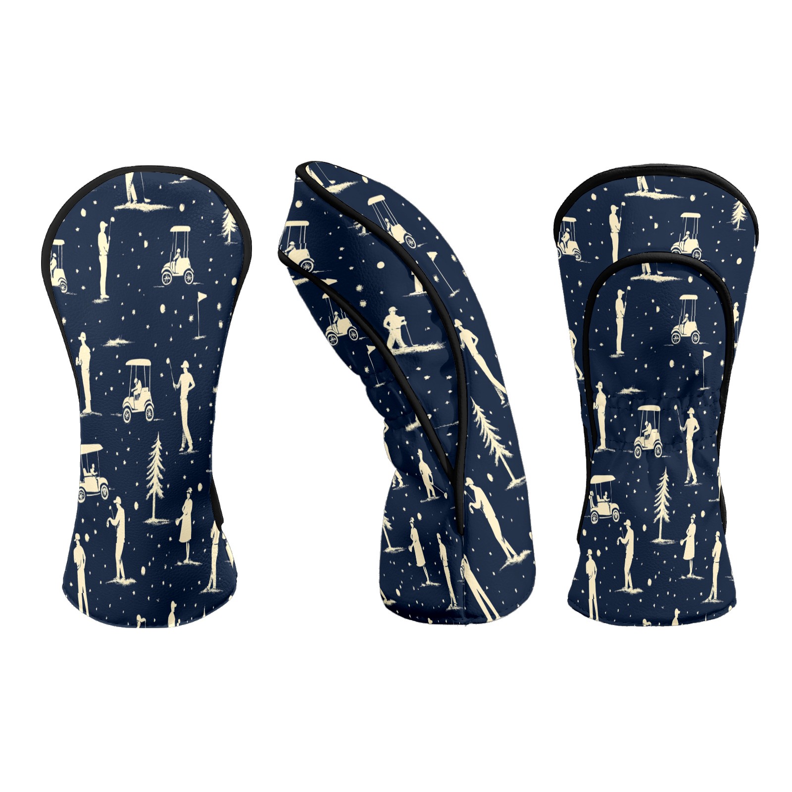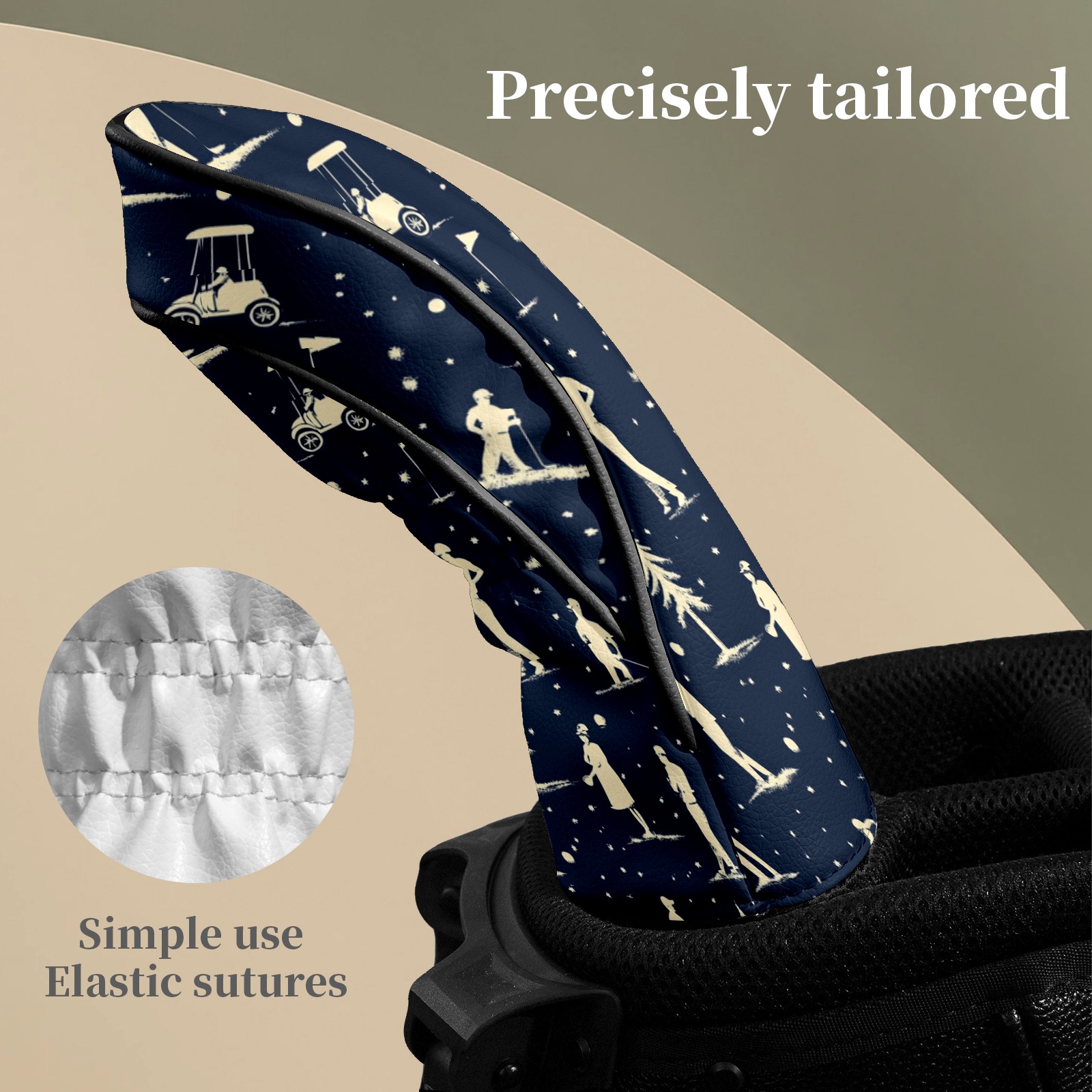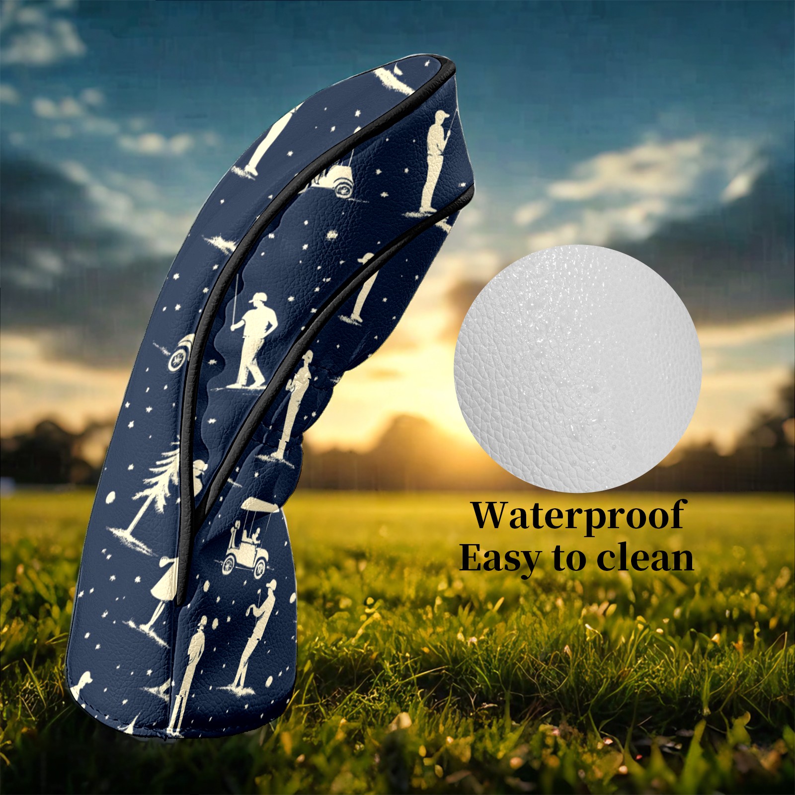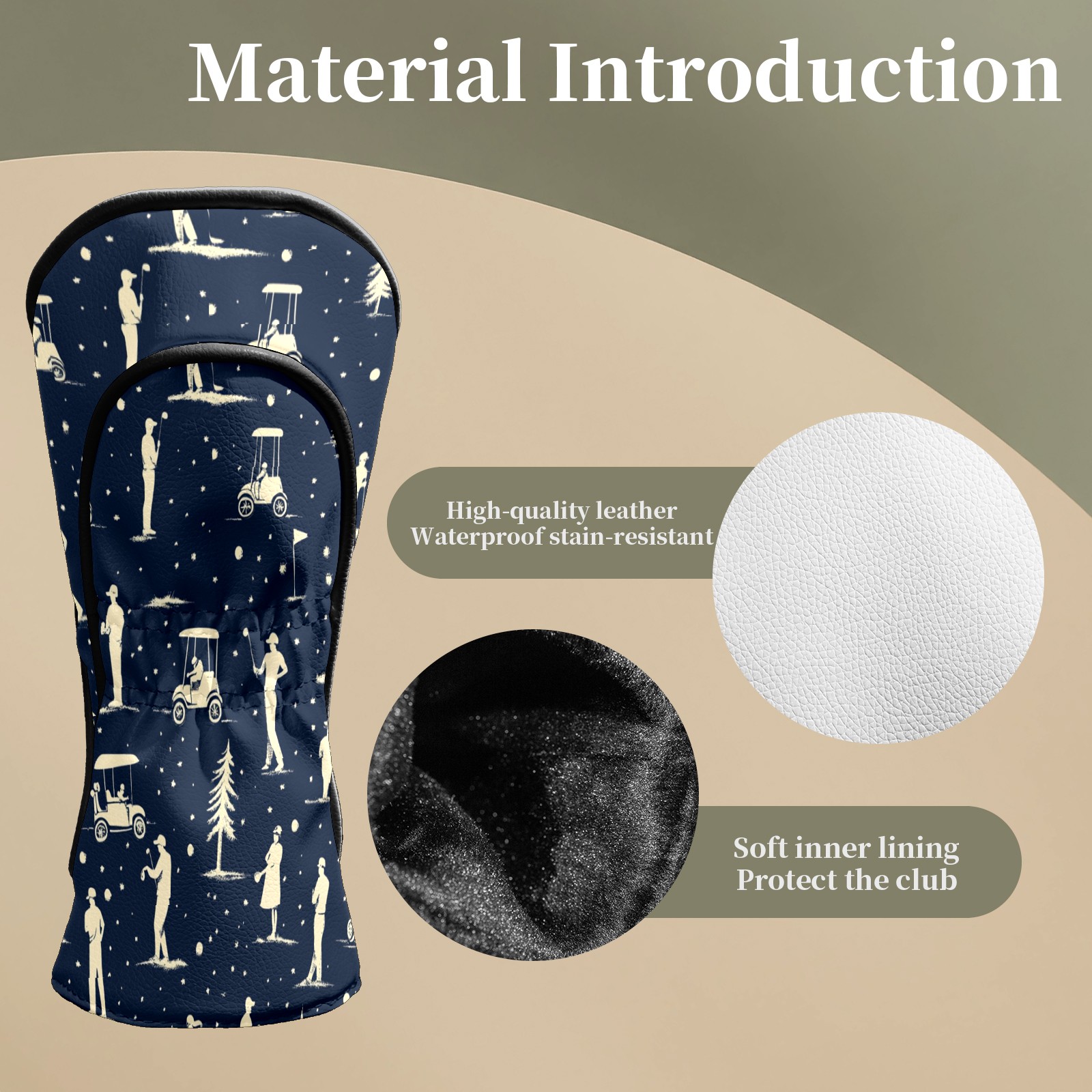Golf Club Headcovers Waterproof PU Leather, Blue Golfers Poses Pattern Design for Driver Fairway Woods Headcover, Inspired Gifts for Men Women