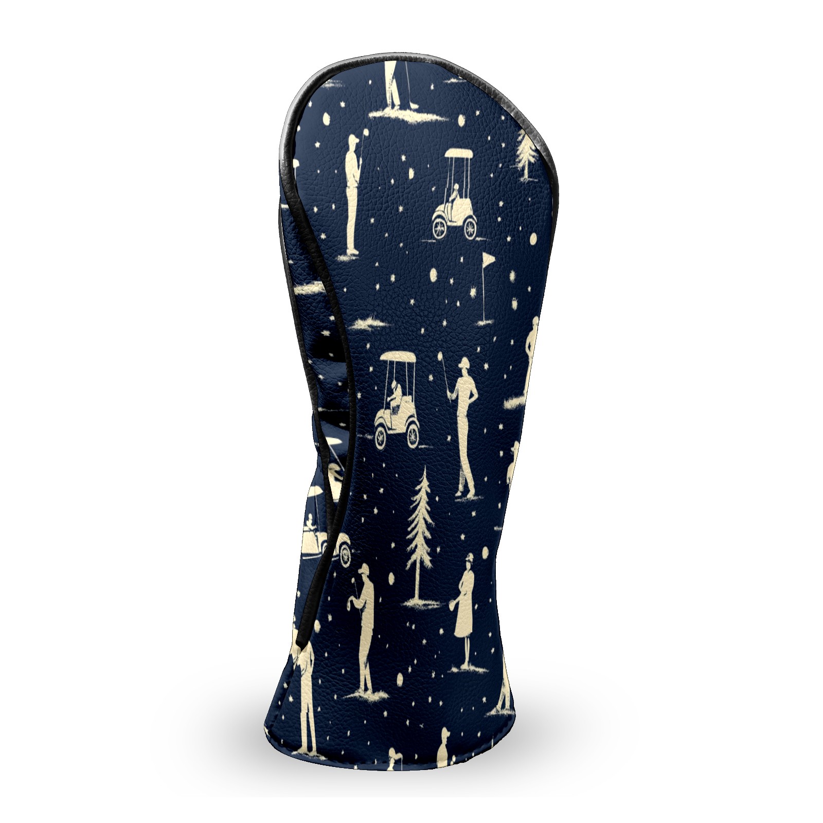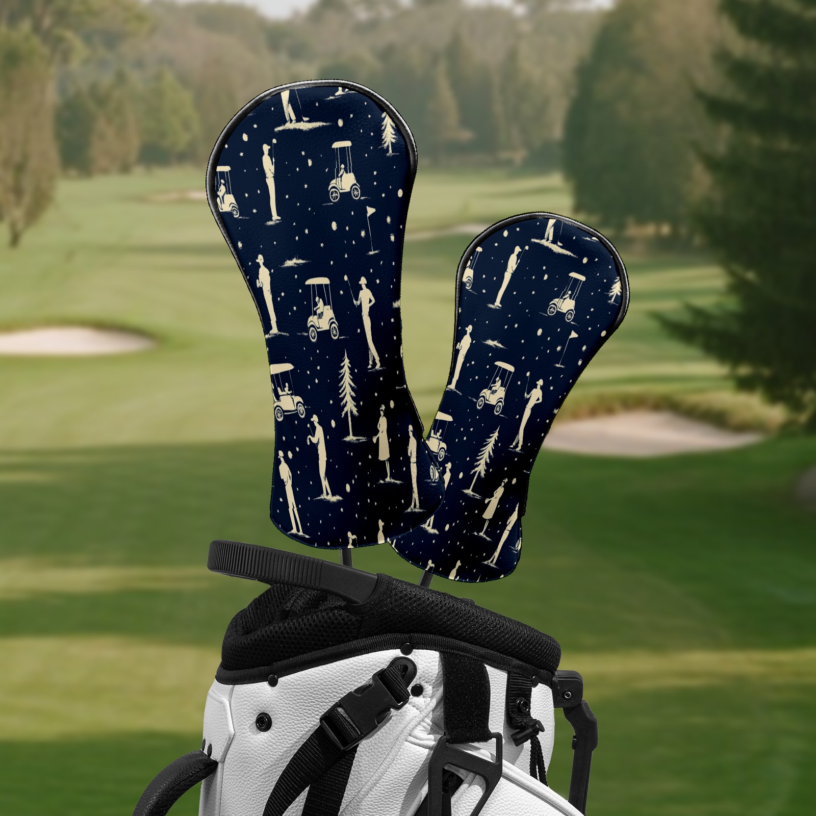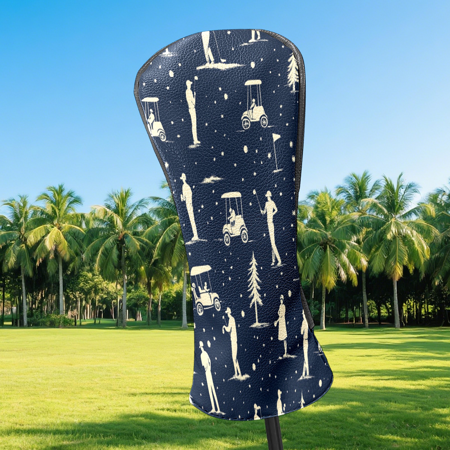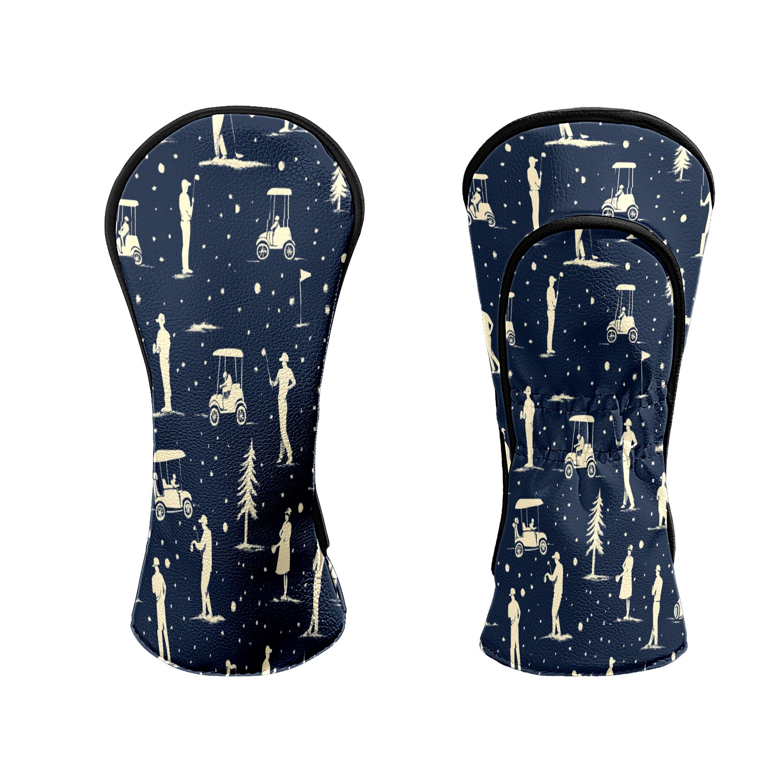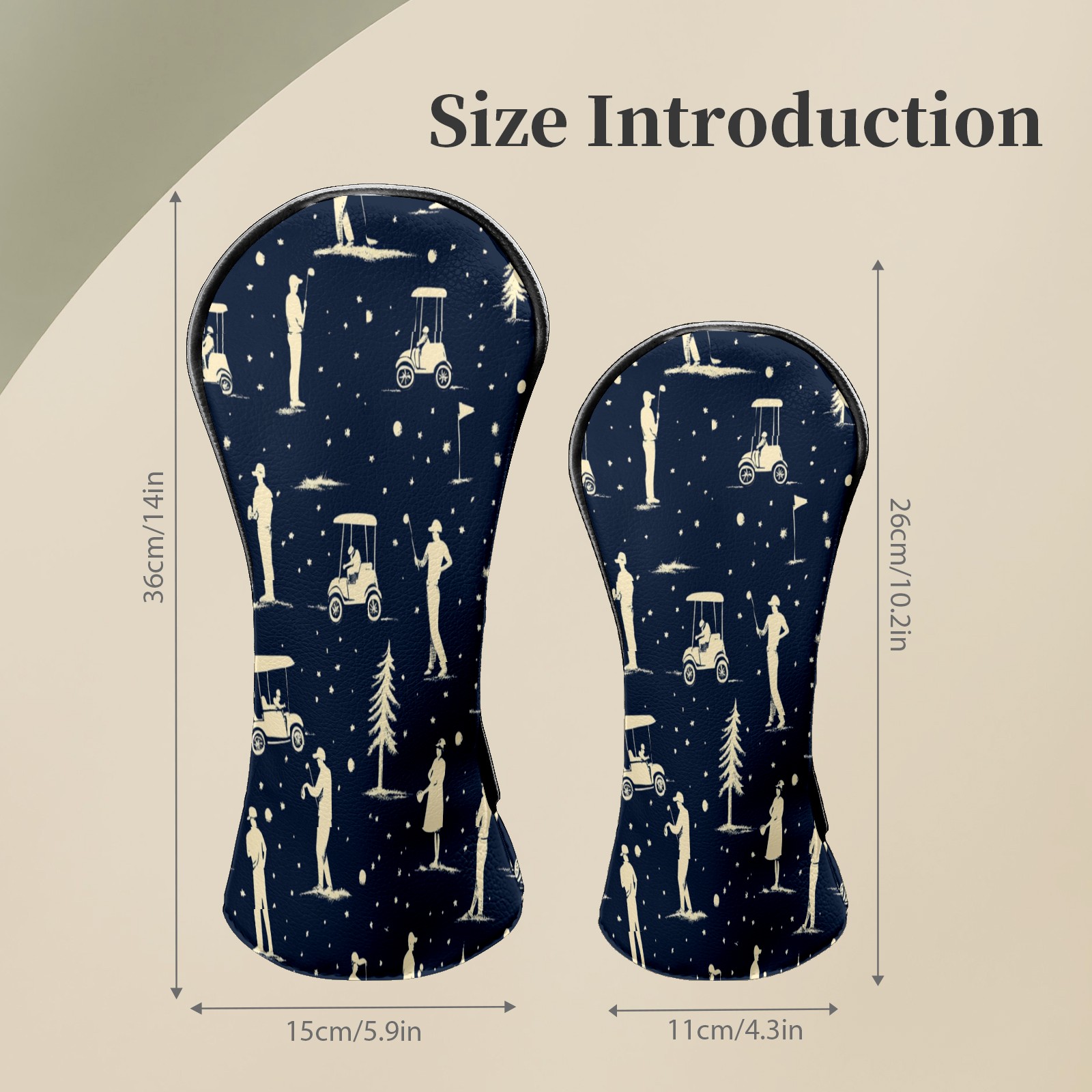Golf Club Headcovers Waterproof PU Leather, Blue Golfers Poses Pattern Design for Driver Fairway Woods Headcover, Inspired Gifts for Men Women