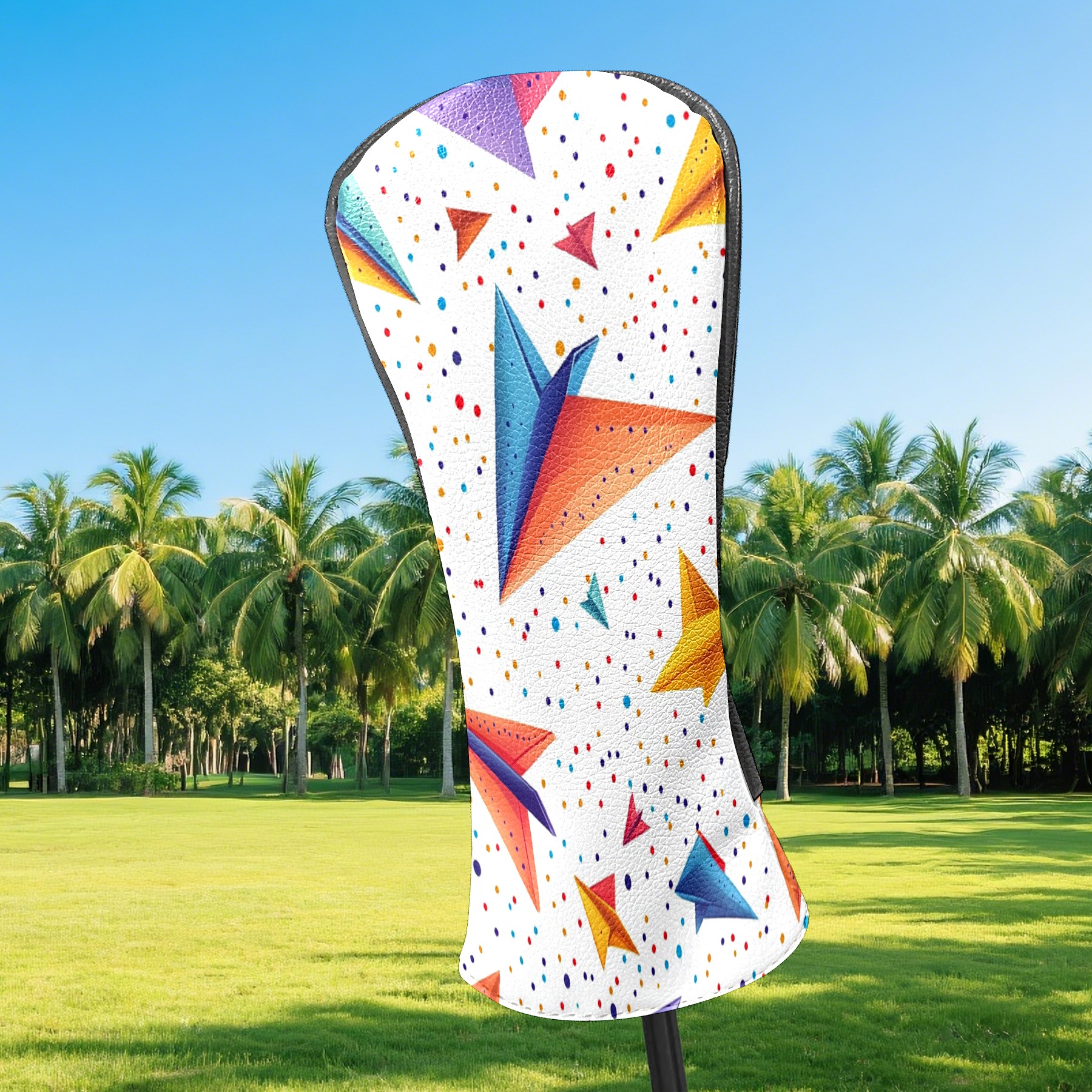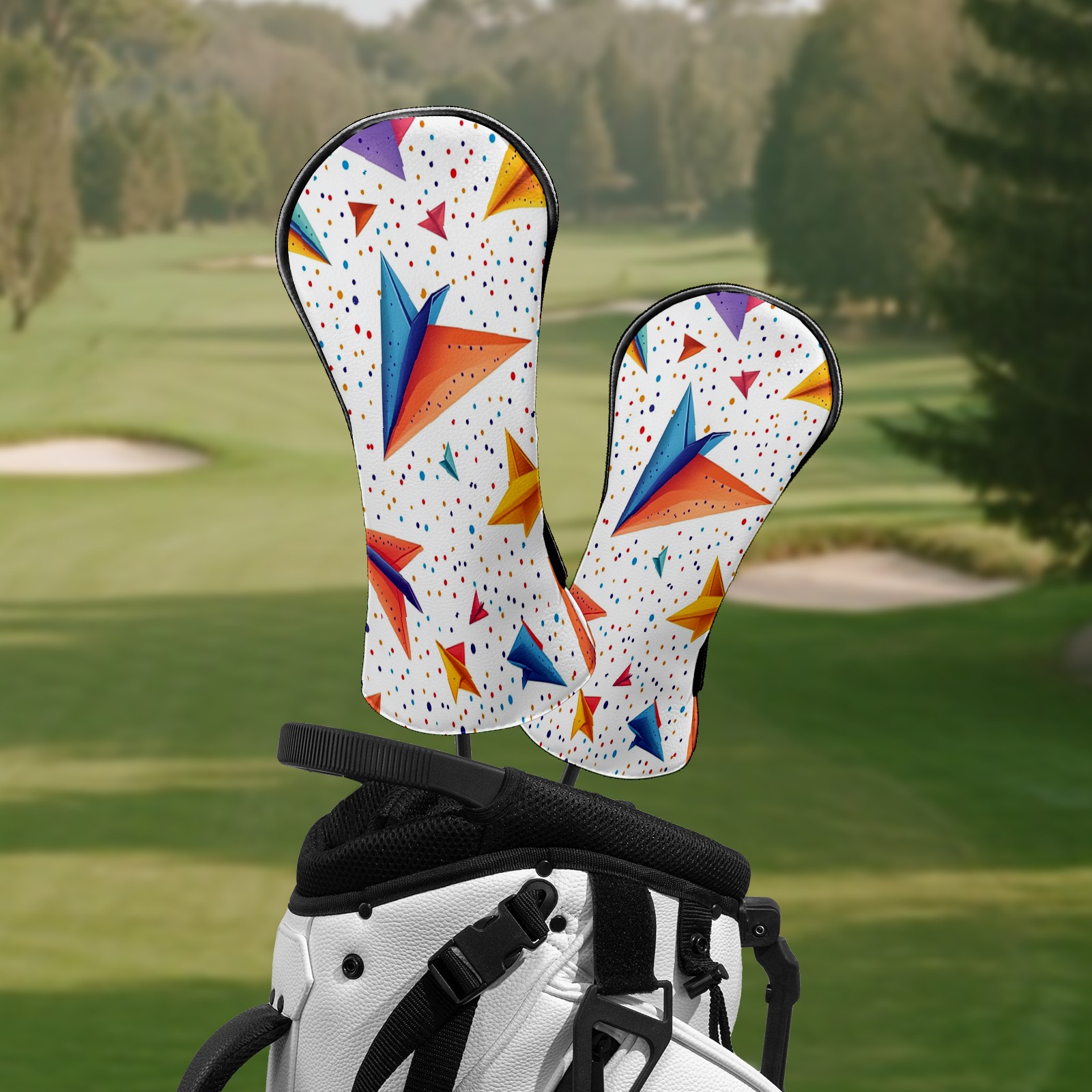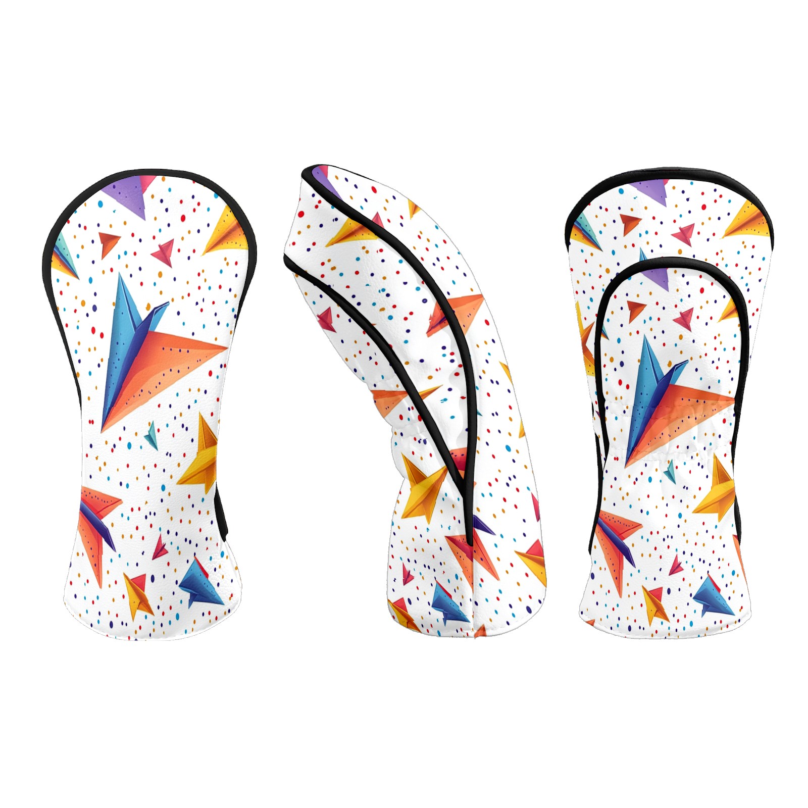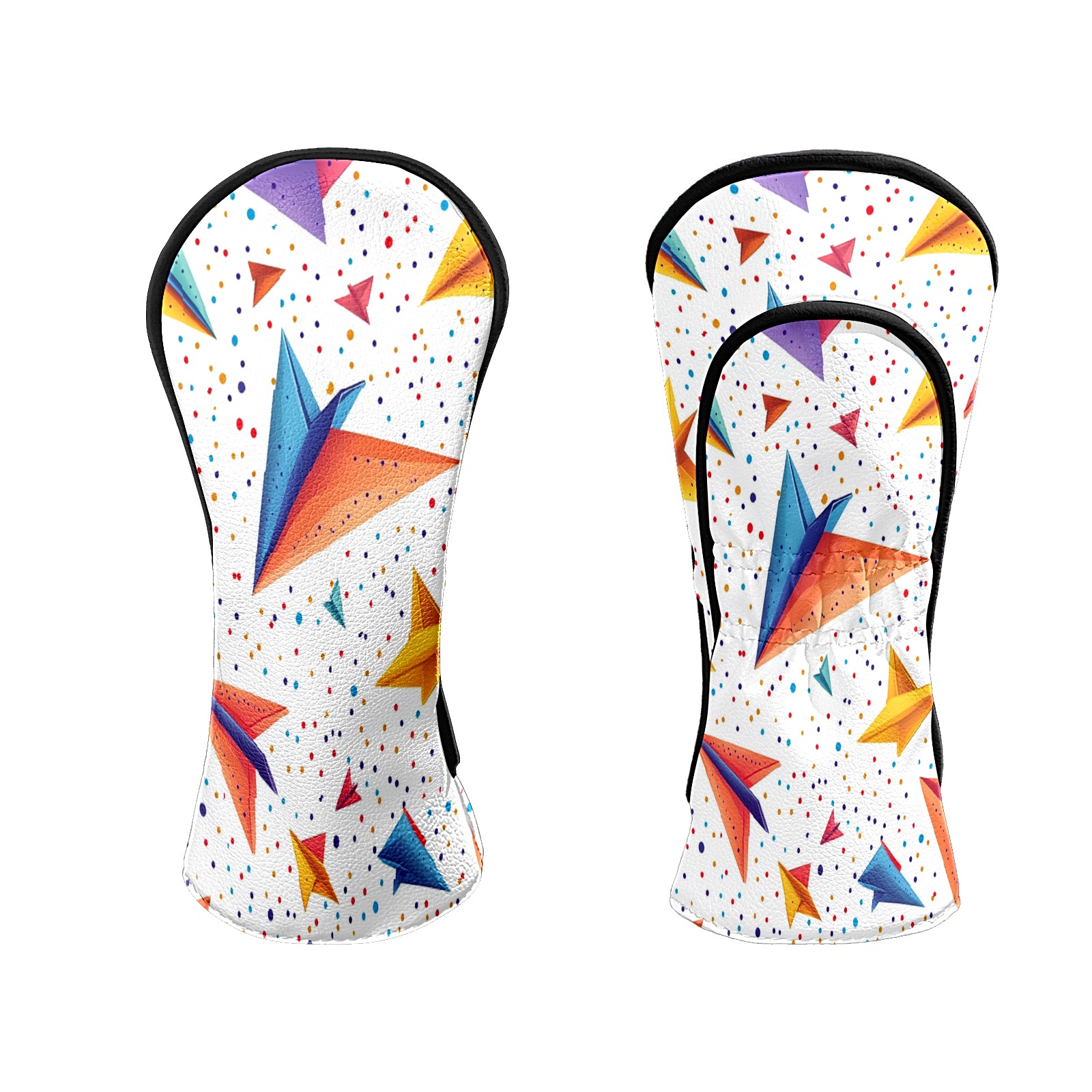 Golf Club Headcovers Waterproof PU Leather, Colored Paper Airplane Pattern Design for Driver Fairway Woods Headcover, Inspired Gifts for Men Women