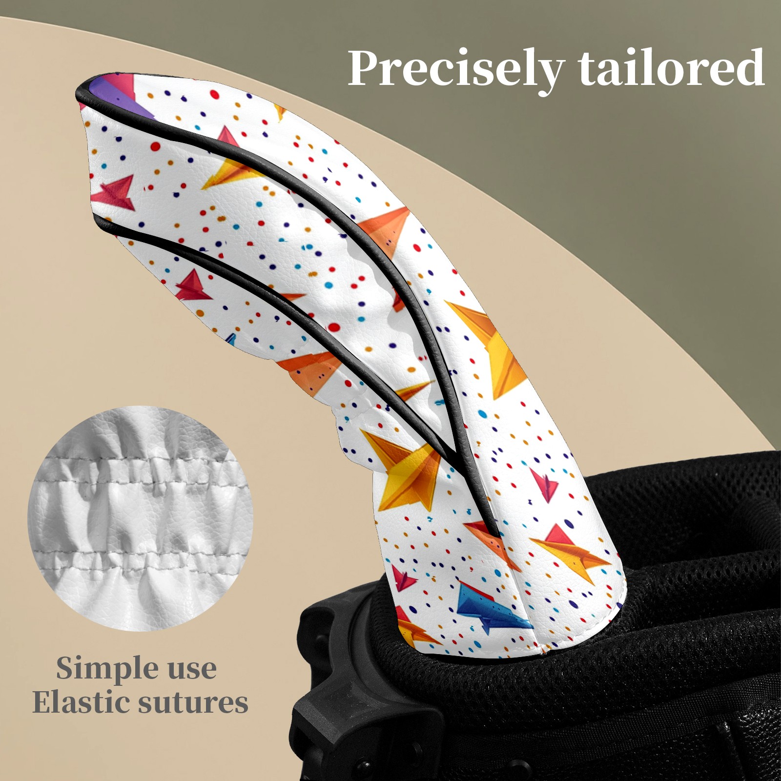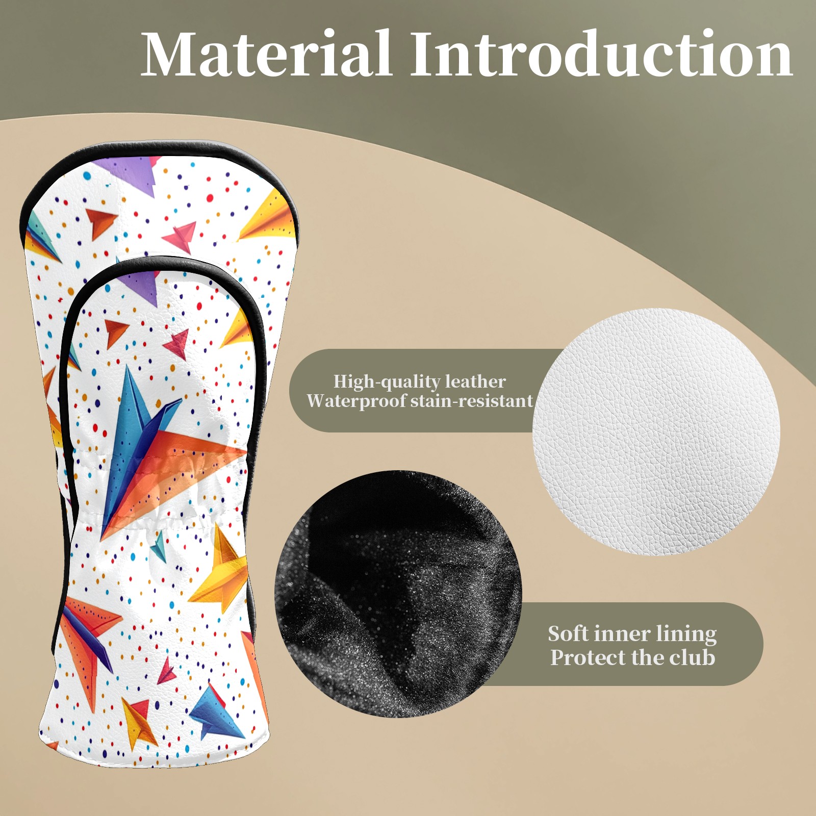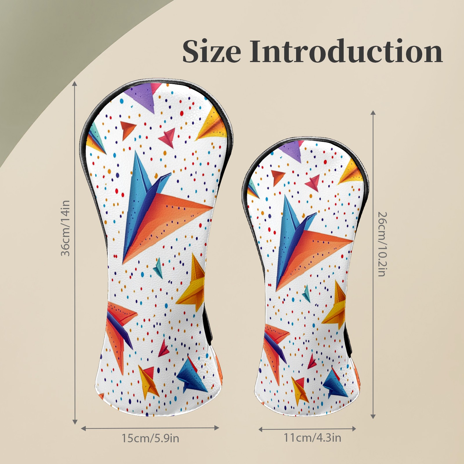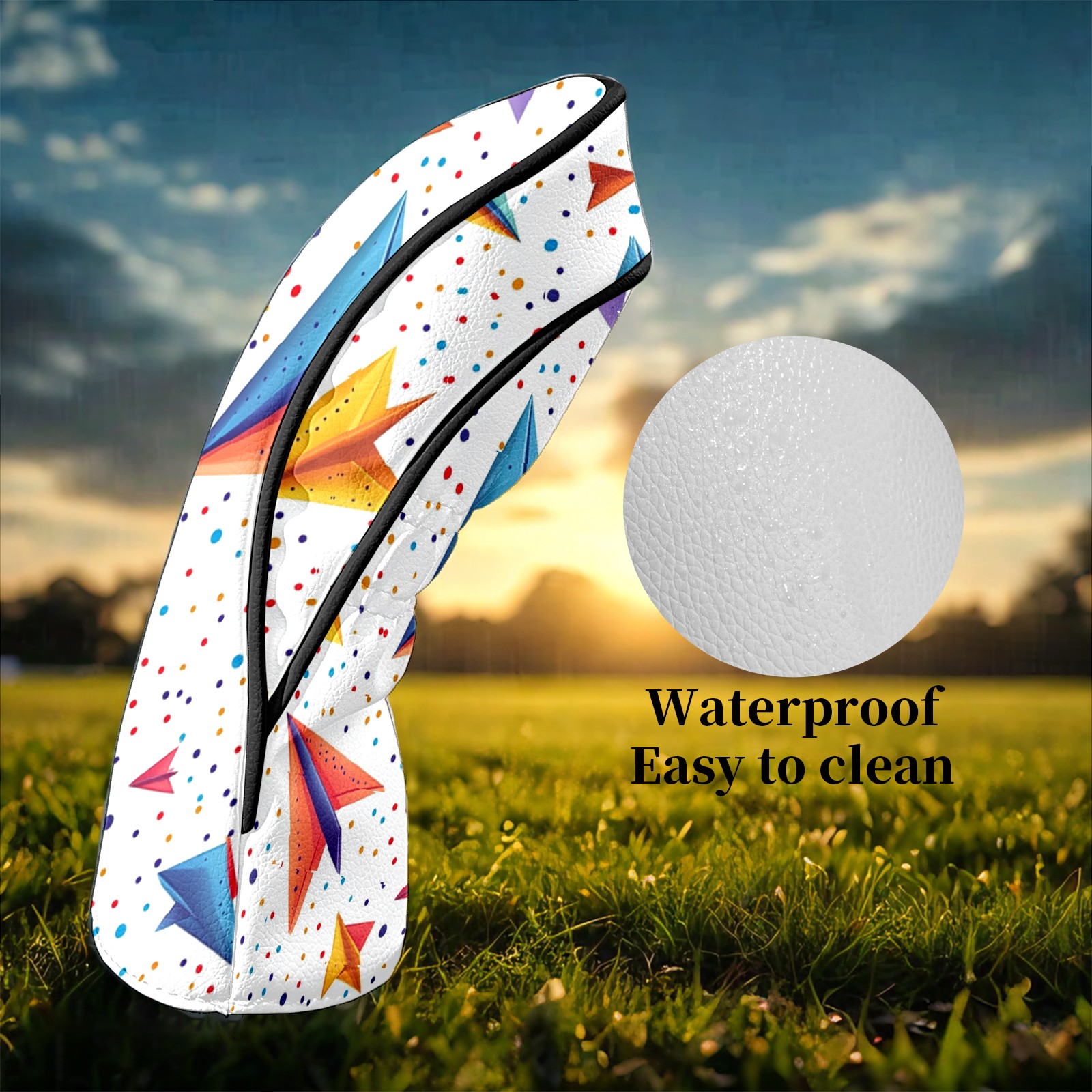Golf Club Headcovers Waterproof PU Leather, Colored Paper Airplane Pattern Design for Driver Fairway Woods Headcover, Inspired Gifts for Men Women