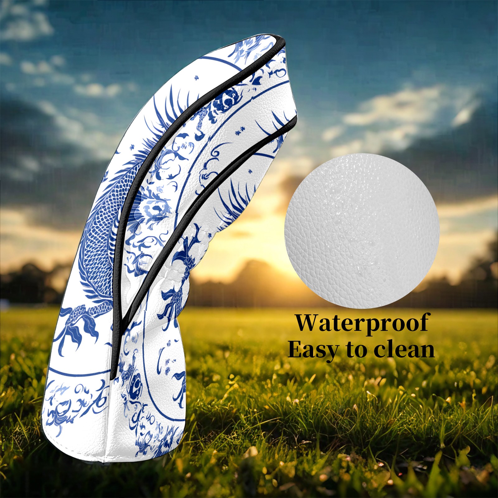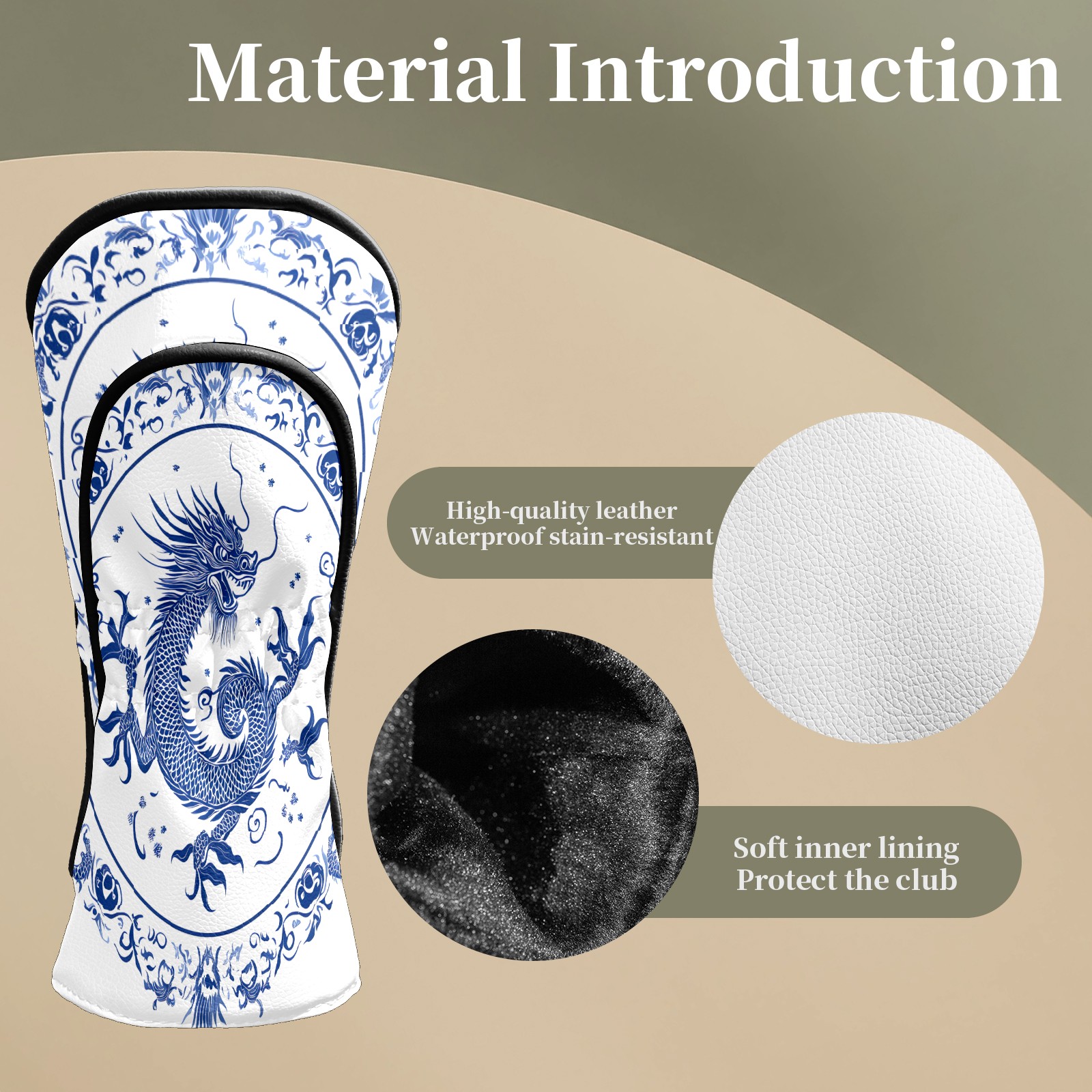 Golf Club Headcovers Waterproof PU Leather, Dragon Design for Driver Fairway Woods Headcover, Inspired Gifts for Men Women