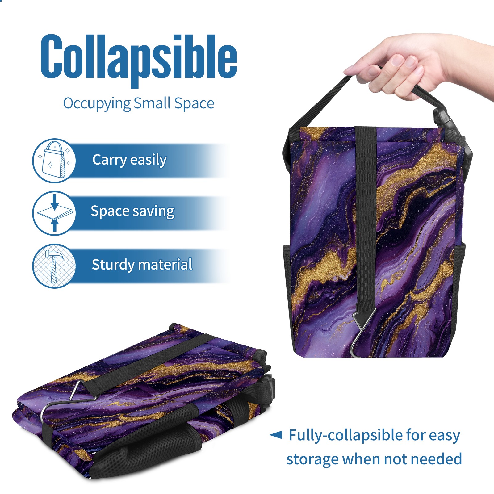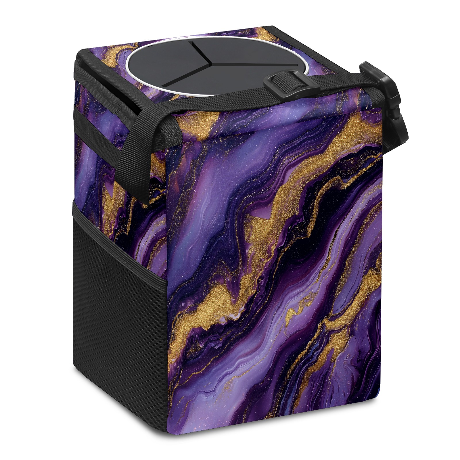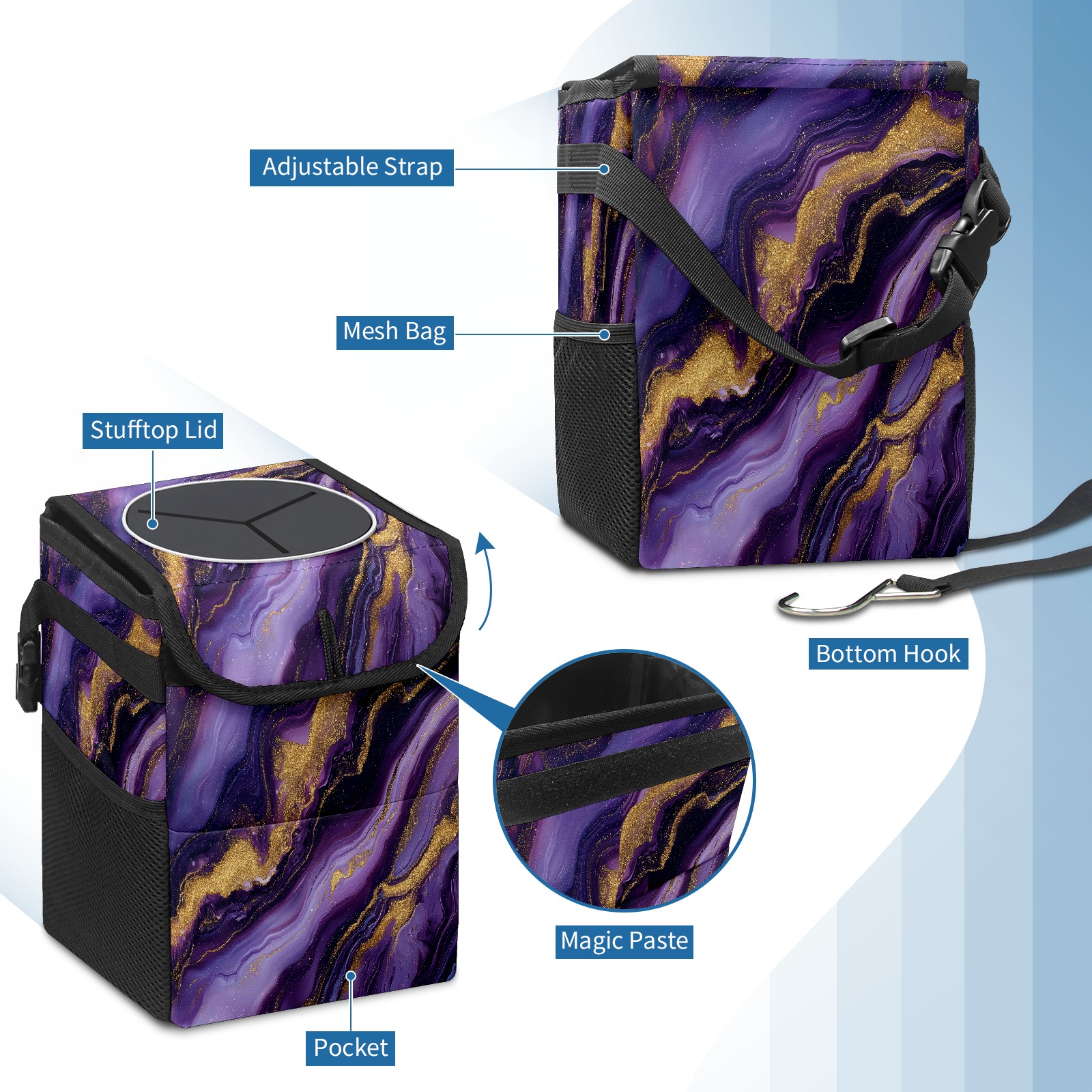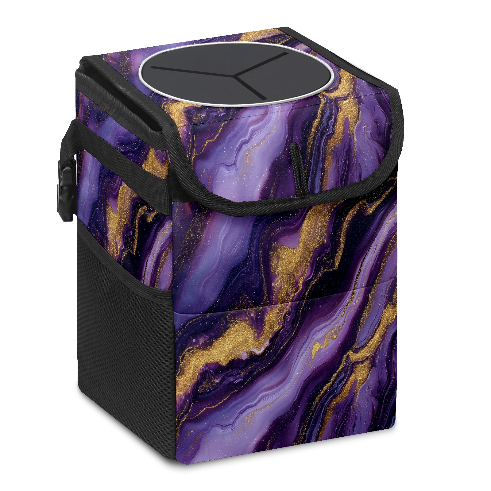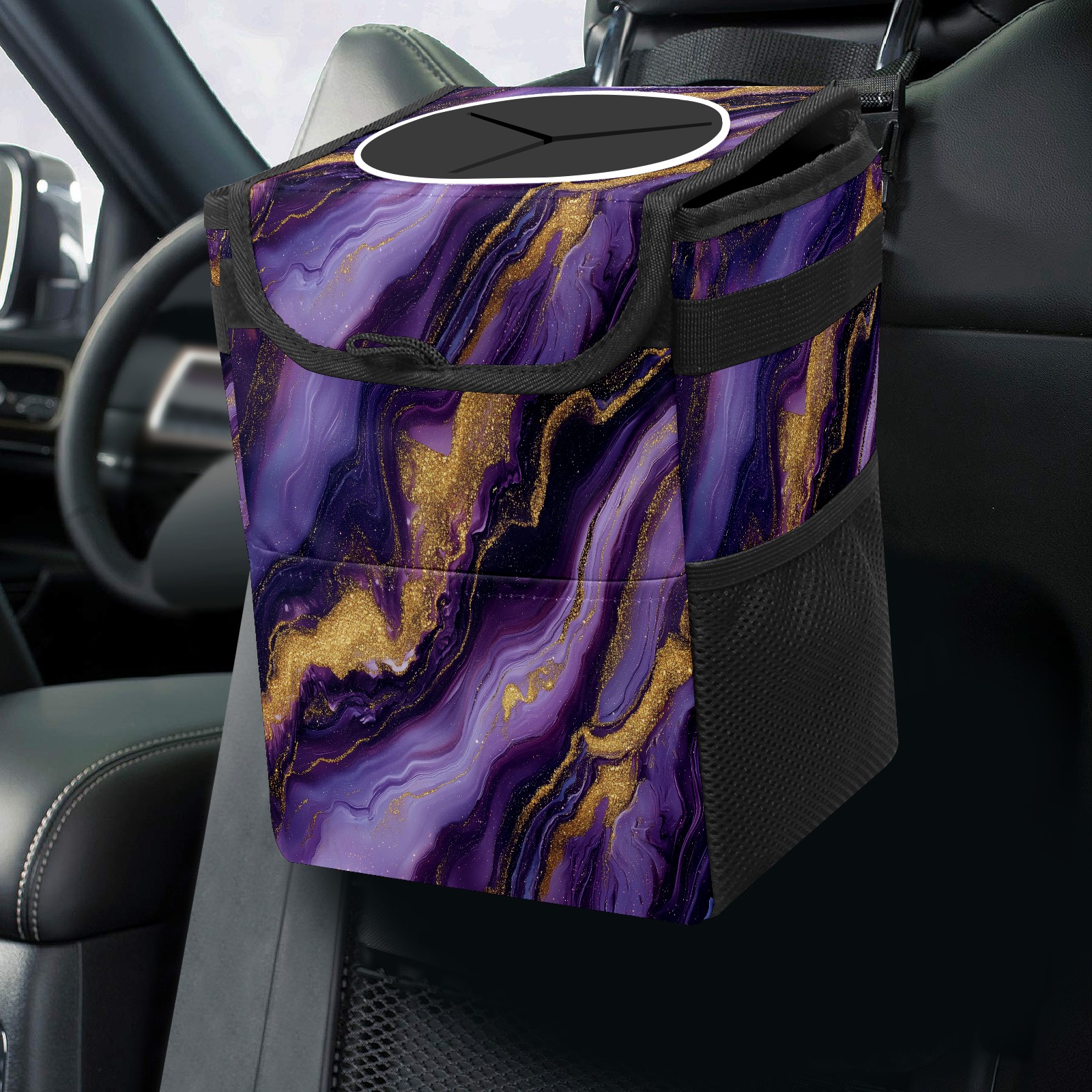 MSINMKOK Car Trash Bin with Lid Auto Garbage Bag Hanging for Back Seat - Leakproof Trash Can for Cars SUVs Trucks Vehicle Car Accessories (Purple Marble)