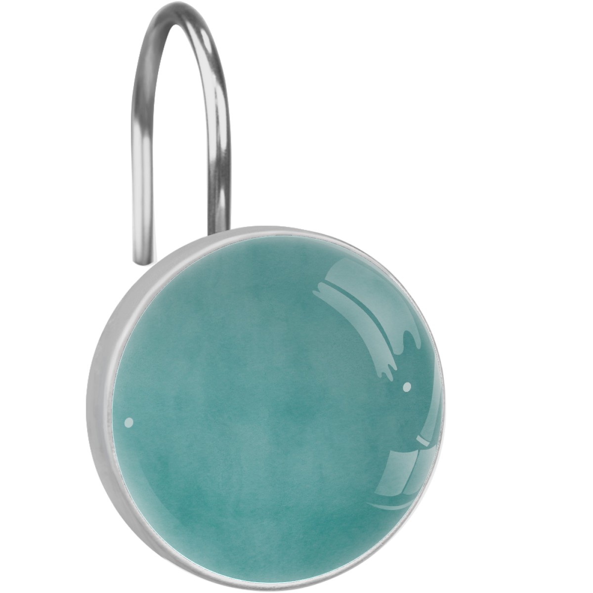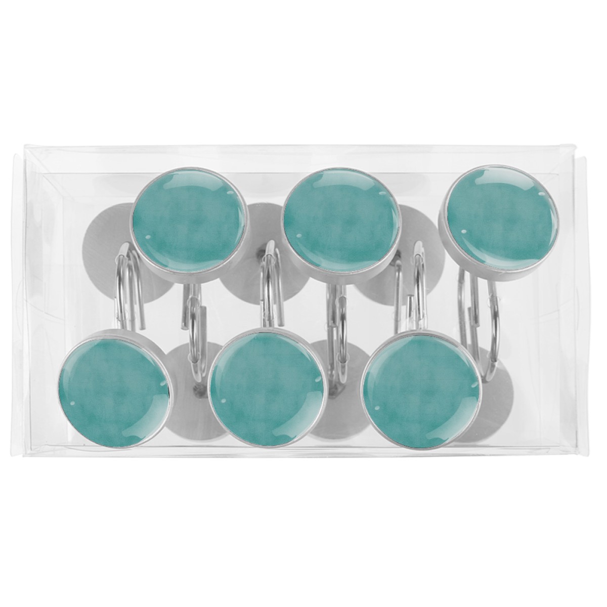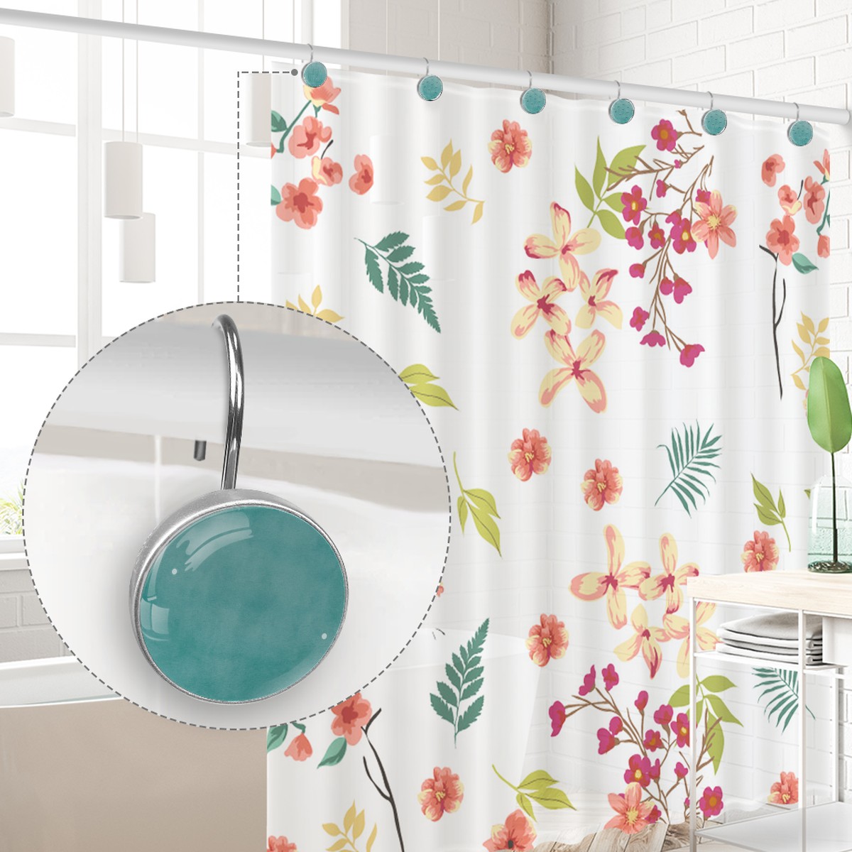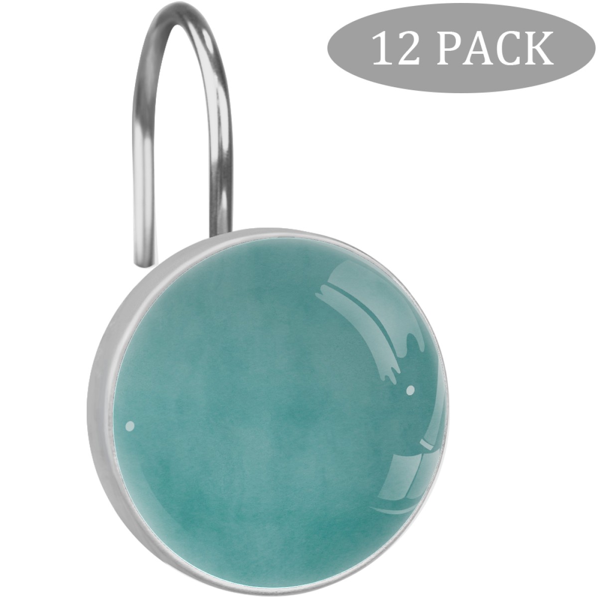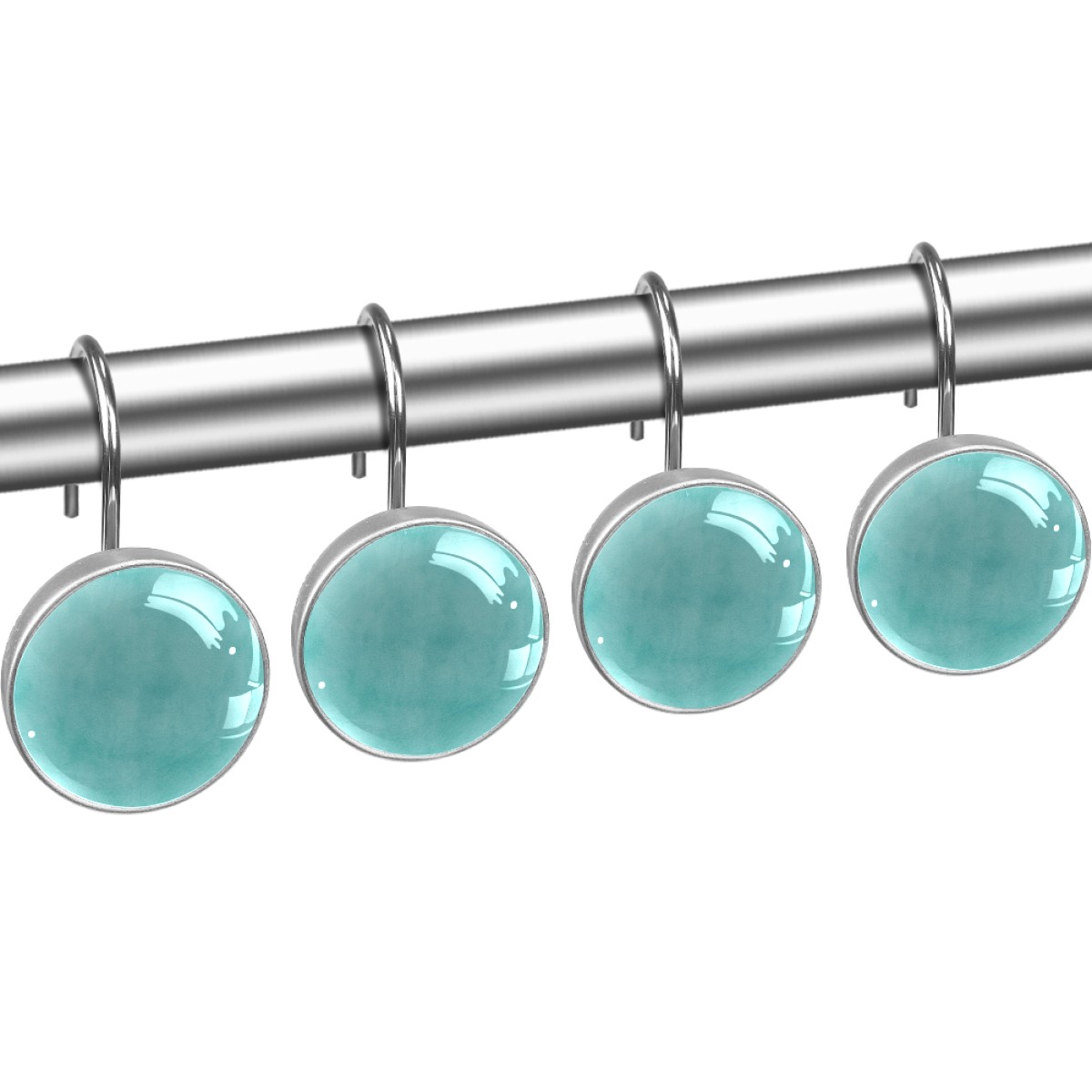 12 PCS Shower Curtain Hooks Decorative Retro Mint Green Crystal Glass Shower Rings for Bathroom Curtain Stainless Steel Resin Rustproof Shower Hooks