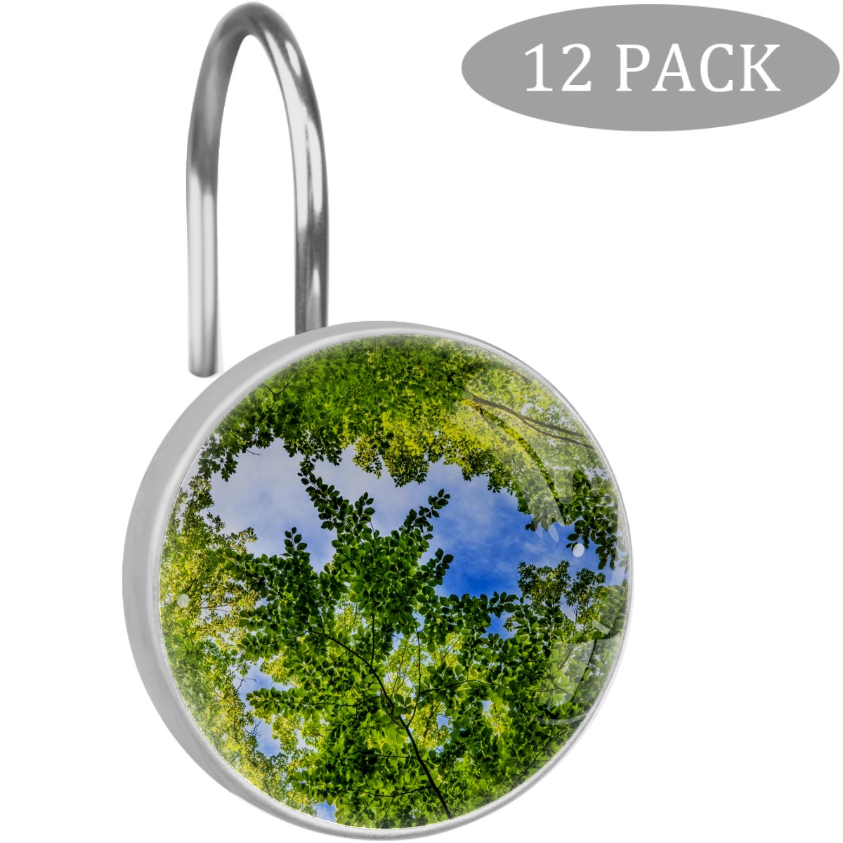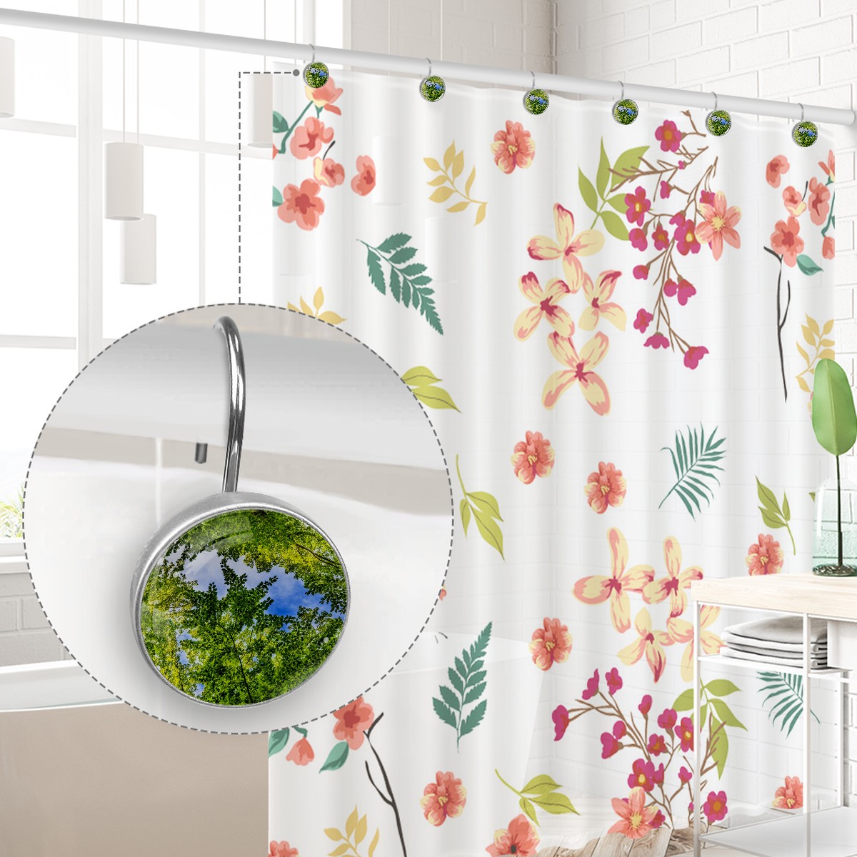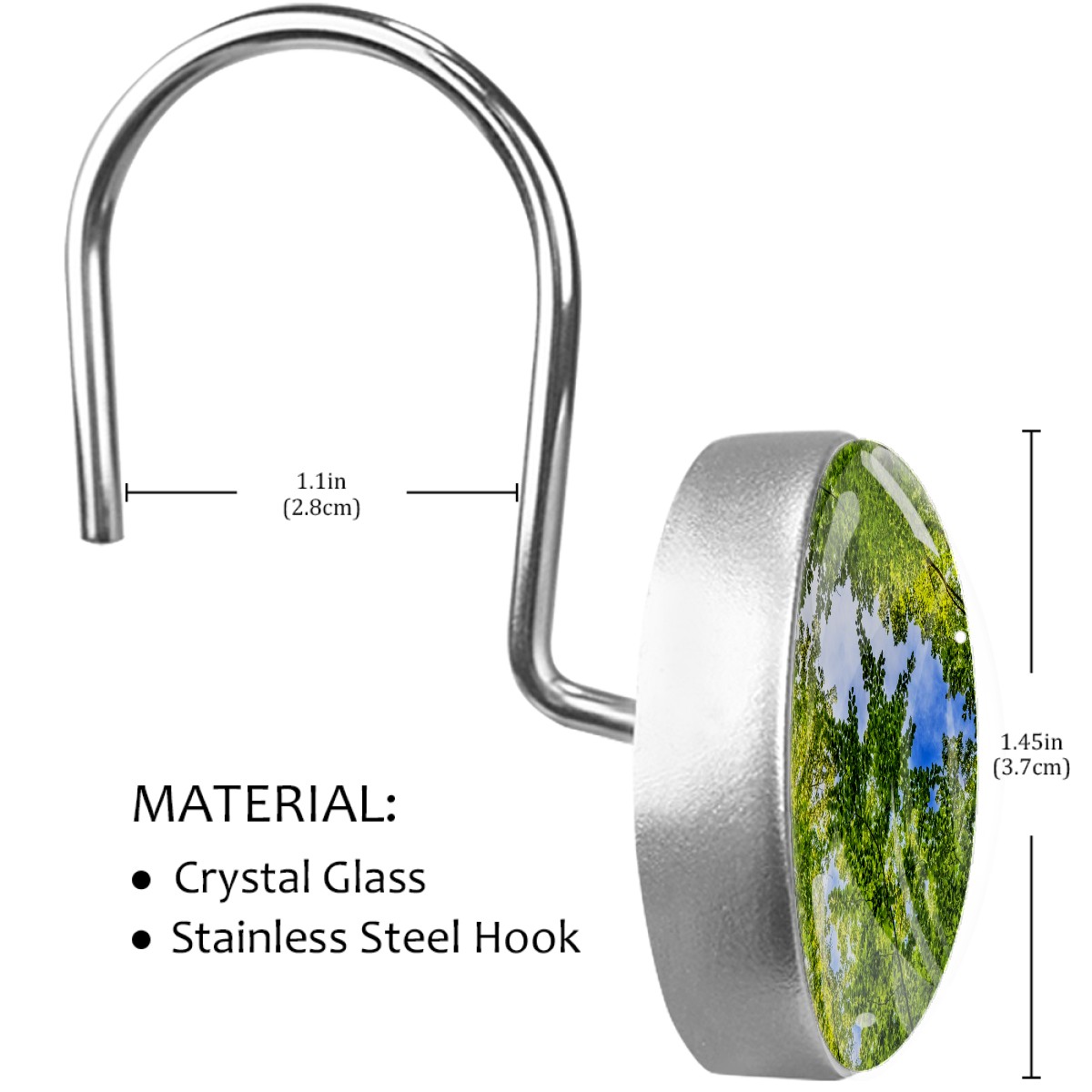 12 PCS Shower Curtain Hooks Decorative Summer Canopy Green Leaves Tree Branches Crystal Glass Shower Rings for Bathroom Curtain Stainless Steel Resin Rustproof Shower Hooks