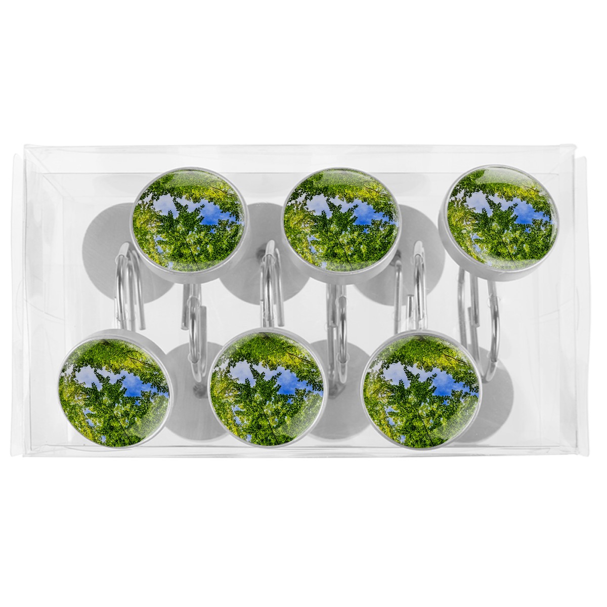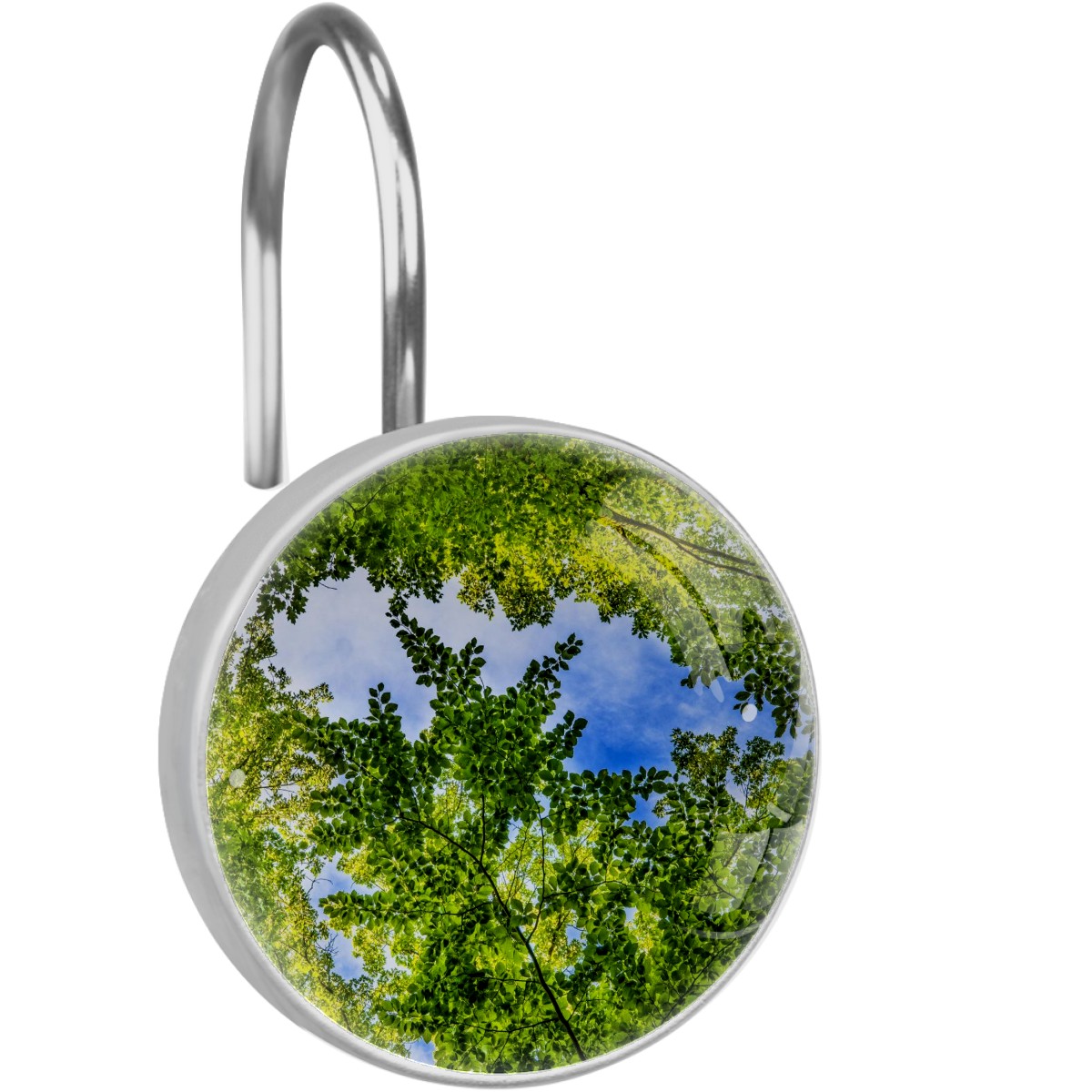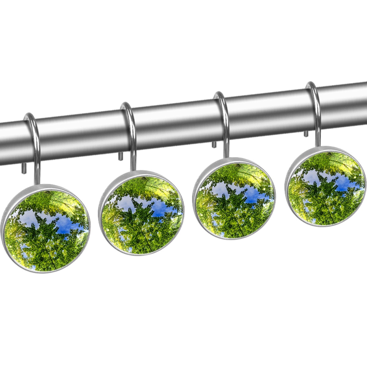 12 PCS Shower Curtain Hooks Decorative Summer Canopy Green Leaves Tree Branches Crystal Glass Shower Rings for Bathroom Curtain Stainless Steel Resin Rustproof Shower Hooks