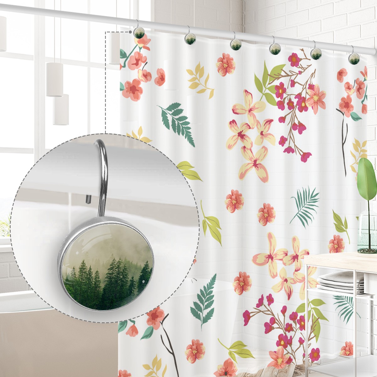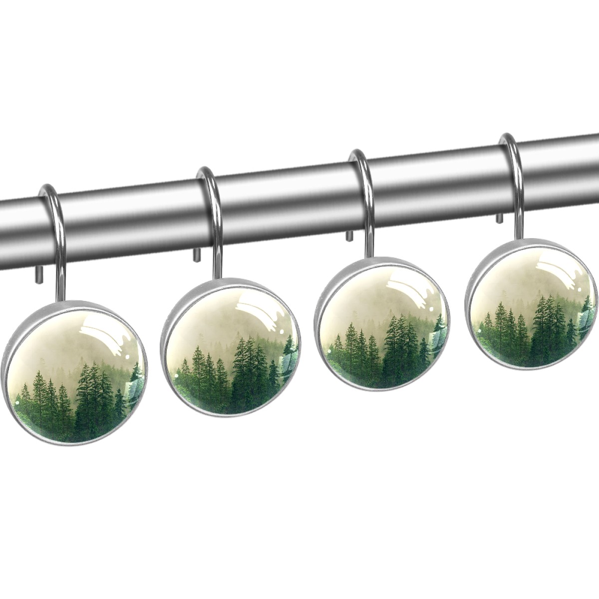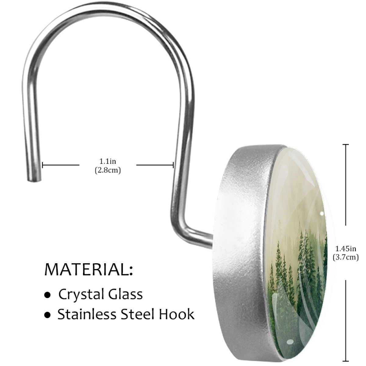 12 PCS Shower Curtain Hooks Decorative Green Forest Foggy Crystal Glass Shower Rings for Bathroom Curtain Stainless Steel Resin Rustproof Shower Hooks