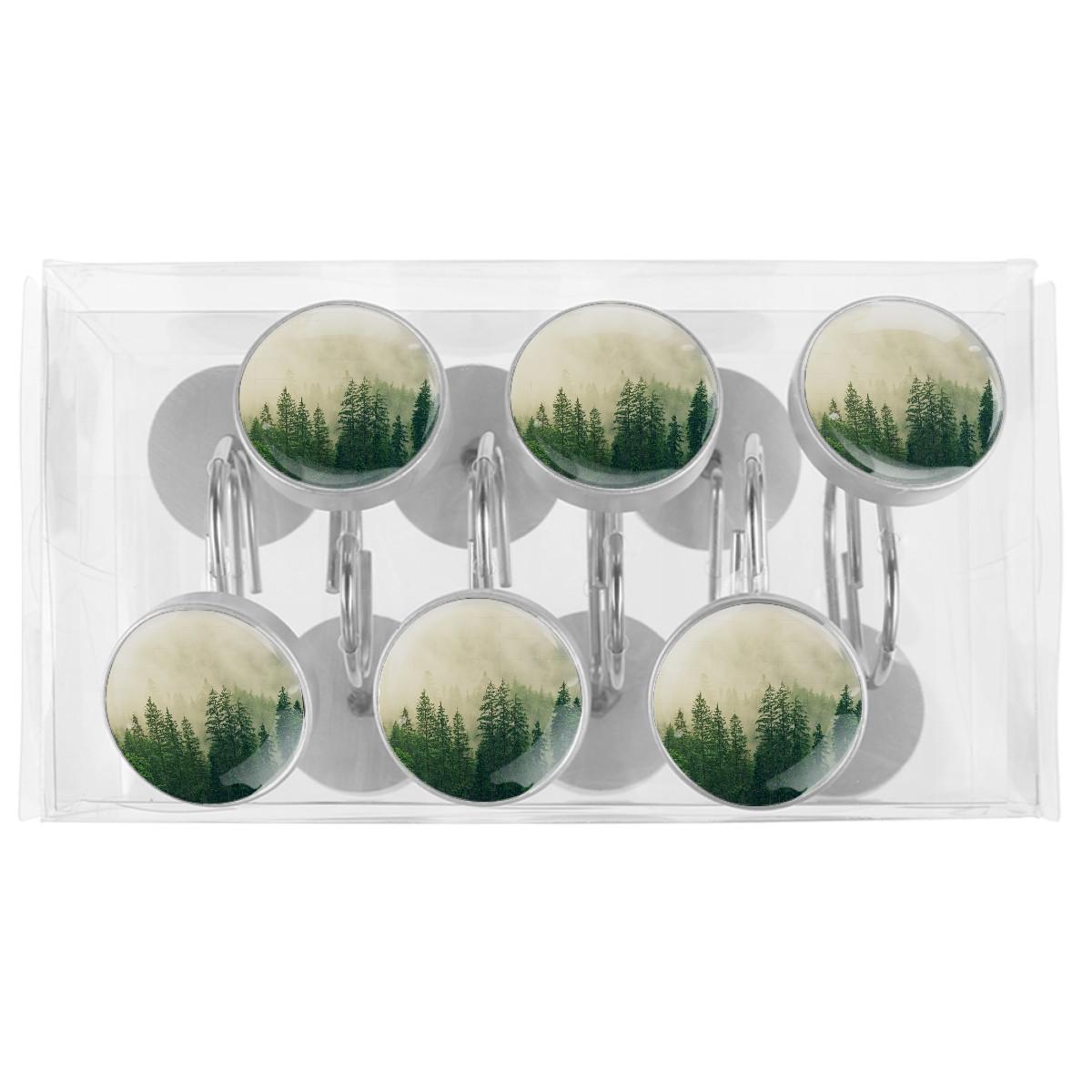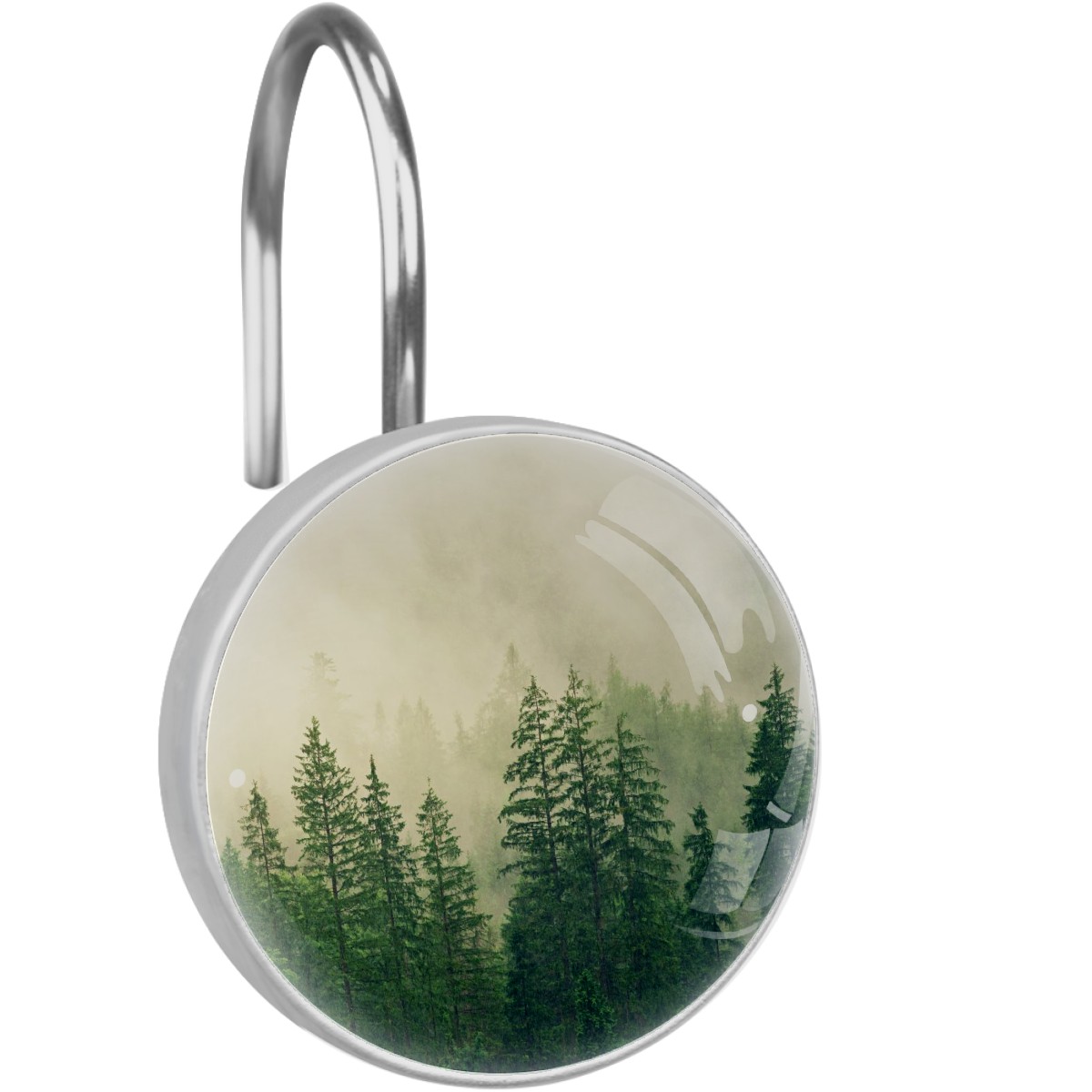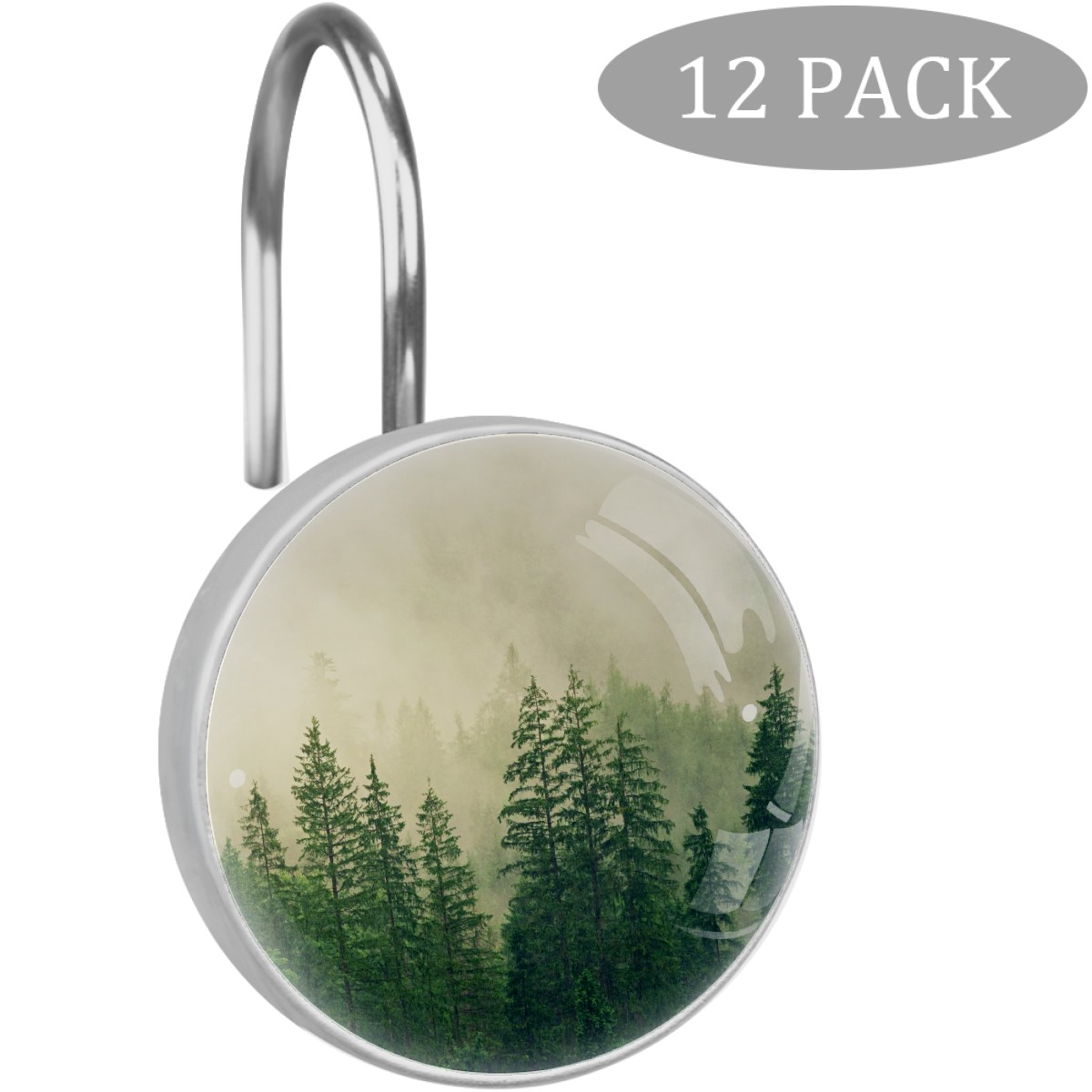 12 PCS Shower Curtain Hooks Decorative Green Forest Foggy Crystal Glass Shower Rings for Bathroom Curtain Stainless Steel Resin Rustproof Shower Hooks