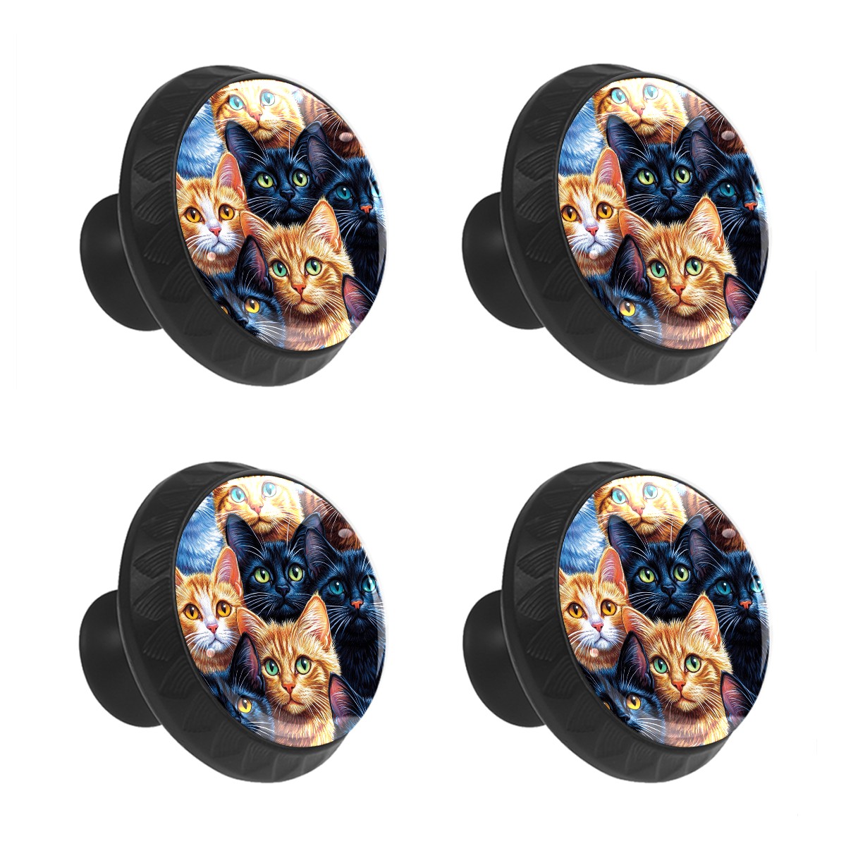 4 Pack Cabinet Knobs Cats Animal Drawer Pulls Crystal Glass Round Knobs Handles for Dressers Drawer Bathroom Kitchen Cupboards Wardrobes Hardware Furniture Knobs